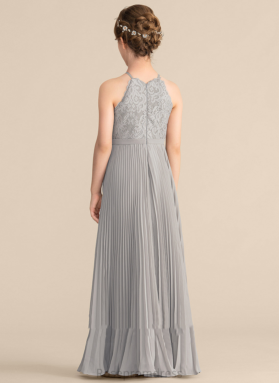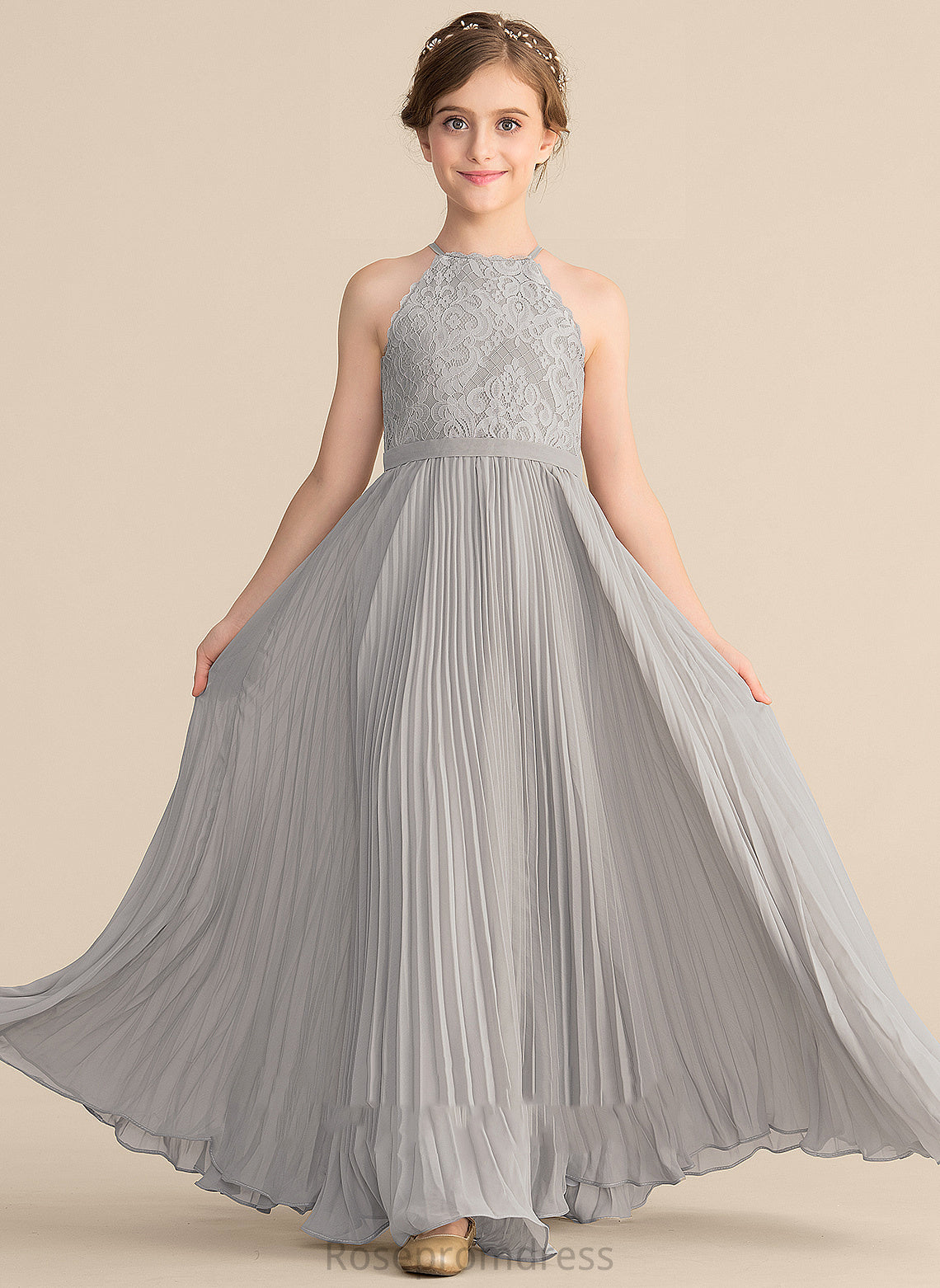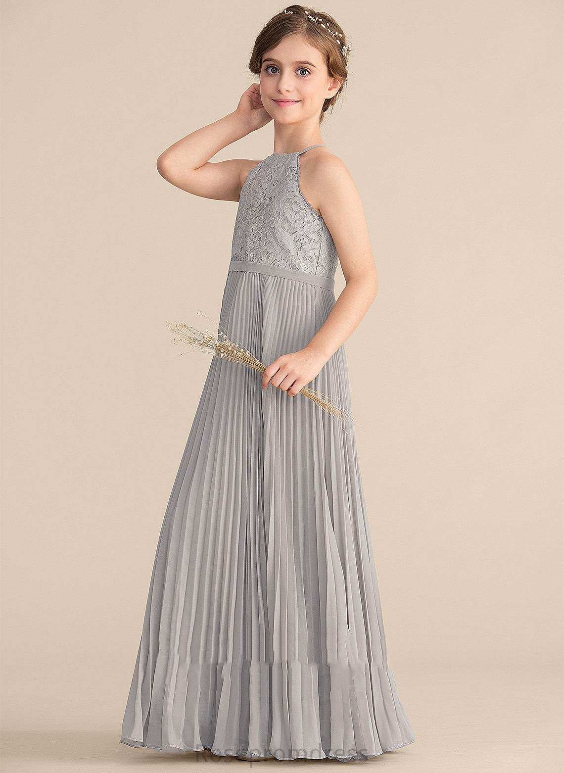 Junior Bridesmaid Dresses Olympia Floor-Length Lace Pleated Chiffon A-Line With Neck Scoop