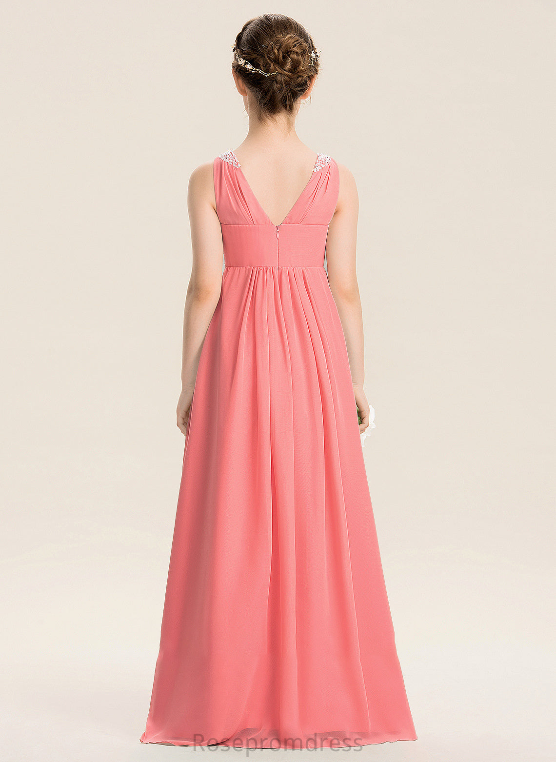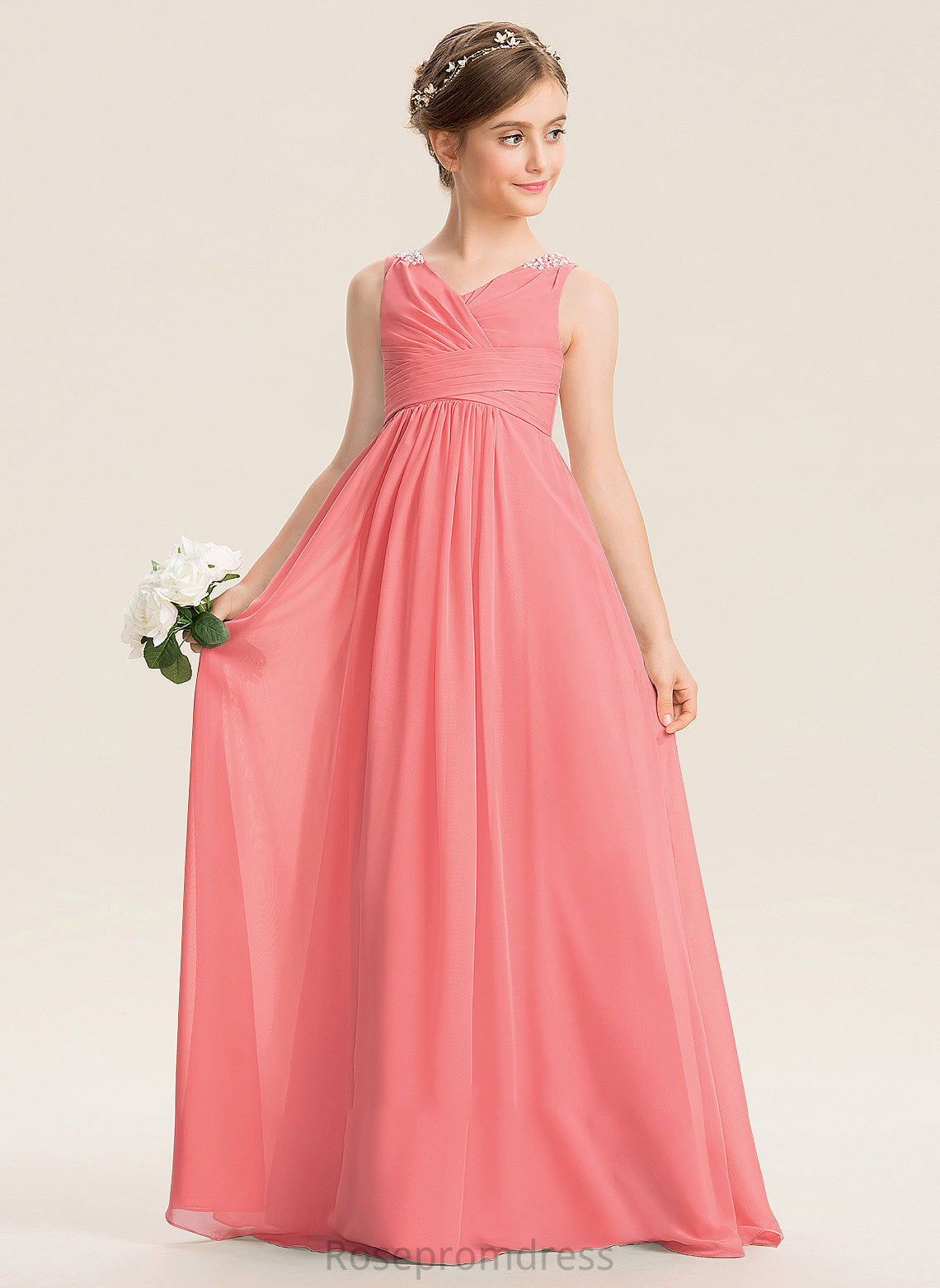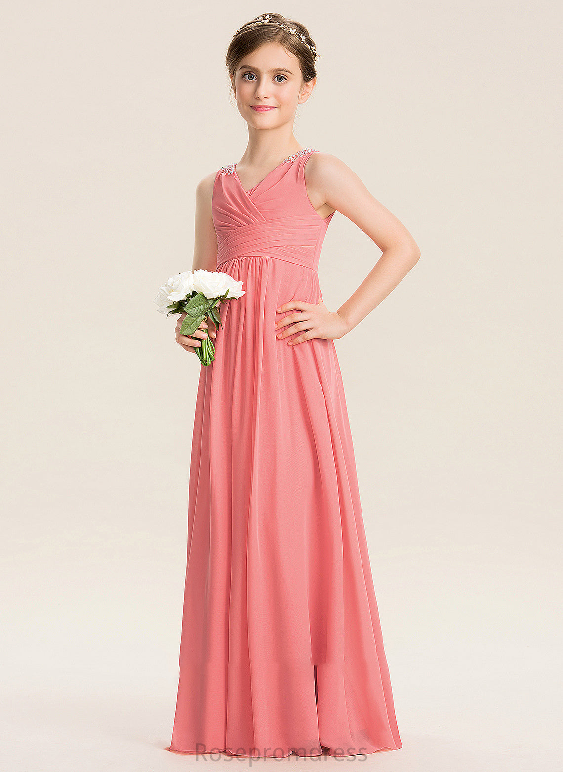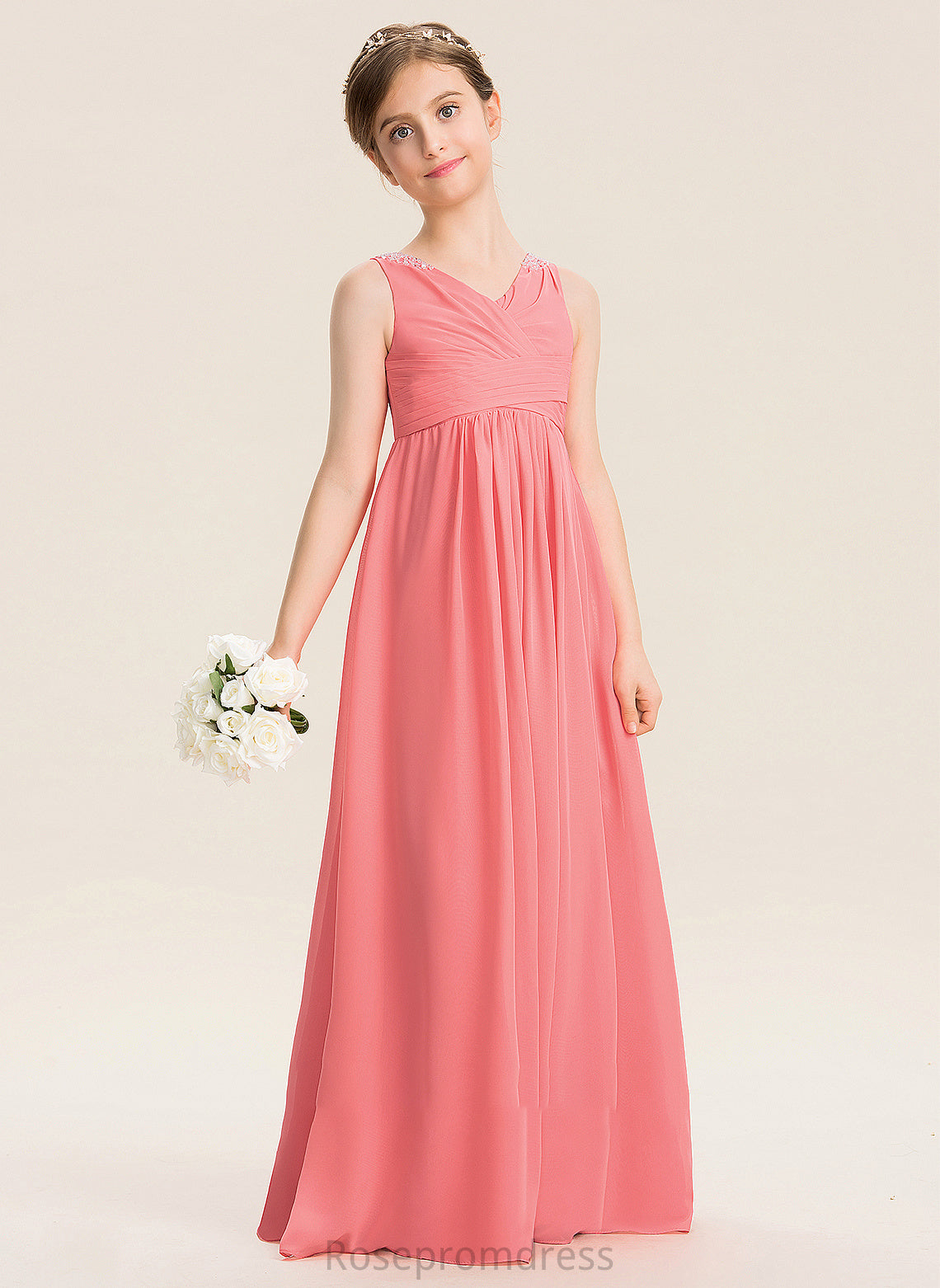Junior Bridesmaid Dresses Penny EmpireV-neckFloor-LengthChiffonJuniorBridesmaidDressWithRuffleBeadingSequins#173291