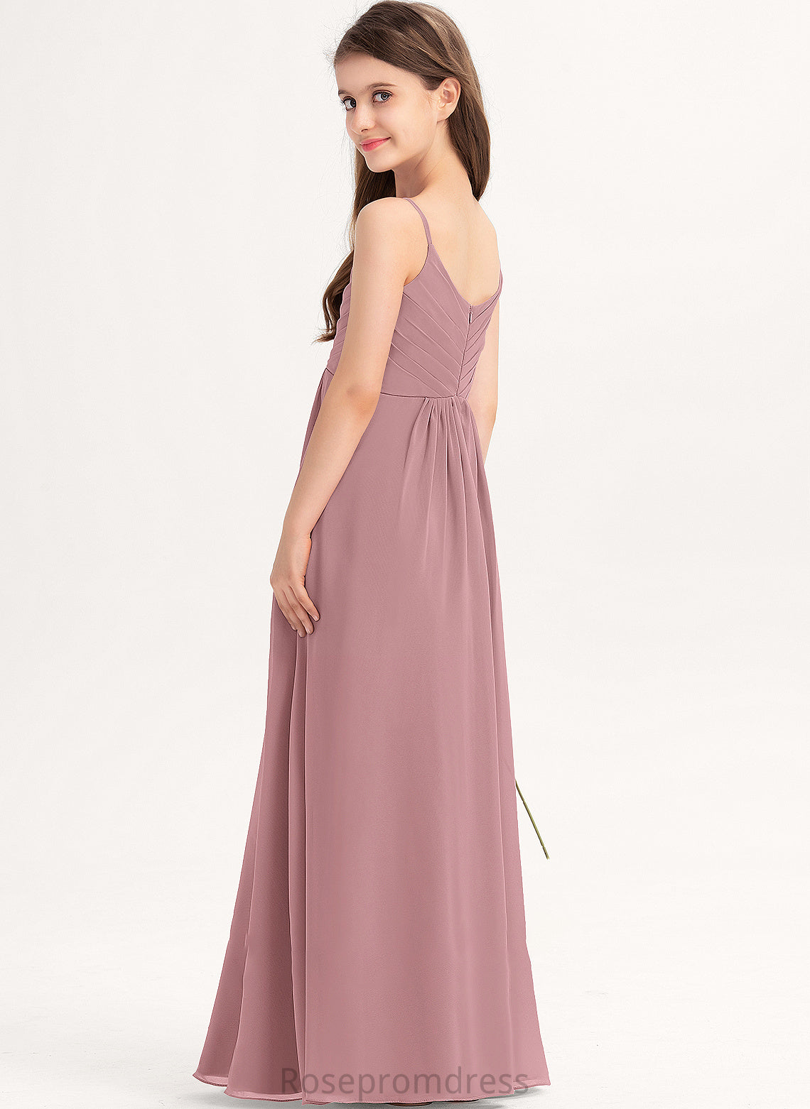 Junior Bridesmaid Dresses Saniya Chiffon With Floor-Length V-neck Ruffle A-Line
