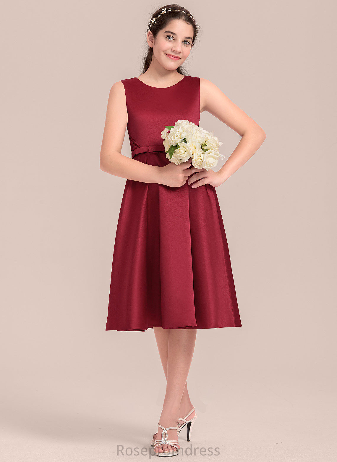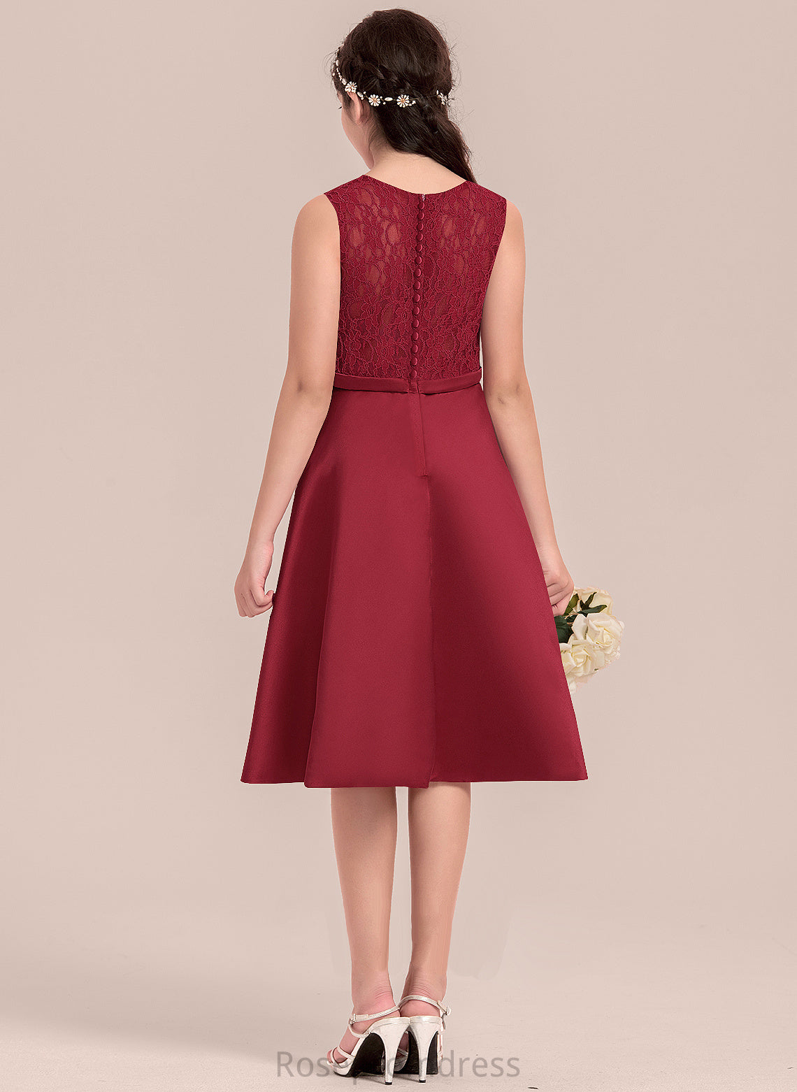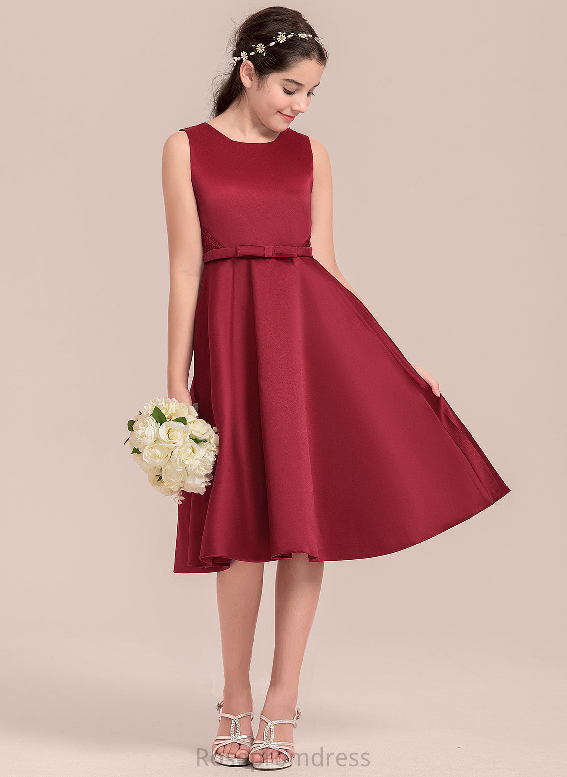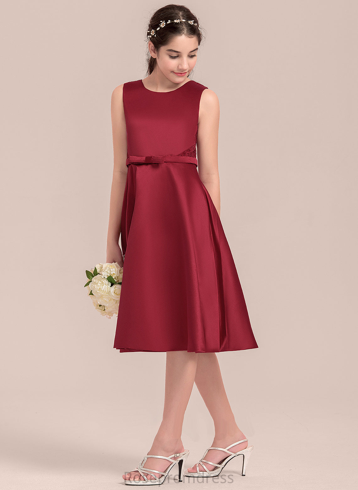 Junior Bridesmaid Dresses Satin Lace Scoop With Knee-Length A-Line Neck Bow(s) Elva