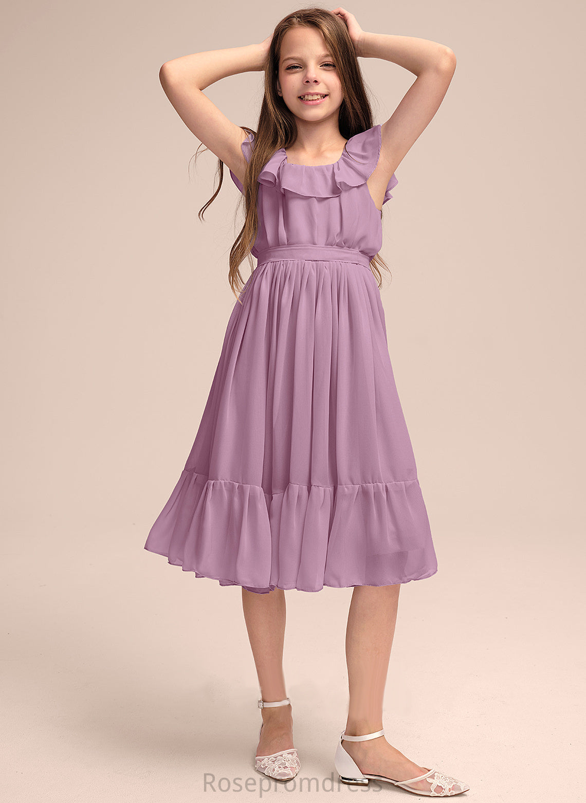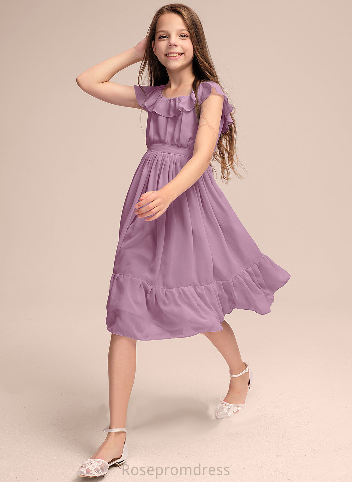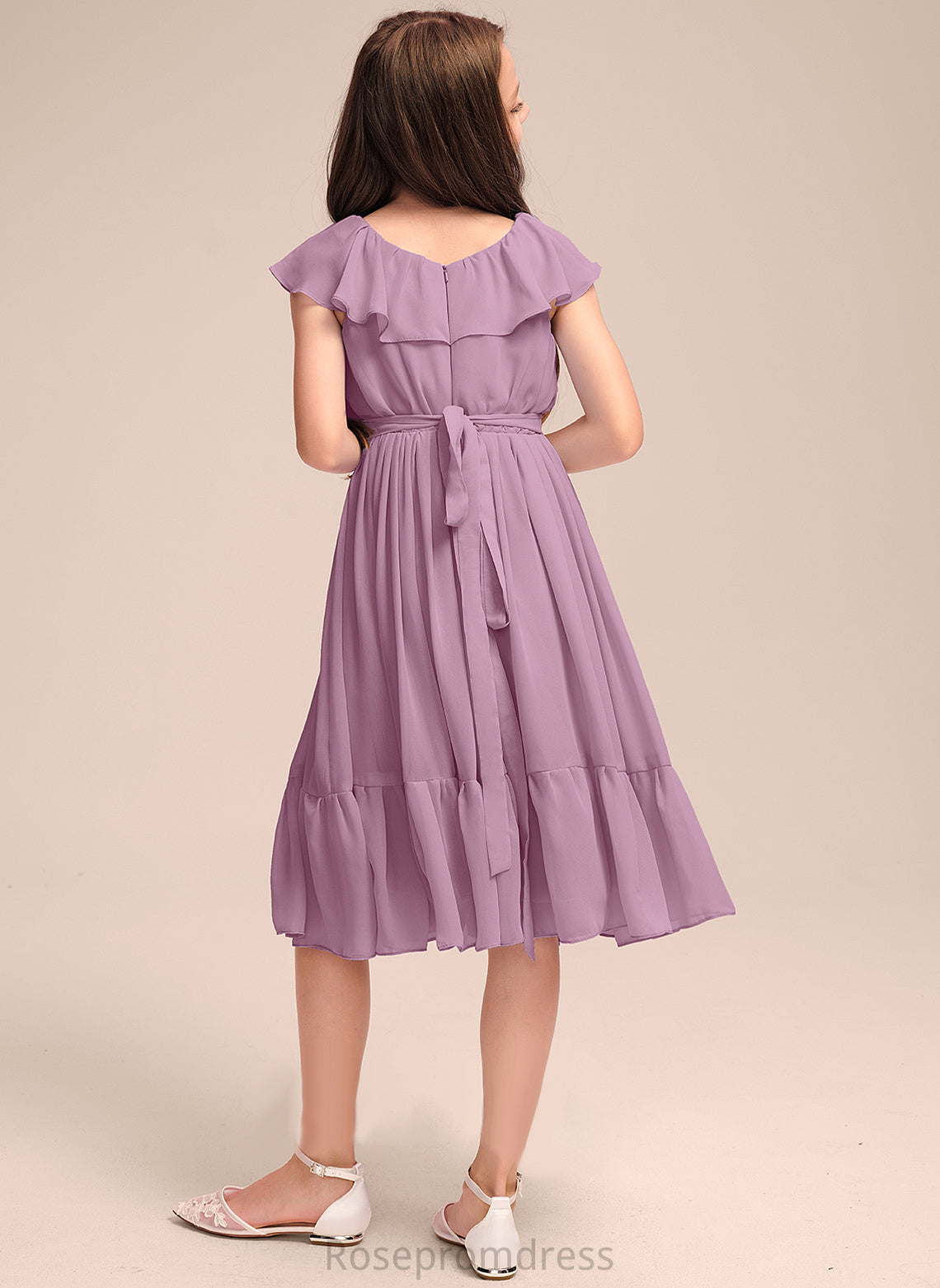 Junior Bridesmaid Dresses Scoop Cascading Bow(s) Knee-Length Chiffon Ruffles With A-Line Neck Eleanor