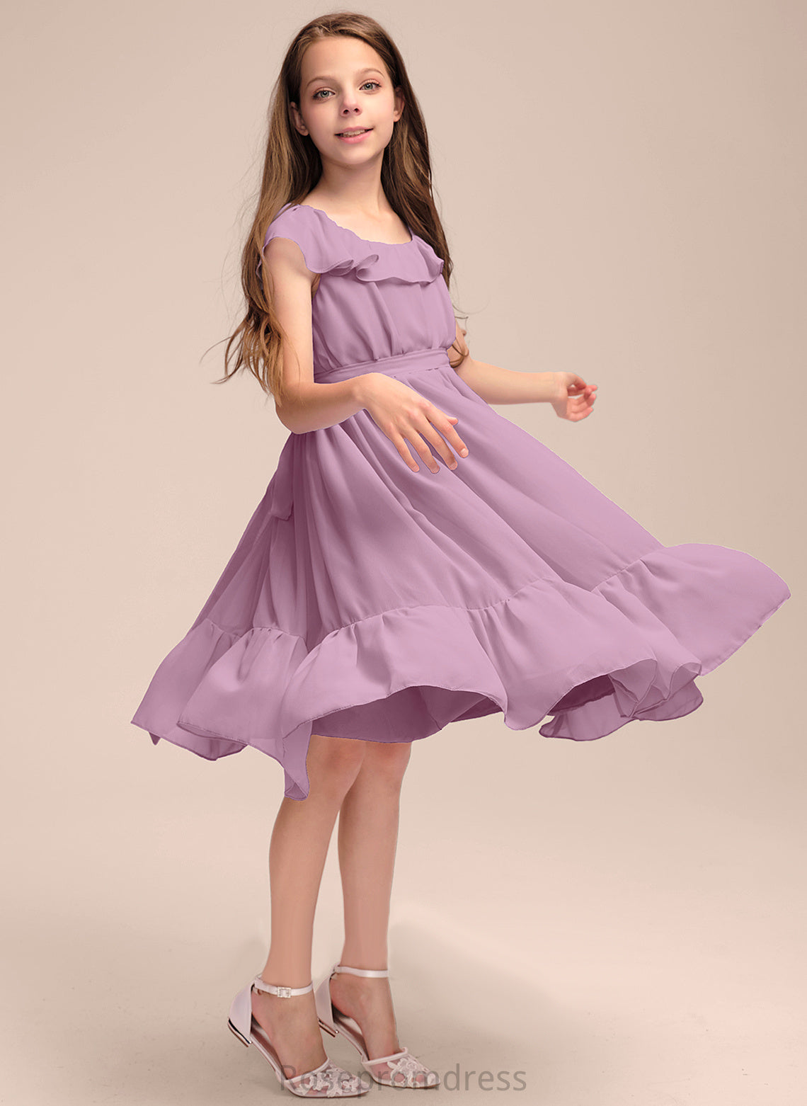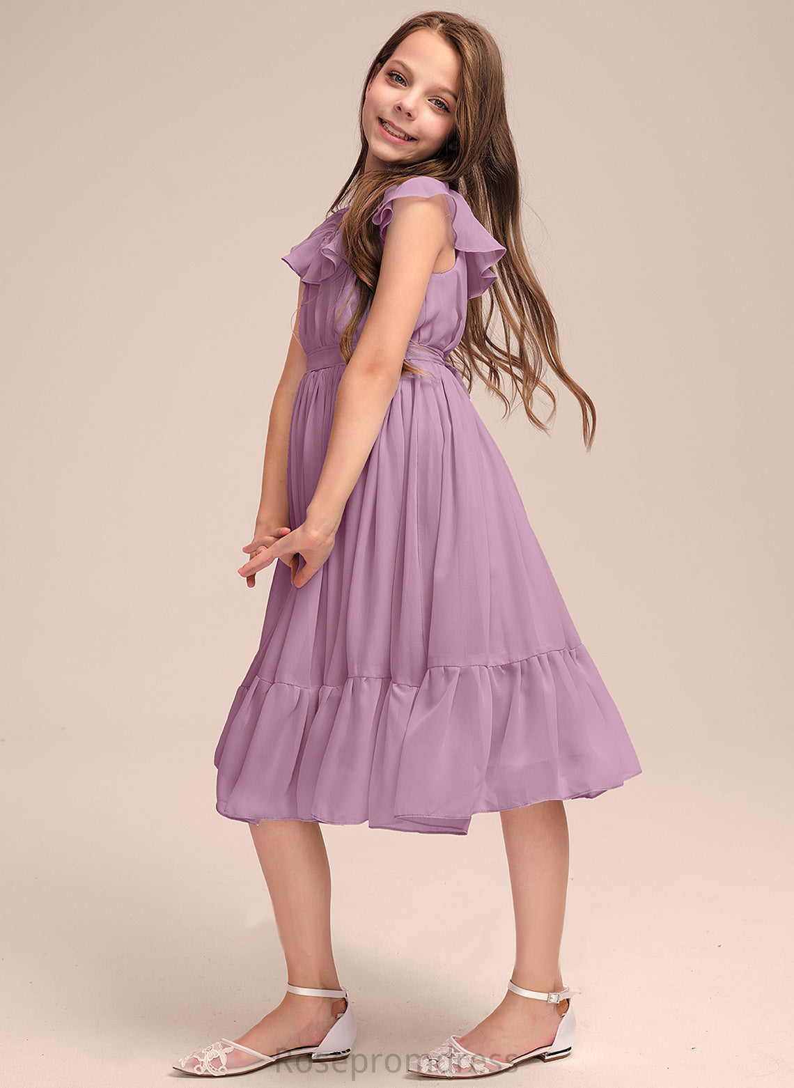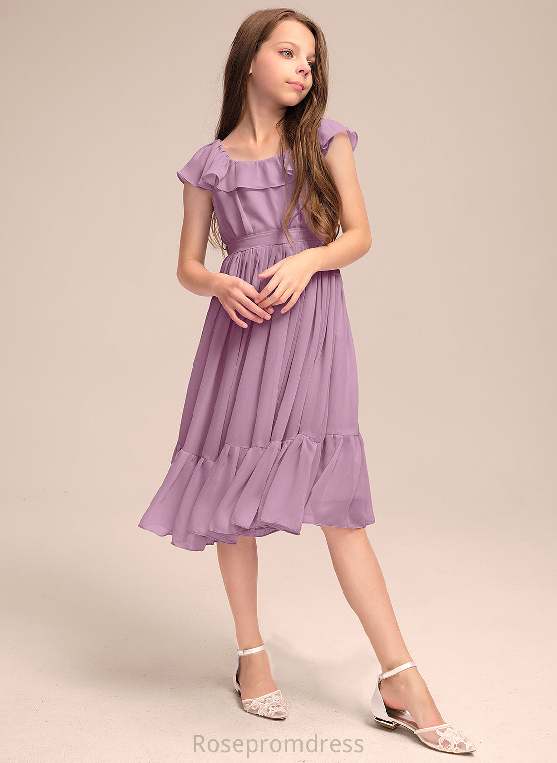 Junior Bridesmaid Dresses Scoop Cascading Bow(s) Knee-Length Chiffon Ruffles With A-Line Neck Eleanor