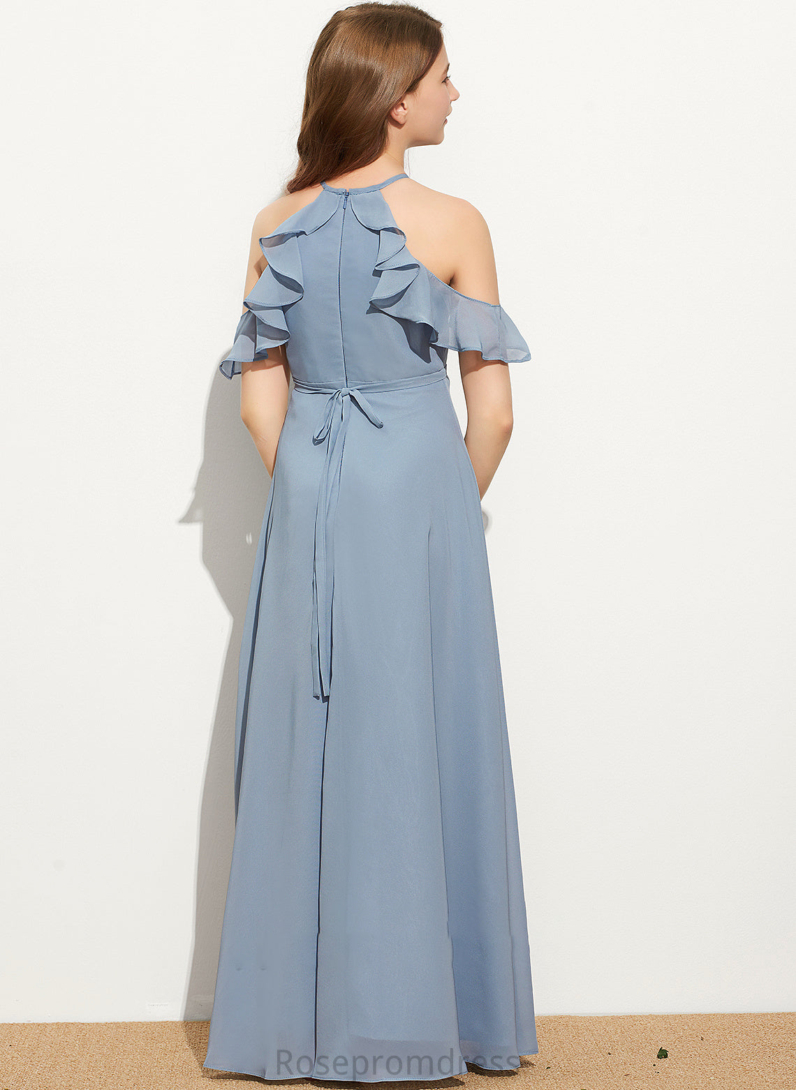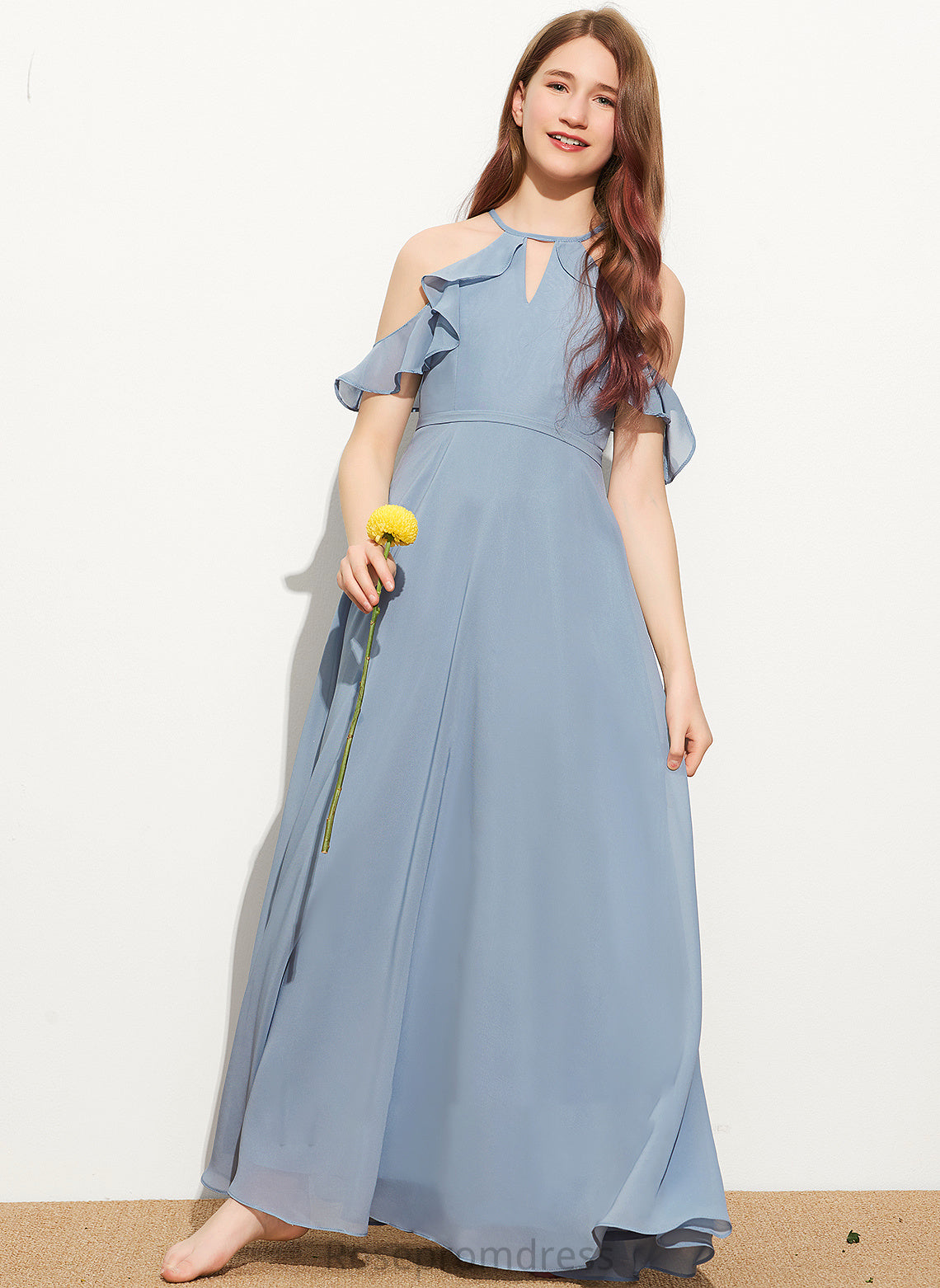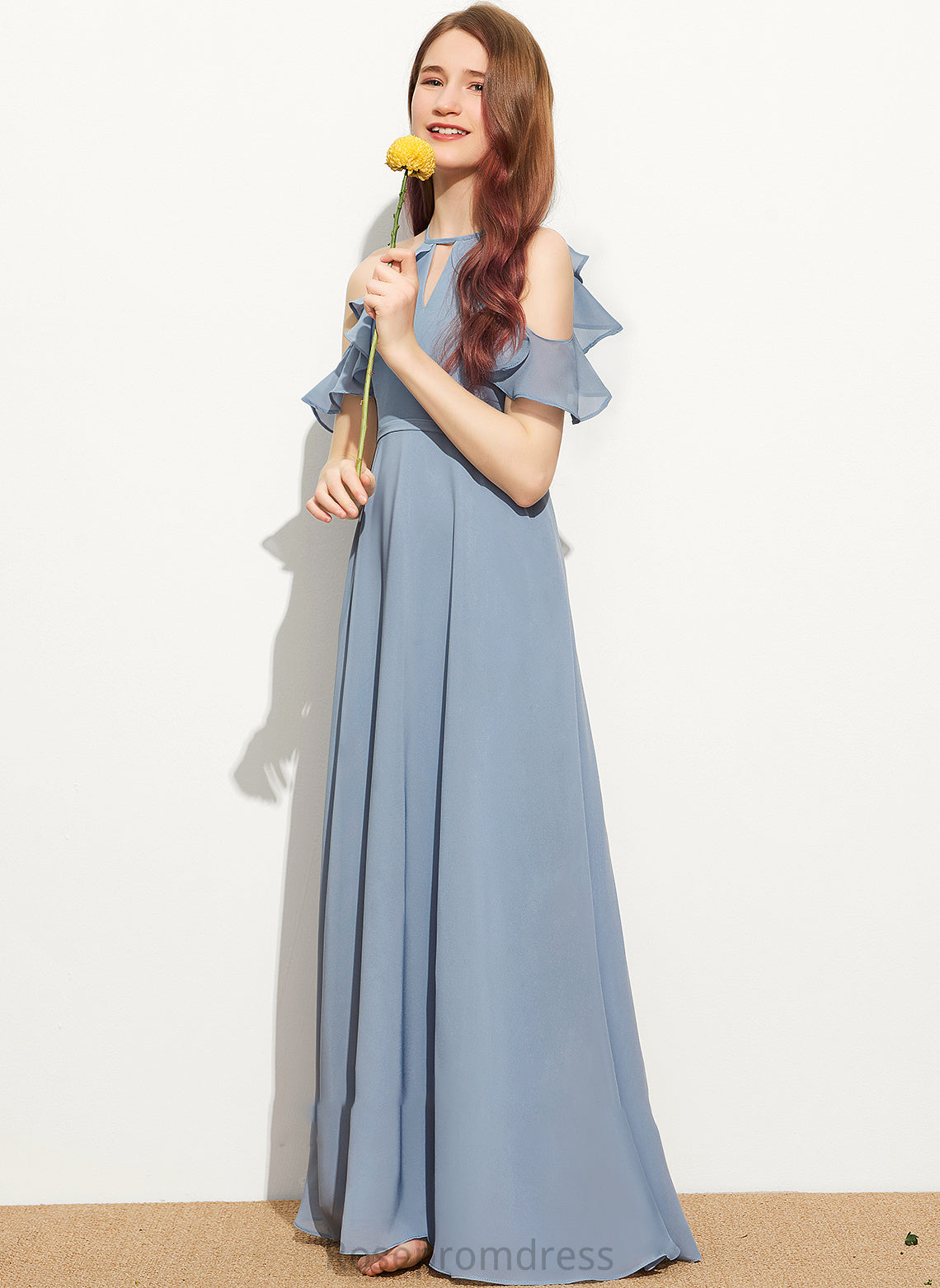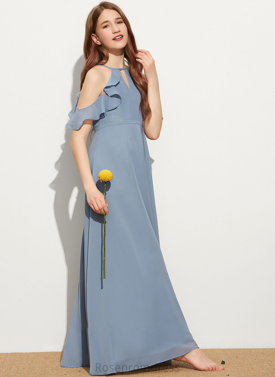 Junior Bridesmaid Dresses With Floor-Length Scoop Cascading Bow(s) Camilla Neck Ruffles A-Line Chiffon