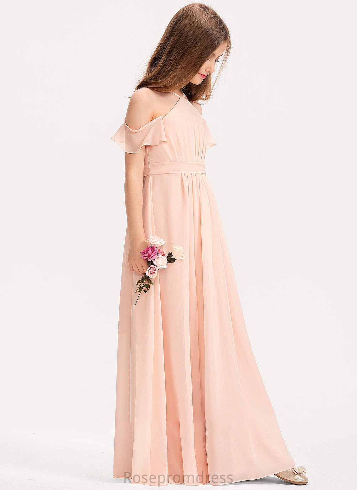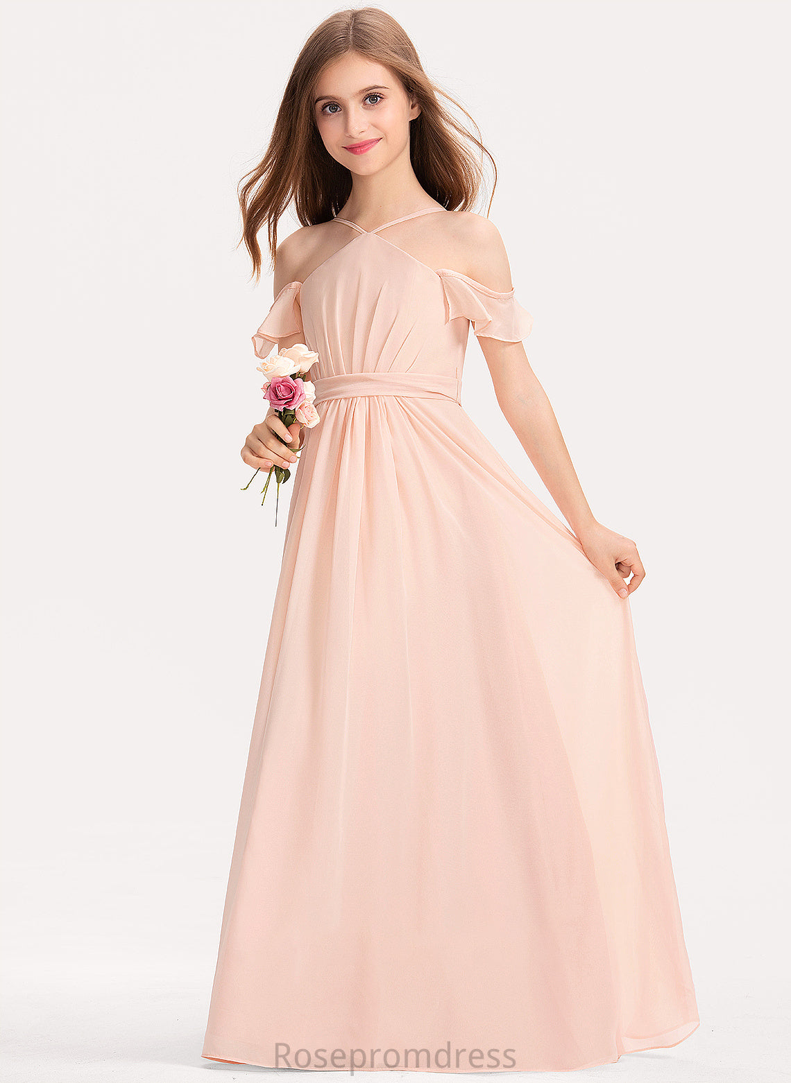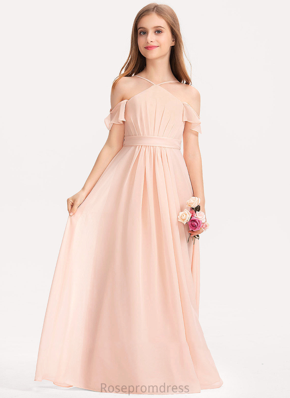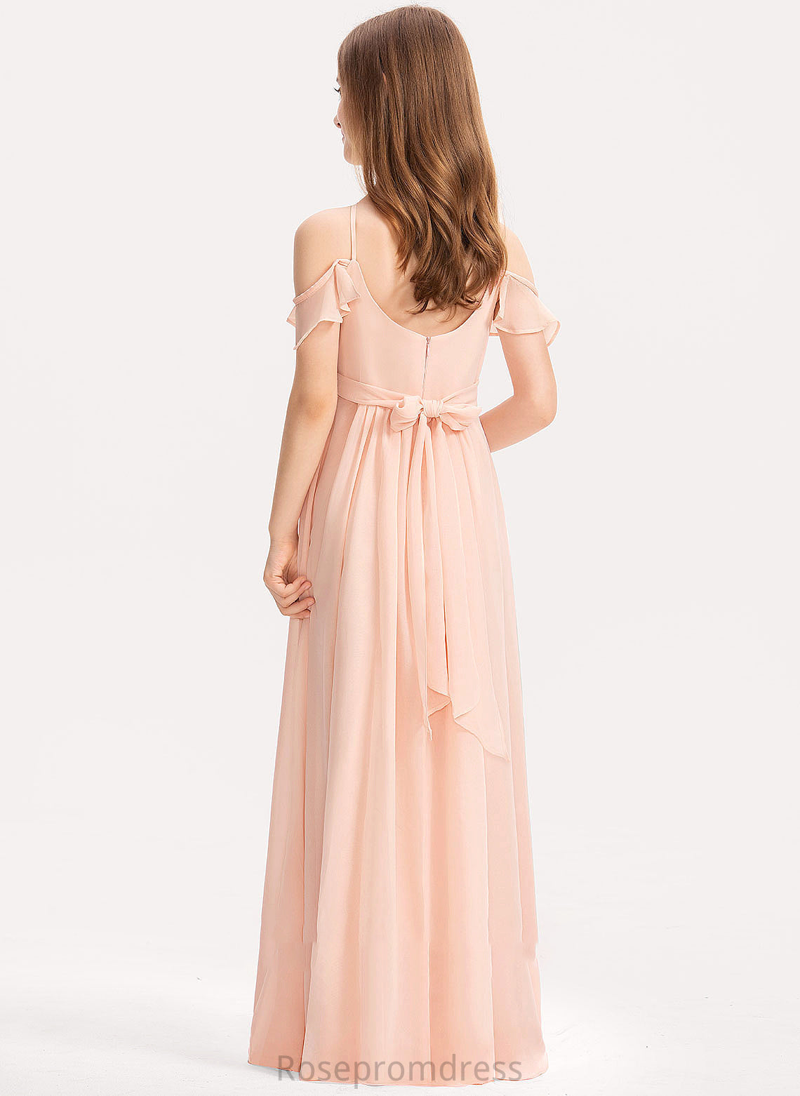 Justice With Junior Bridesmaid Dresses Floor-Length Chiffon Bow(s) Ruffle V-neck A-Line