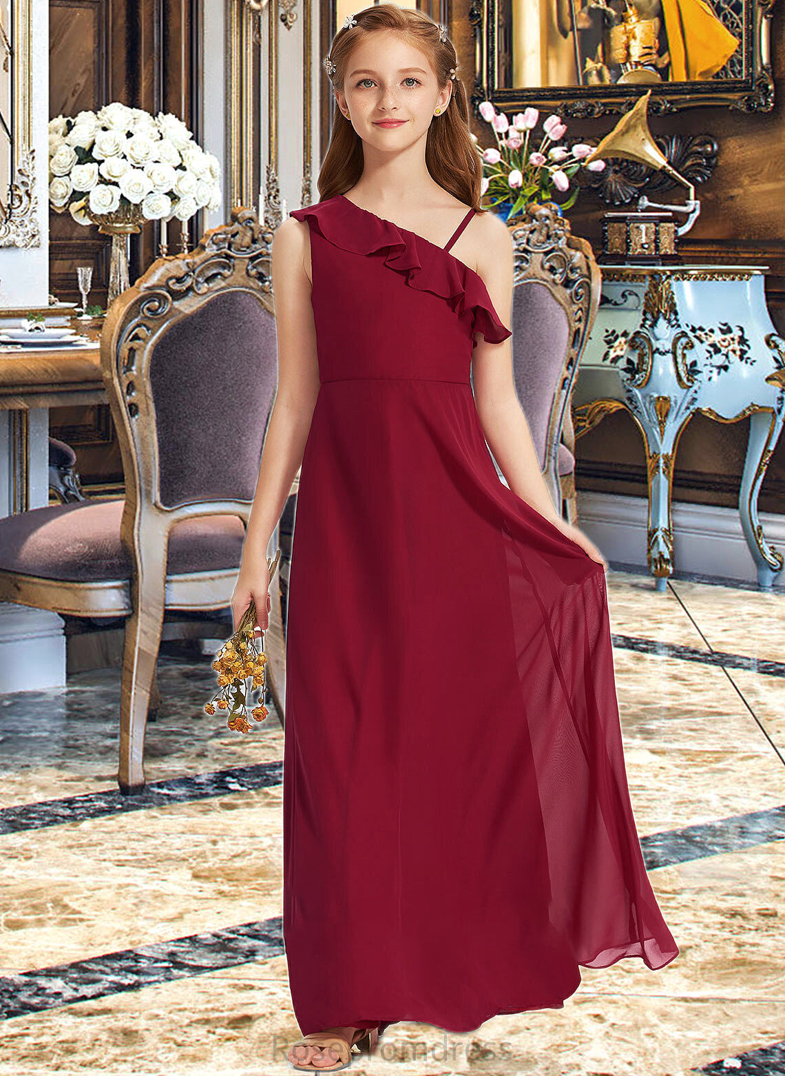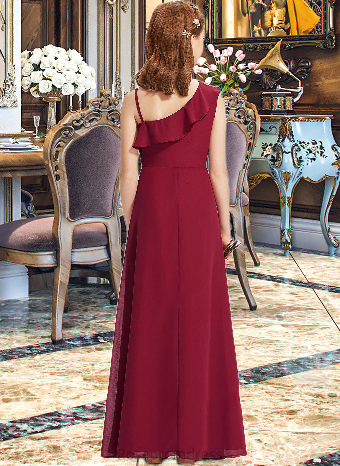 Kaia A-Line One-Shoulder Floor-Length Chiffon Junior Bridesmaid Dress With Ruffles SRSP0013650