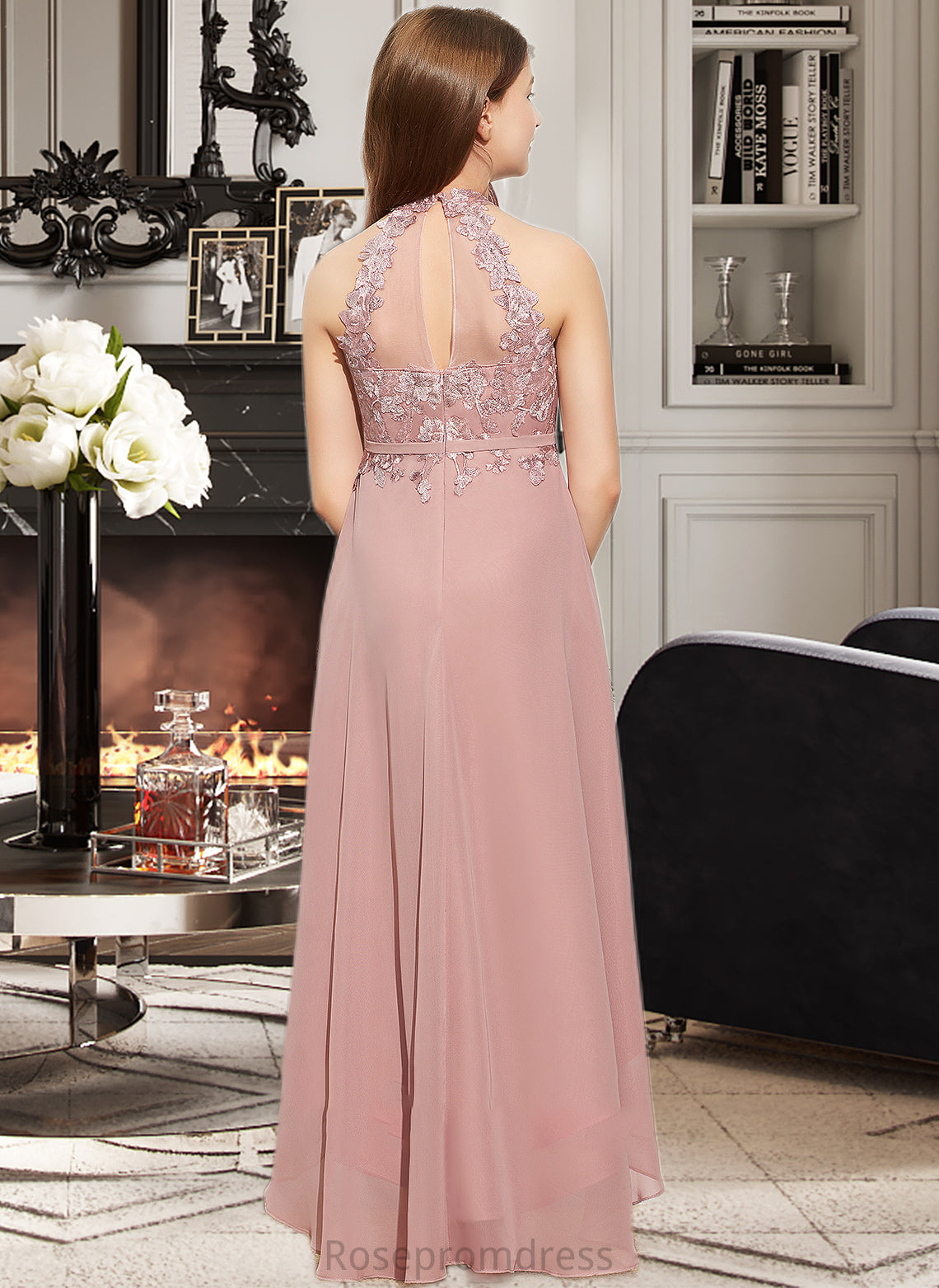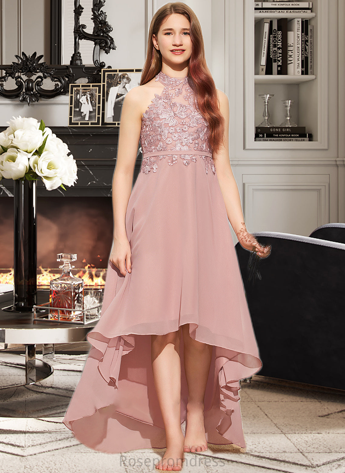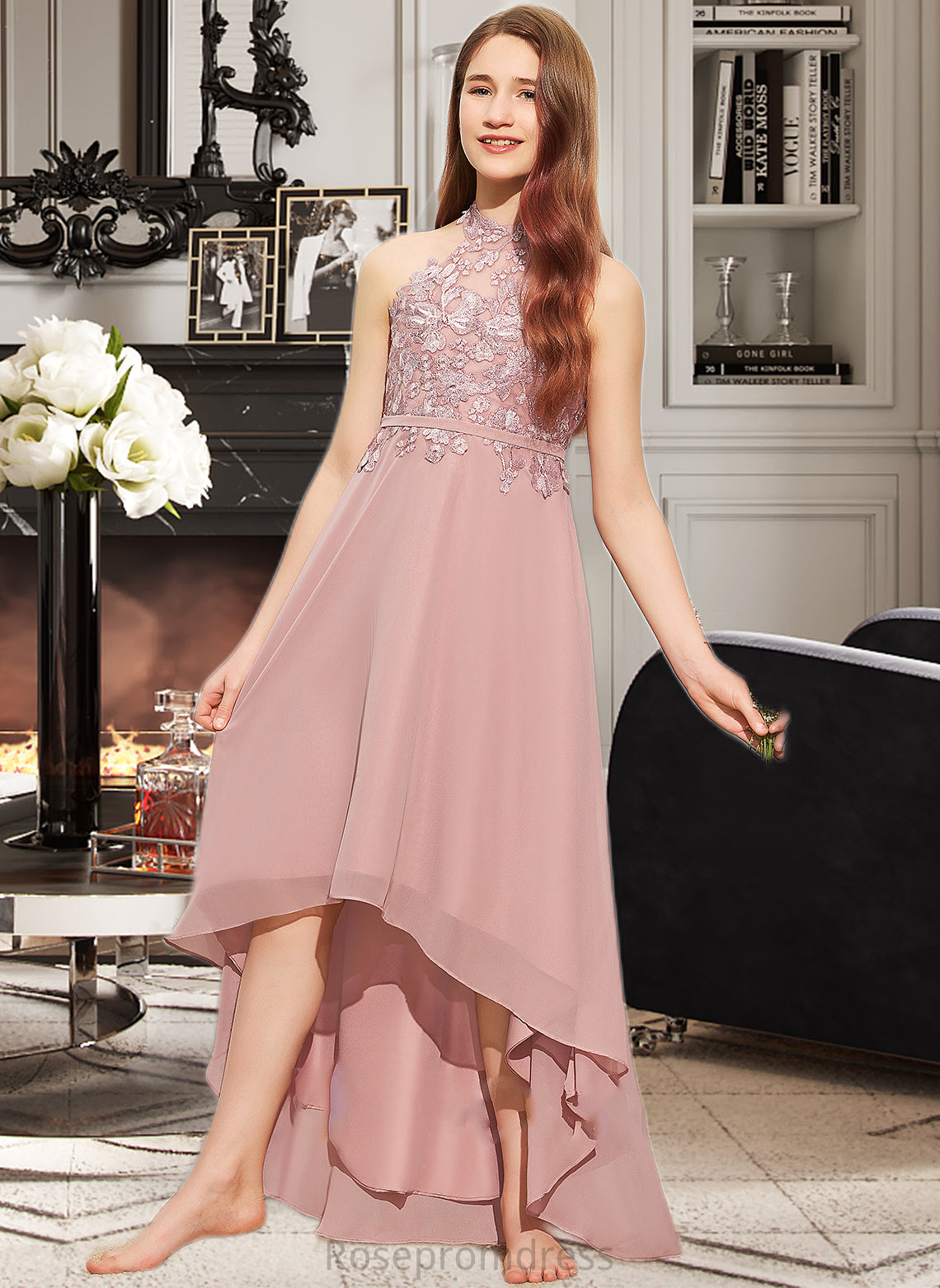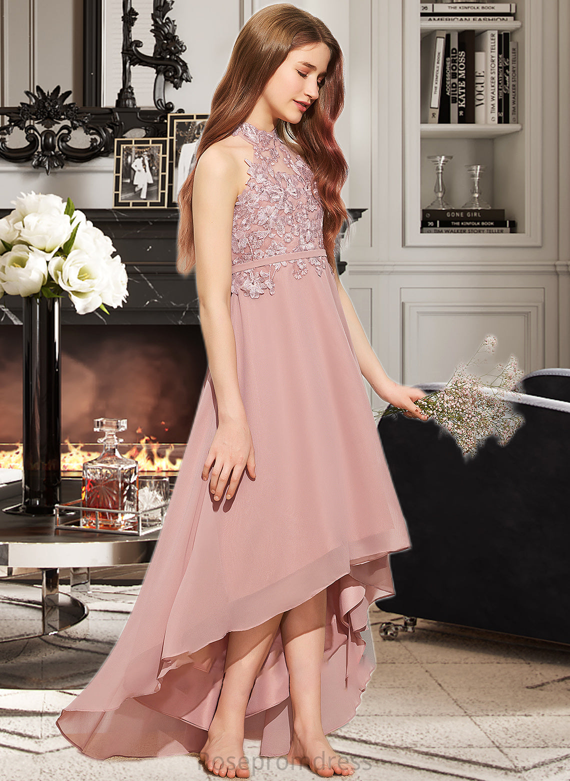 Kaia A-Line Scoop Neck Asymmetrical Chiffon Lace Junior Bridesmaid Dress SRSP0013388