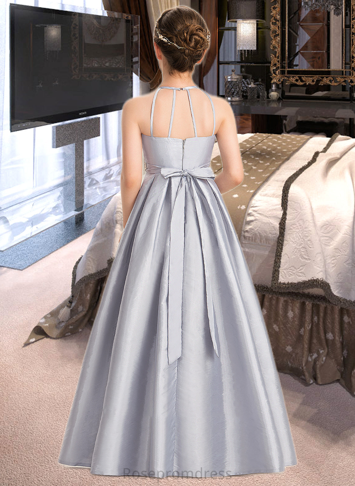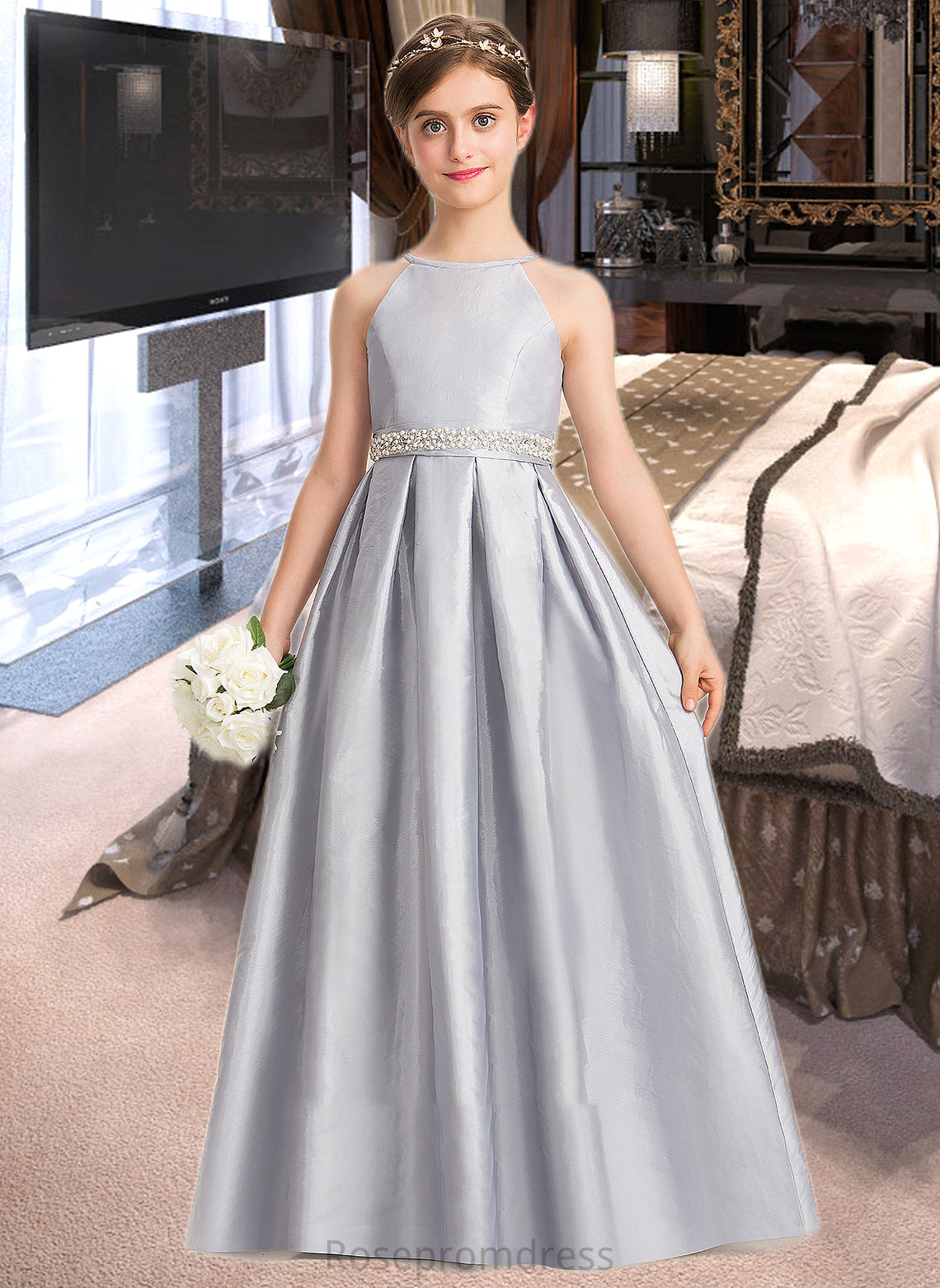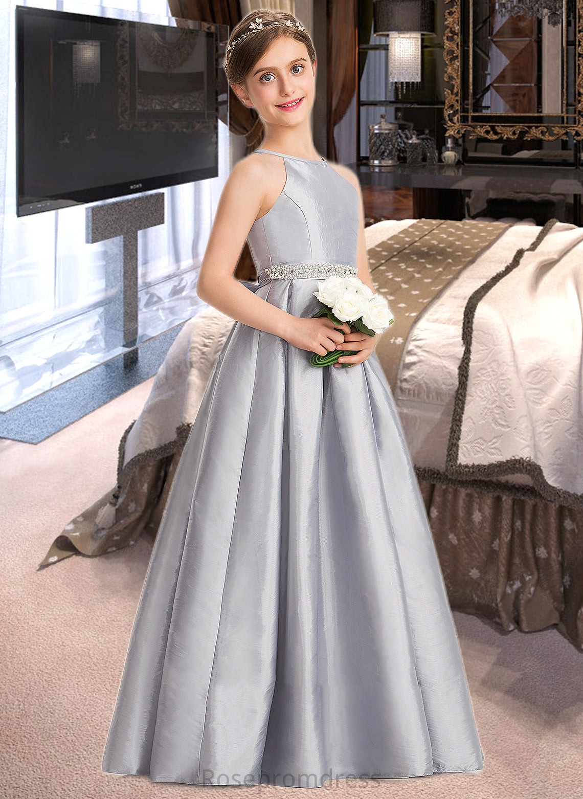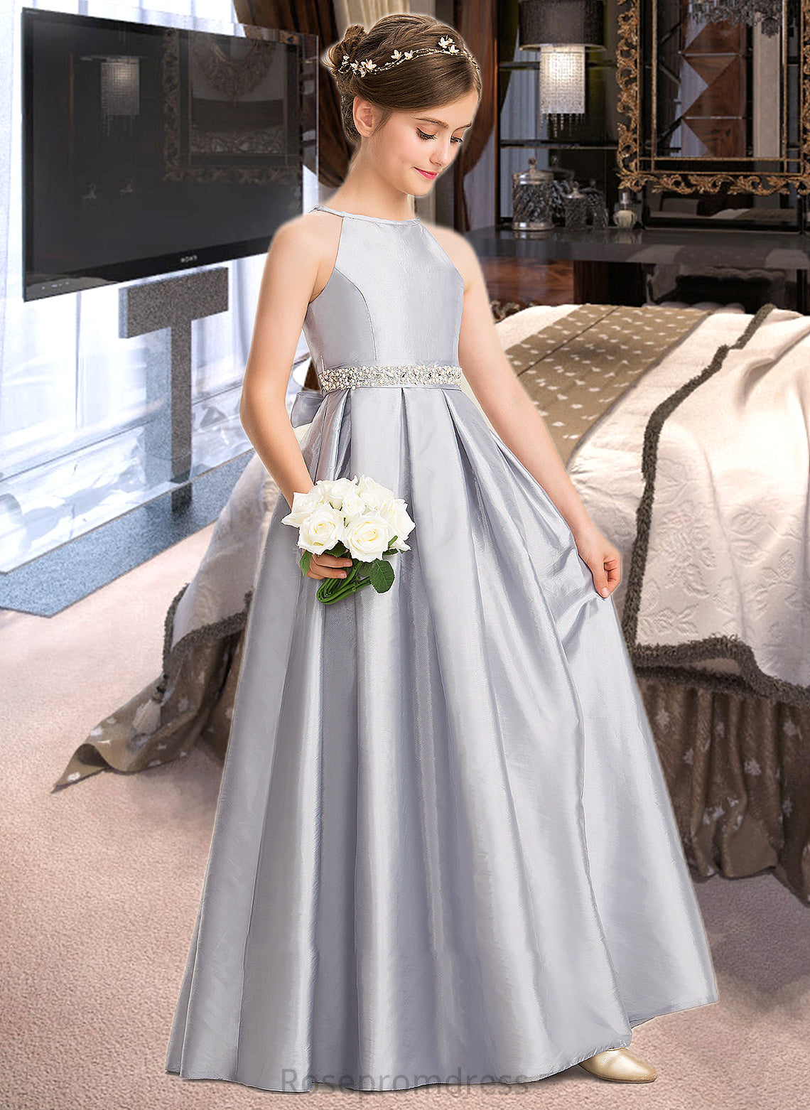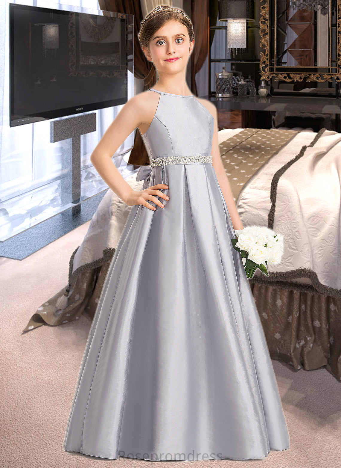 Kailey A-Line Scoop Neck Floor-Length Taffeta Junior Bridesmaid Dress With Beading Bow(s) SRSP0013506