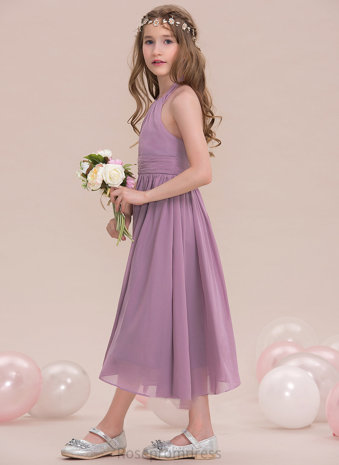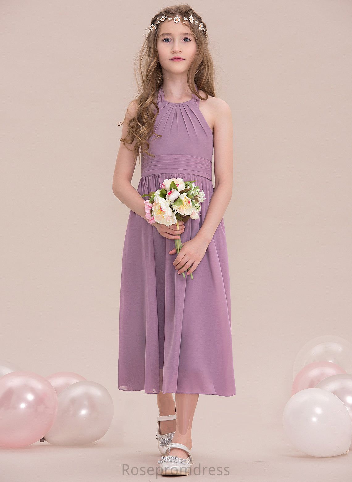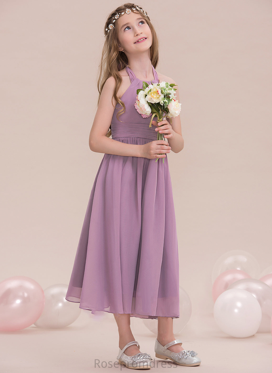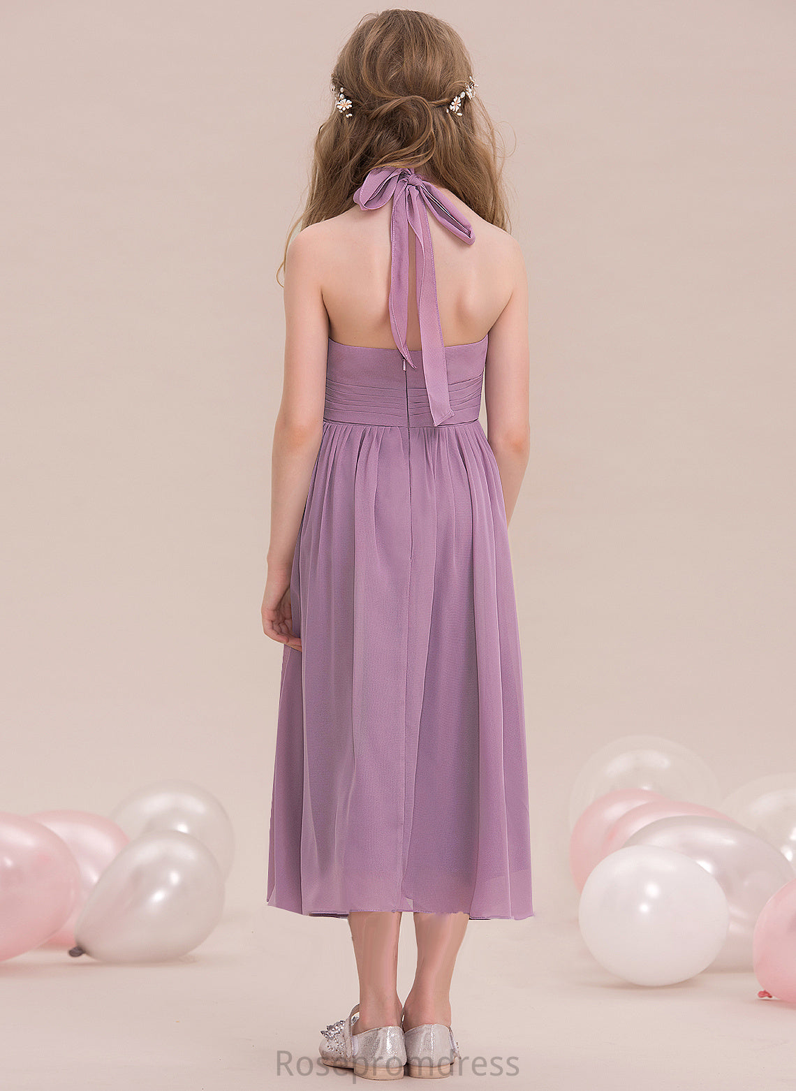 Kailey Junior Bridesmaid Dresses With Halter A-Line Ruffle Chiffon Tea-Length