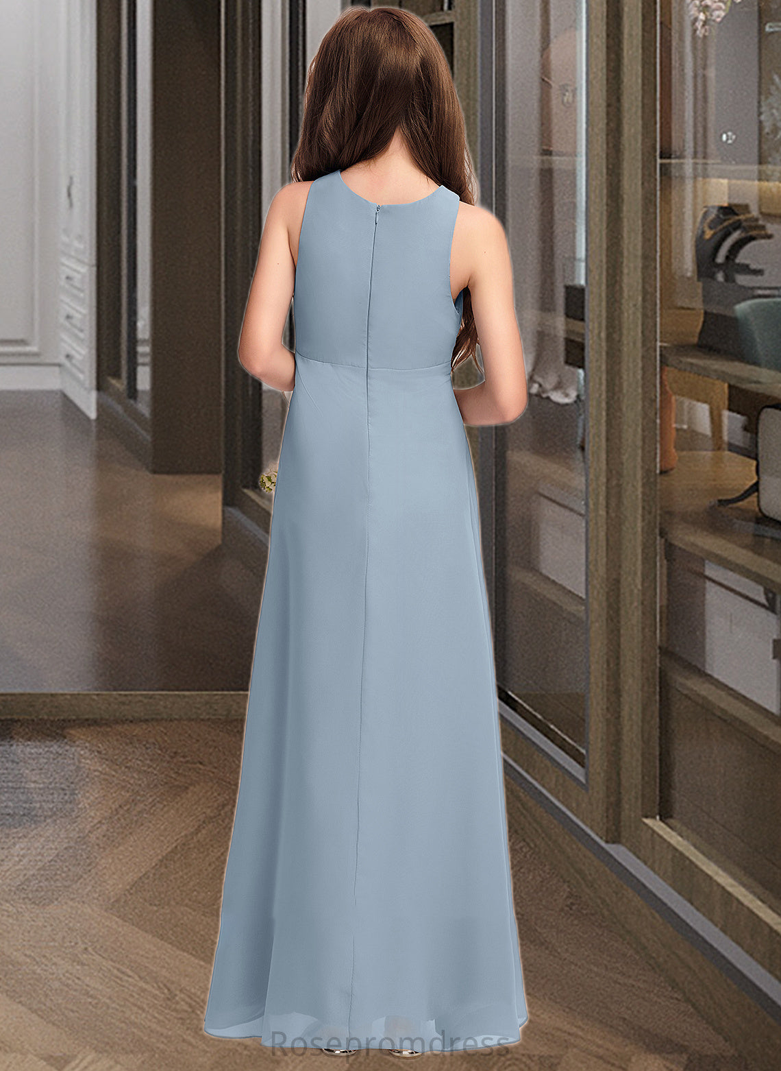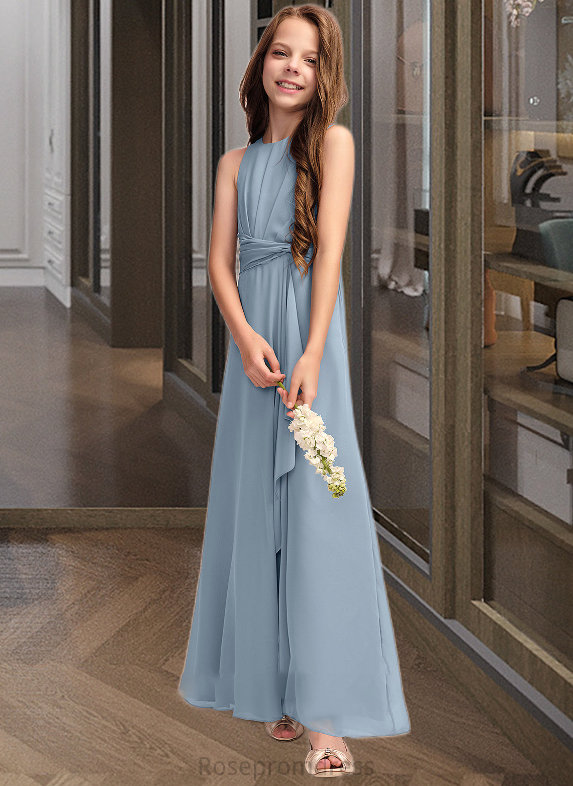 Kaitlin A-Line Scoop Neck Floor-Length Chiffon Junior Bridesmaid Dress With Cascading Ruffles SRSP0013450