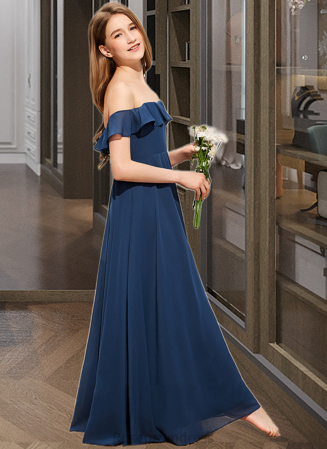 Kaley A-Line Off-the-Shoulder Floor-Length Chiffon Junior Bridesmaid Dress SRSP0013551