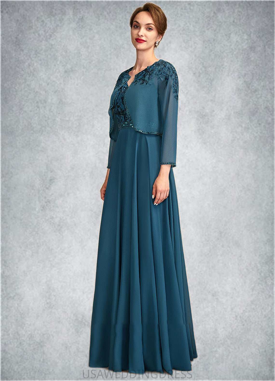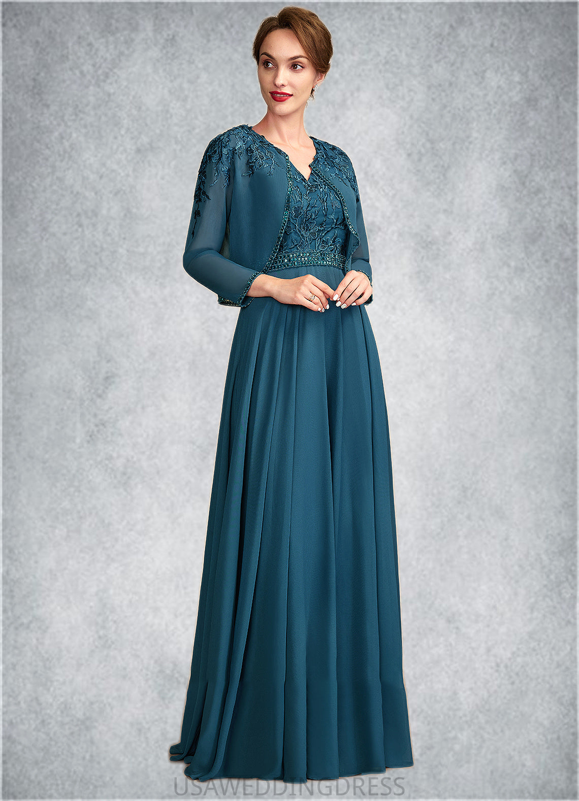 Kaliyah A-Line V-neck Floor-Length Chiffon Lace Mother of the Bride Dress With Beading Sequins DS126P0015004