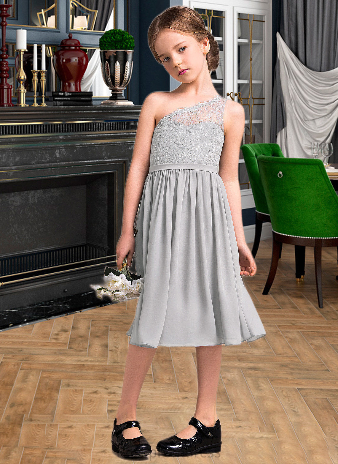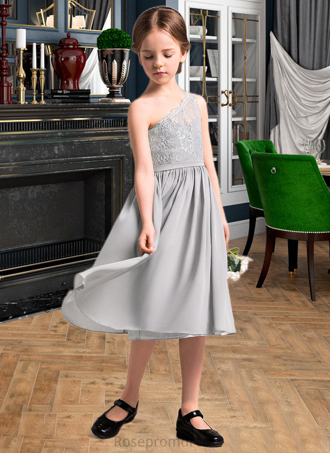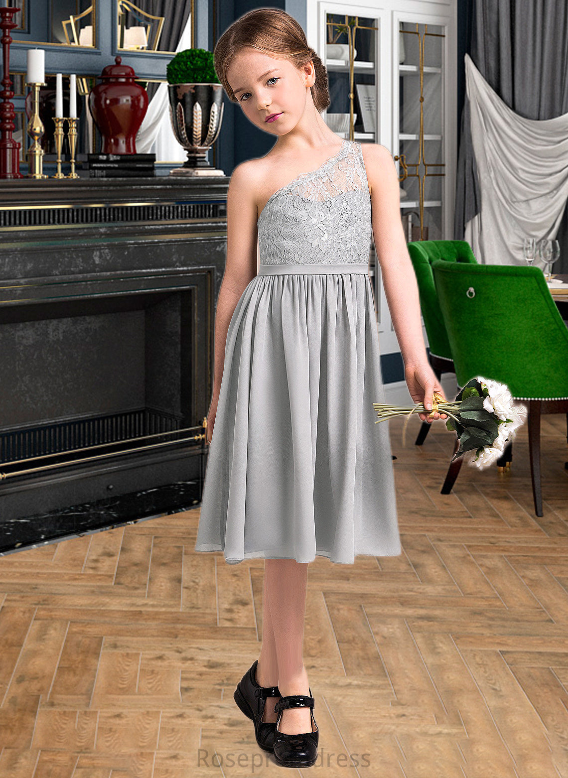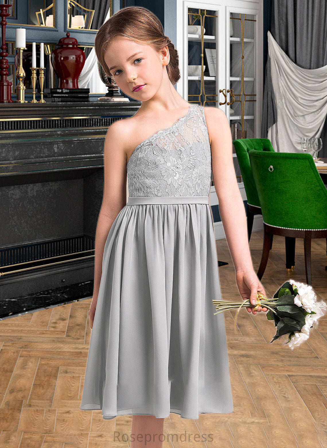 Kamila A-Line One-Shoulder Knee-Length Chiffon Lace Junior Bridesmaid Dress SRSP0013571