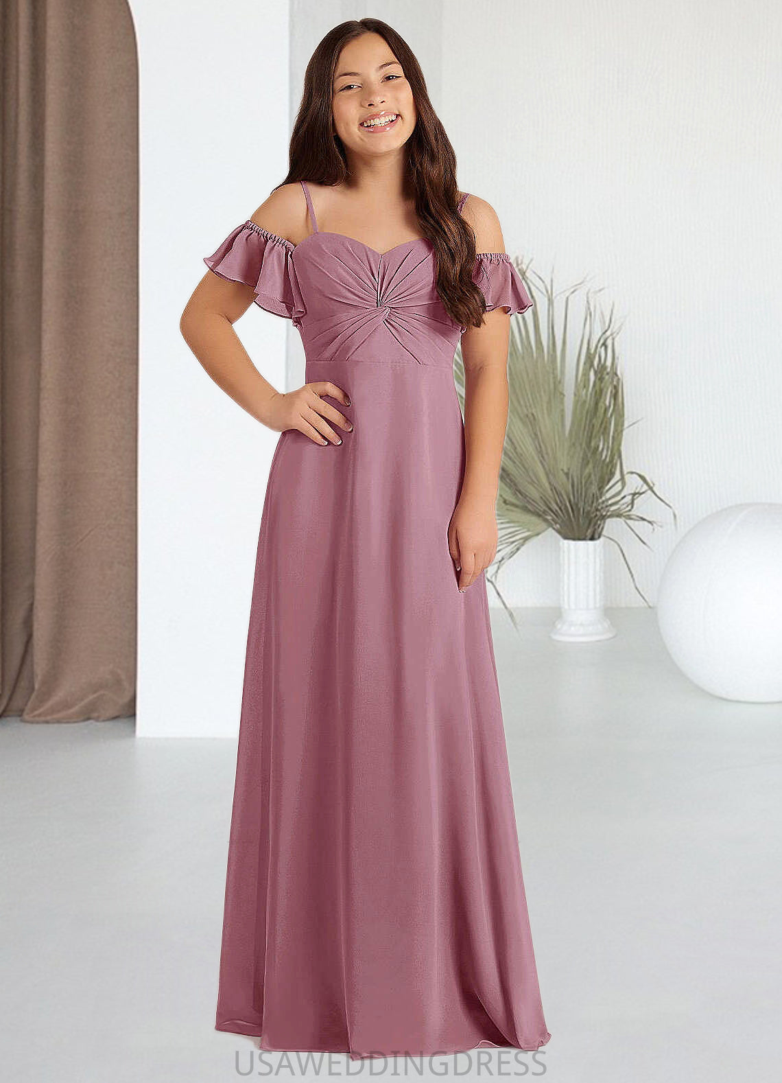 Kara A-Line Off the Shoulder Chiffon Floor-Length Junior Bridesmaid Dress Vintage Mauve DSP0022859