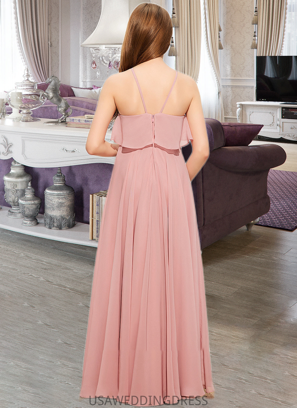 Kara A-Line Square Neckline Floor-Length Chiffon Junior Bridesmaid Dress With Cascading Ruffles DSP0013509