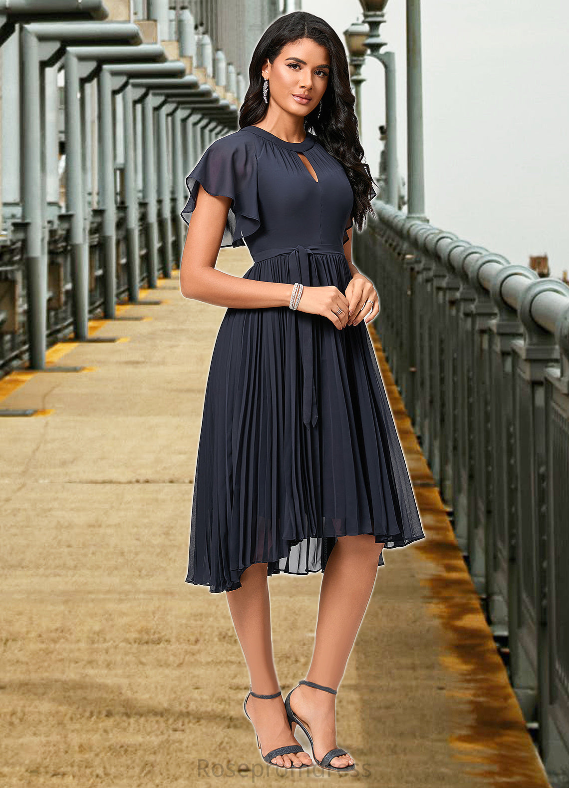 Karlee A-line Scoop Asymmetrical Chiffon Cocktail Dress With Bow Pleated SRSP0022530