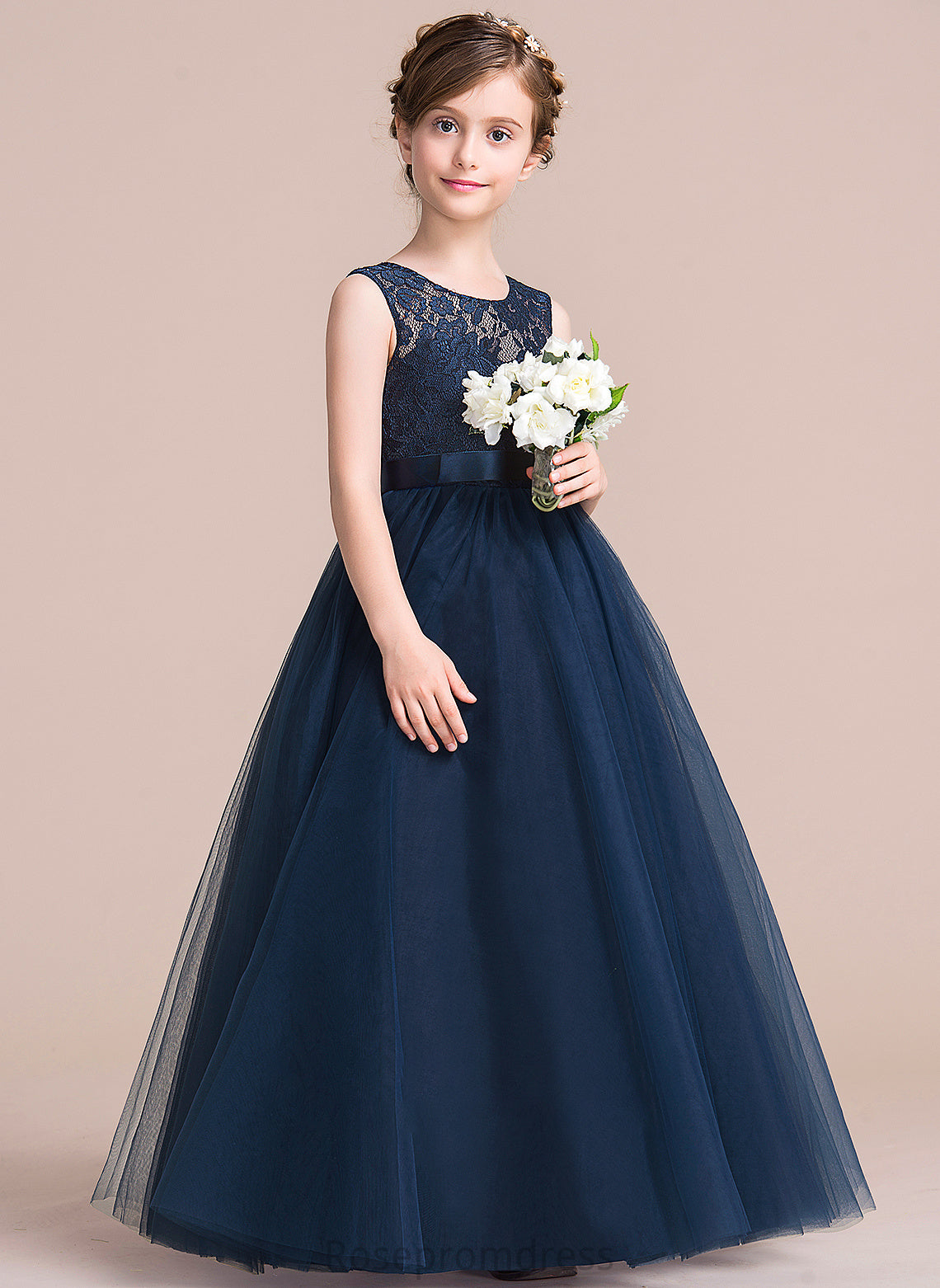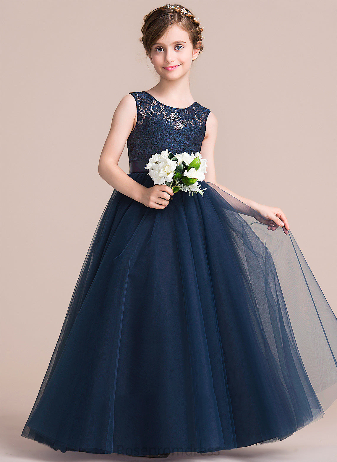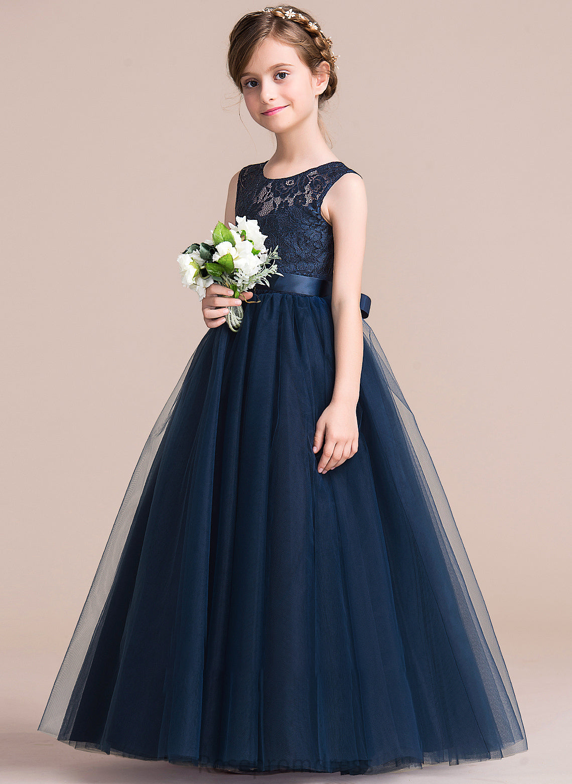 Karli Junior Bridesmaid Dresses Ball-Gown/PrincessScoopNeckFloor-LengthTulleJuniorBridesmaidDressWithSash#126265