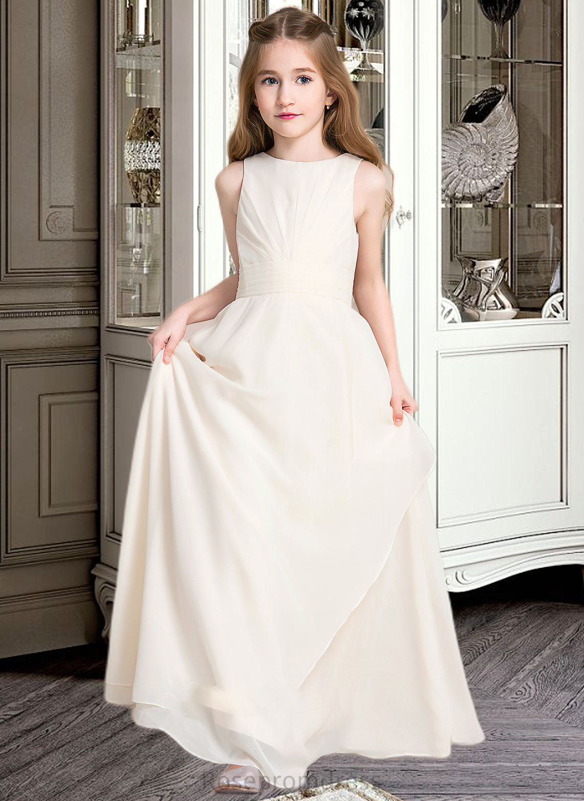 Katrina A-Line Scoop Neck Floor-Length Chiffon Junior Bridesmaid Dress With Cascading Ruffles SRSP0013394