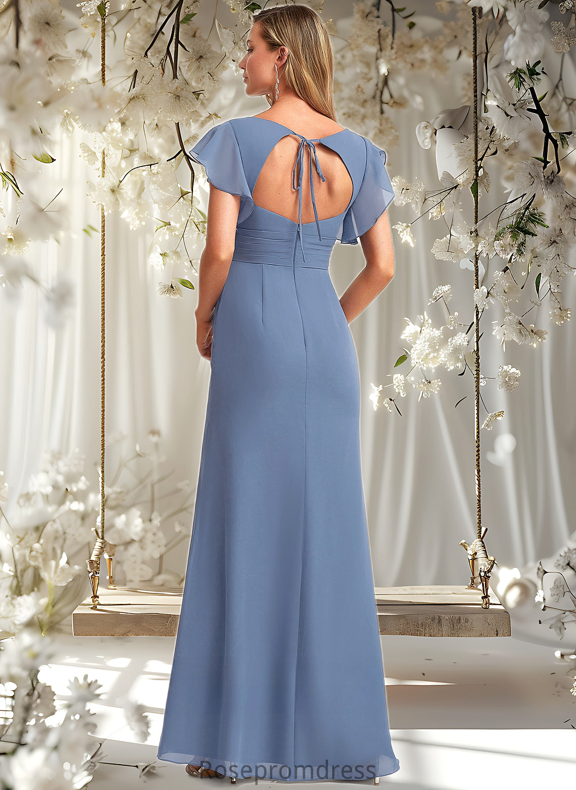 Katrina A-line V-Neck Floor-Length Chiffon Bridesmaid Dress With Ruffle DSP0025729