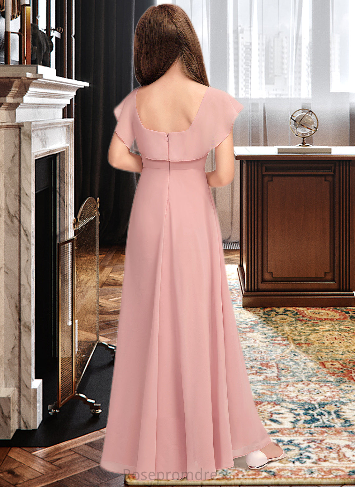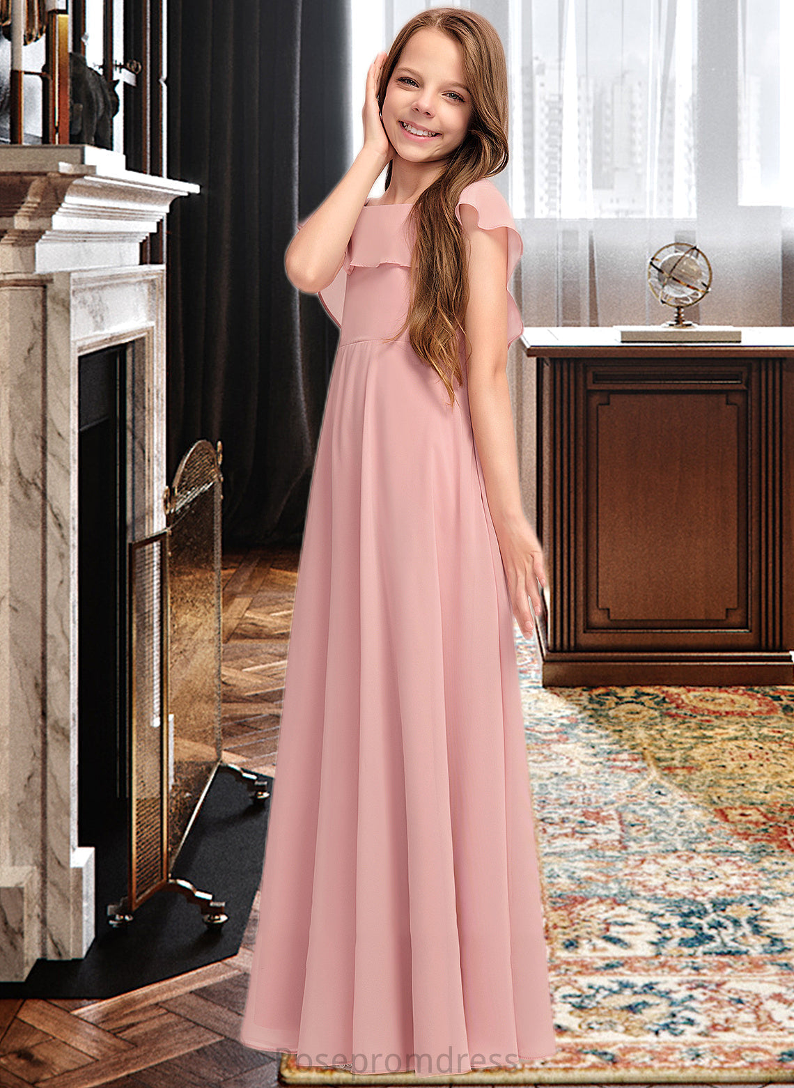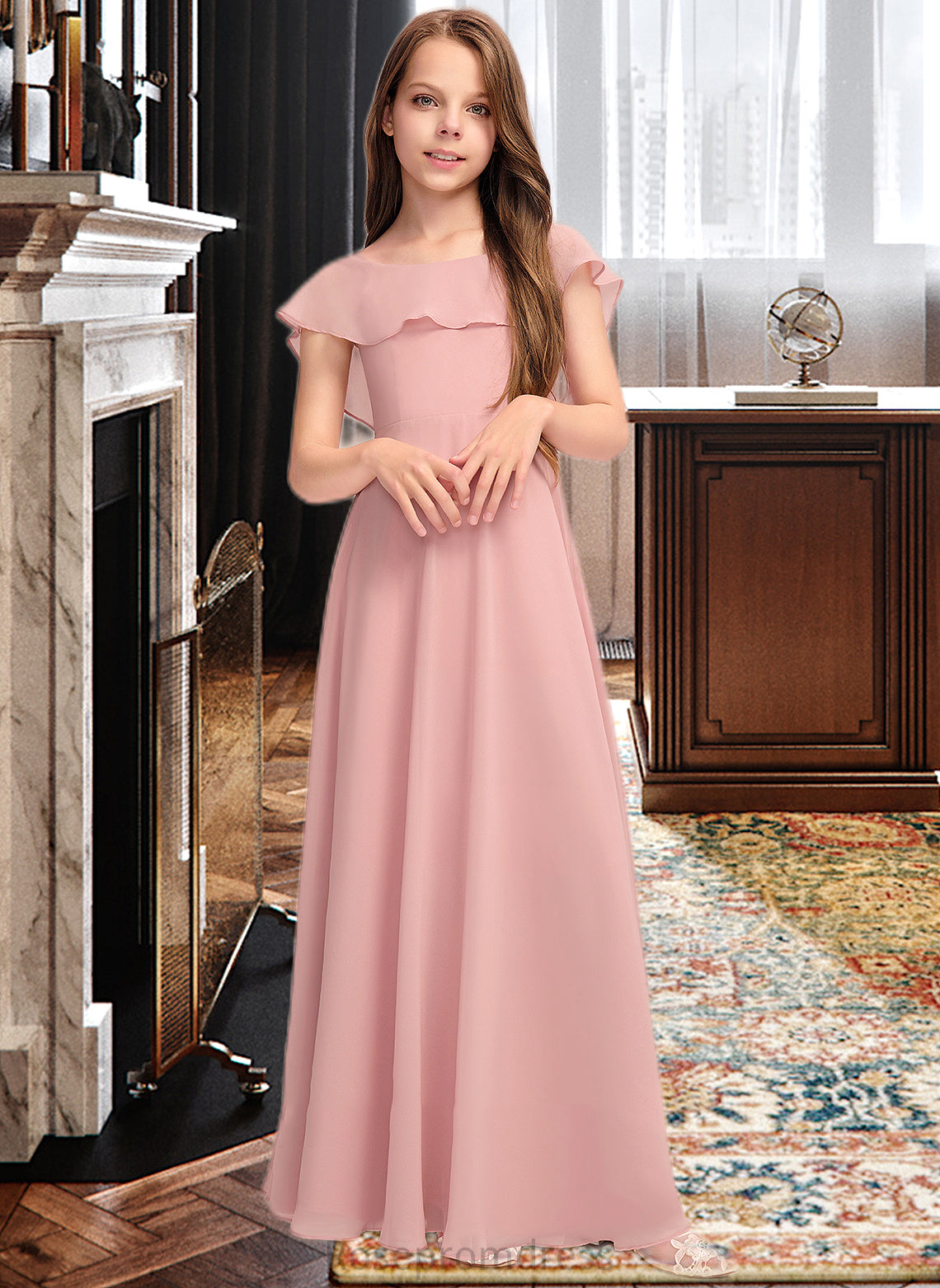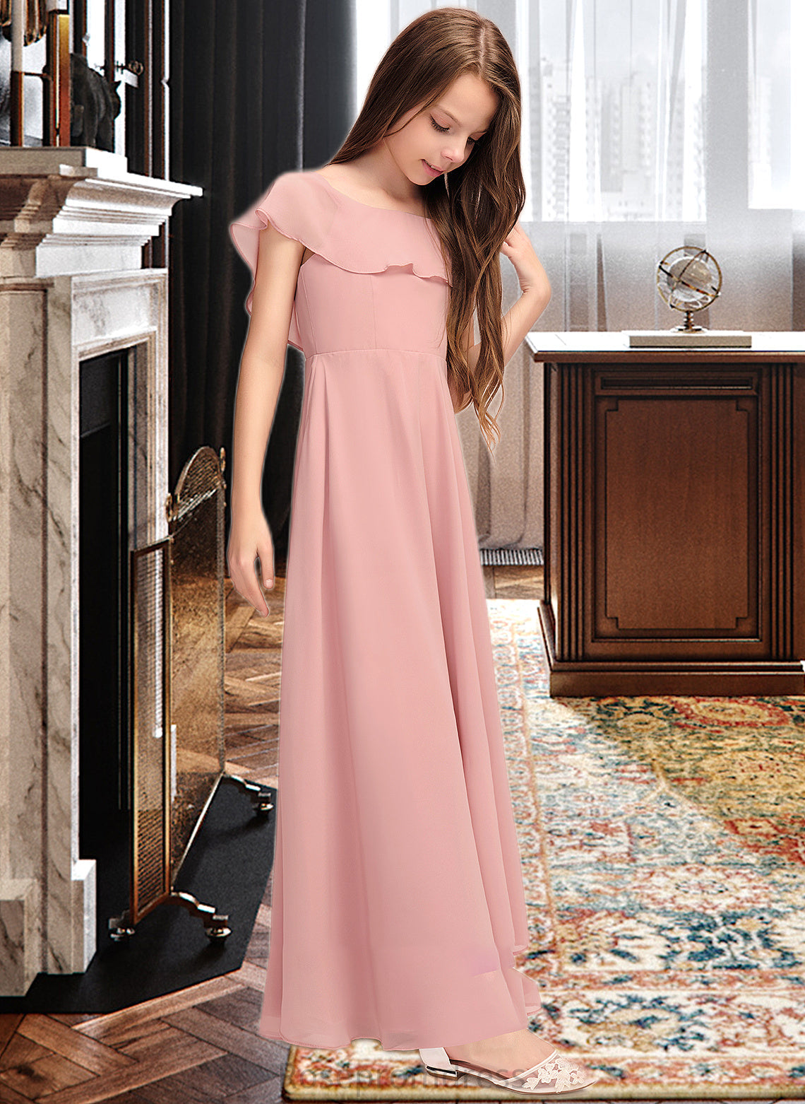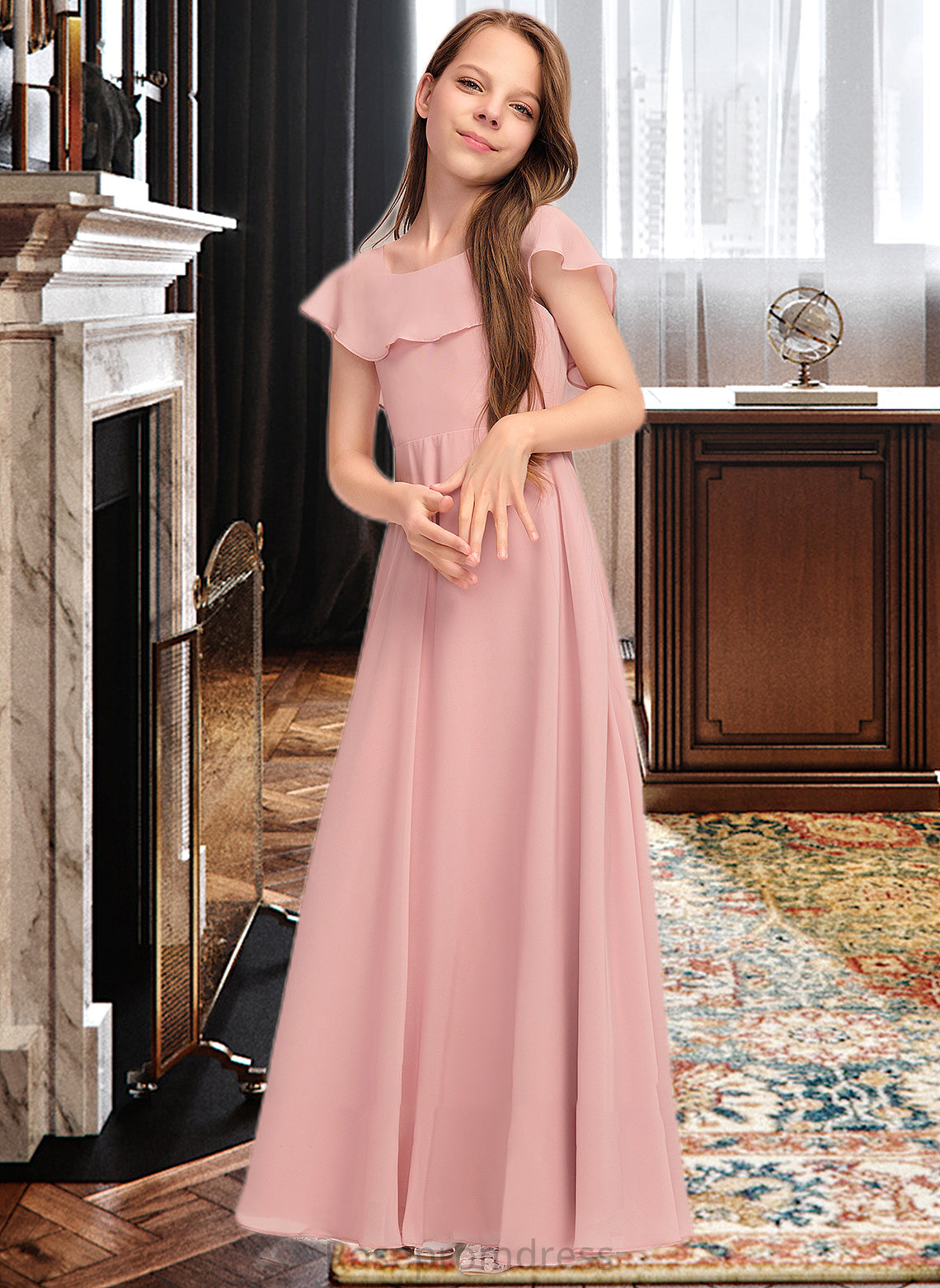Kaya A-Line Scoop Neck Floor-Length Chiffon Junior Bridesmaid Dress With Cascading Ruffles SRSP0013382