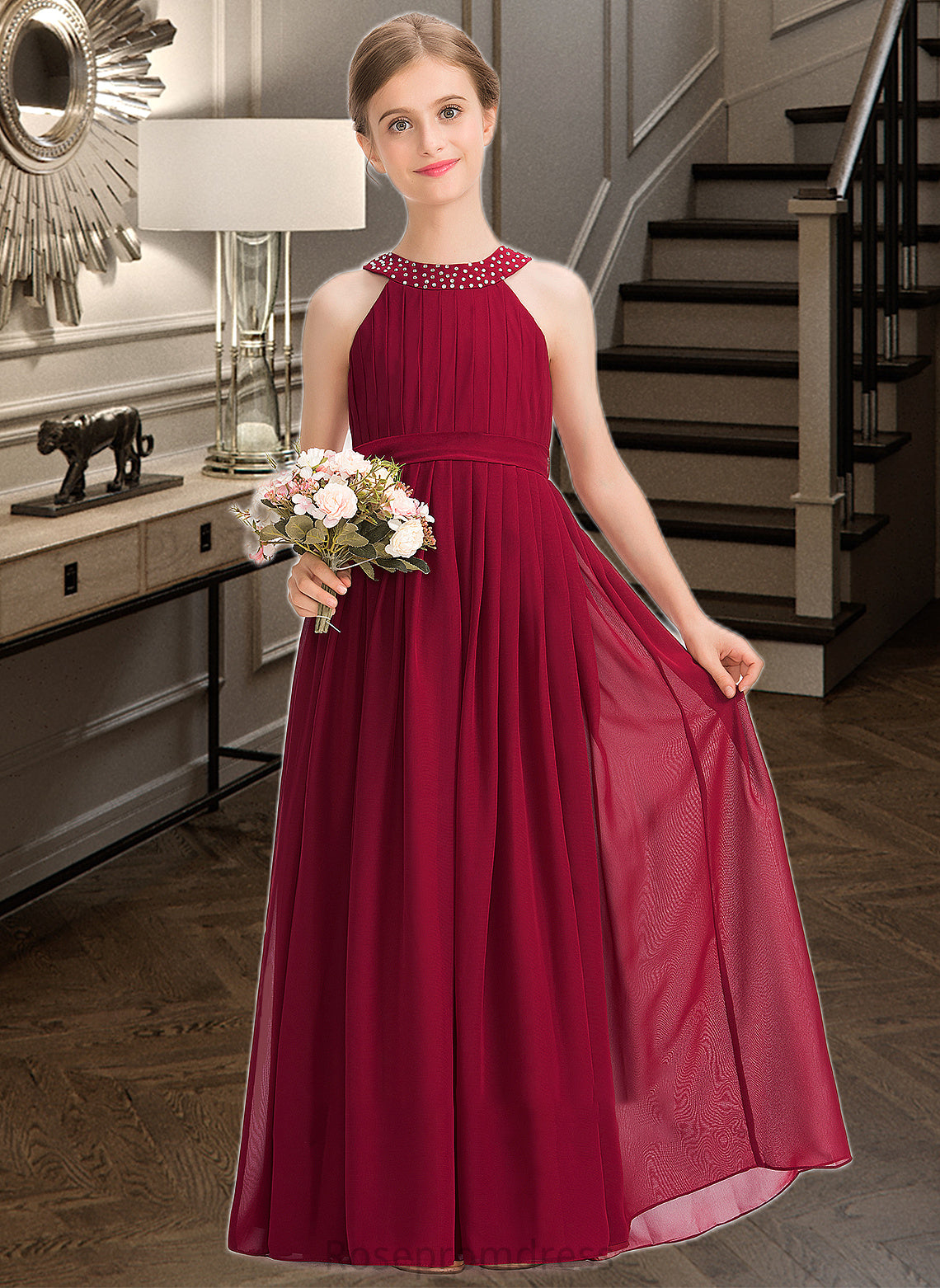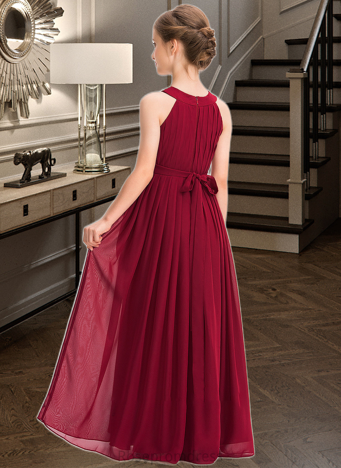 Kaya A-Line Scoop Neck Floor-Length Chiffon Junior Bridesmaid Dress With Ruffle Beading Bow(s) SRSP0013447
