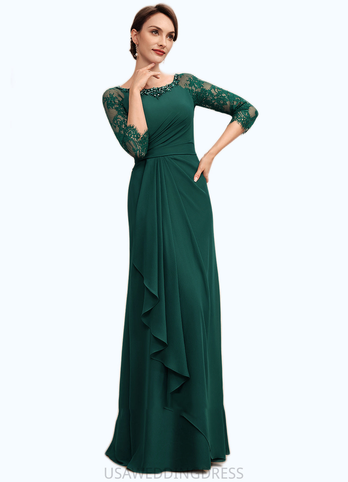 Kaylah A-Line Scoop Neck Floor-Length Chiffon Lace Mother of the Bride Dress With Beading Cascading Ruffles DS126P0014643