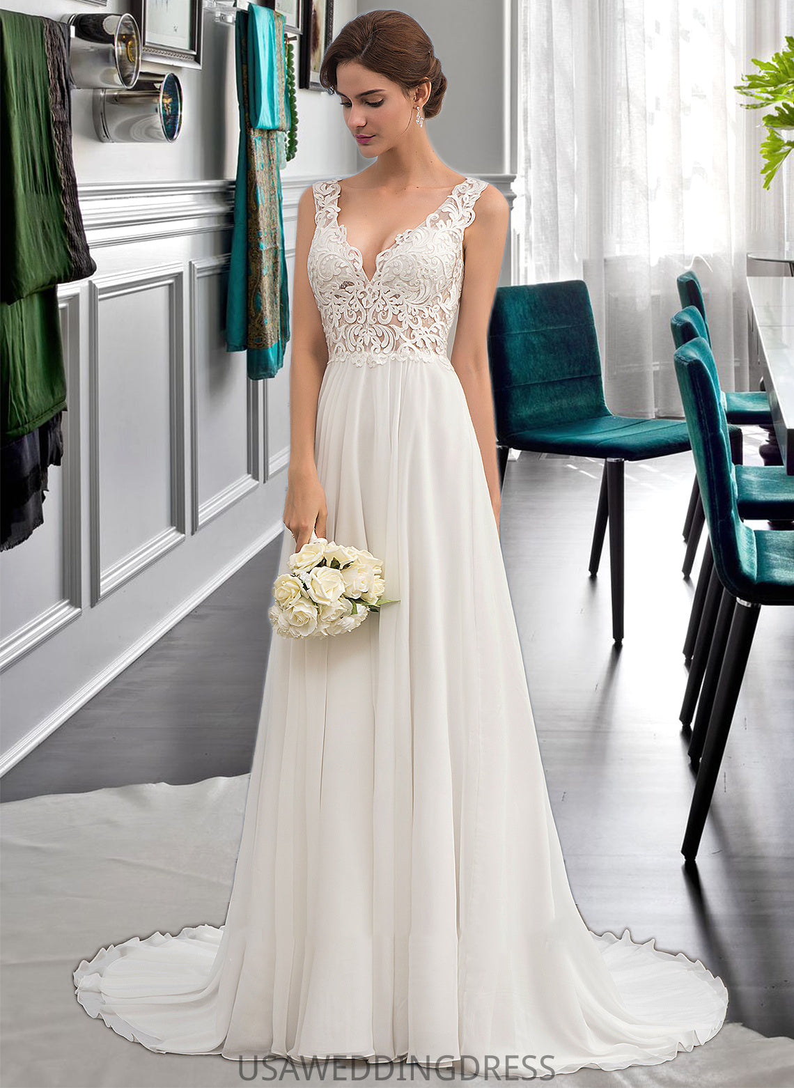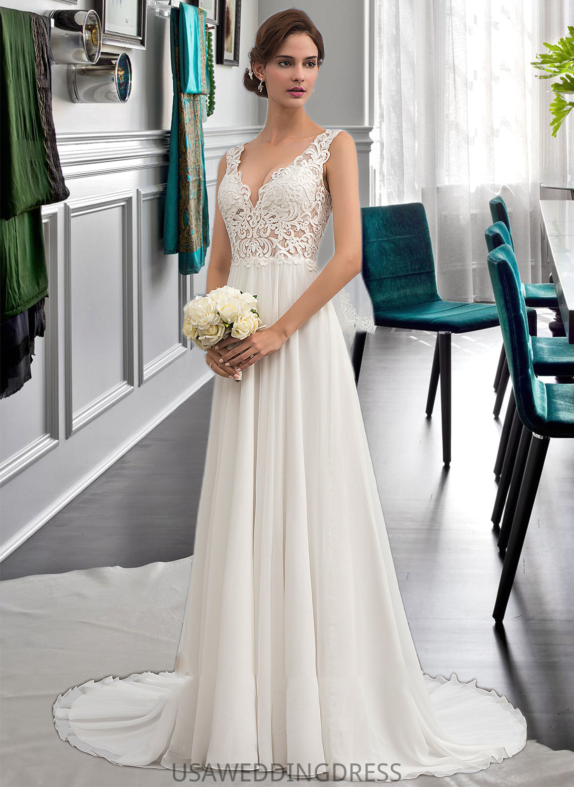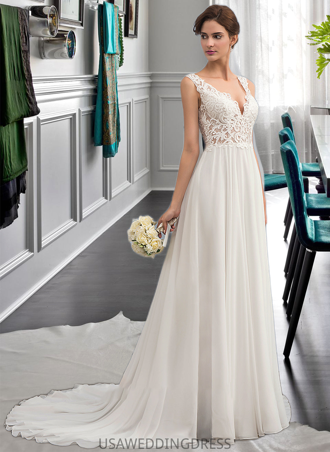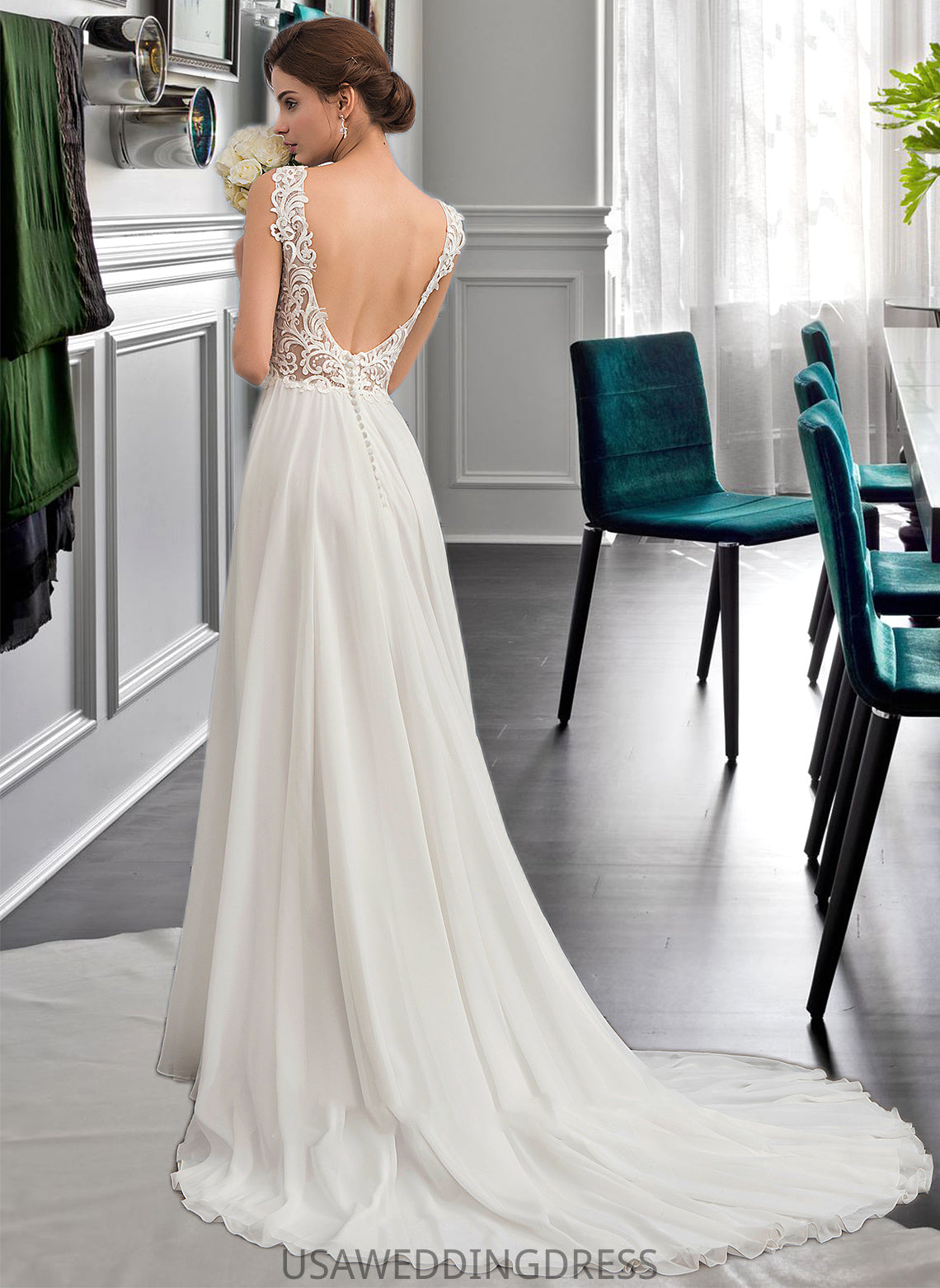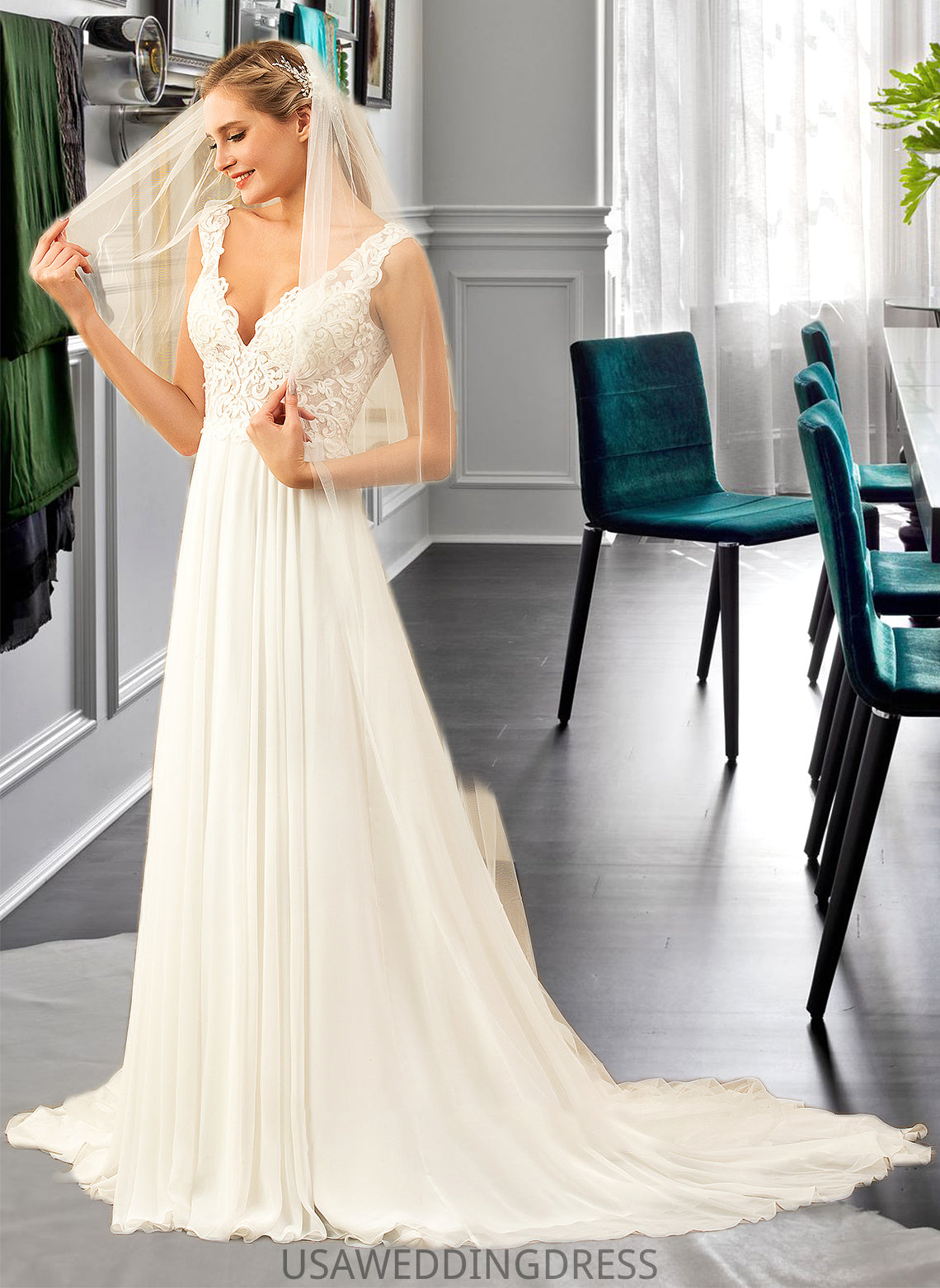 Kaylah A-Line V-neck Court Train Chiffon Wedding Dress DSP0013701