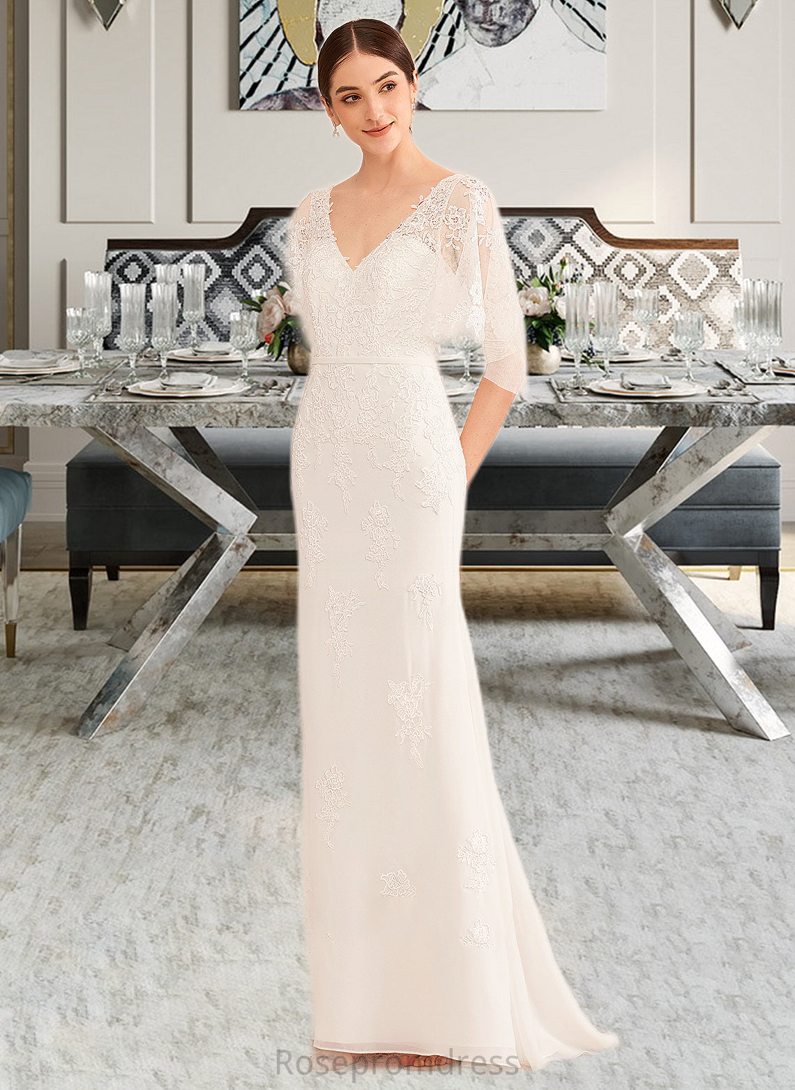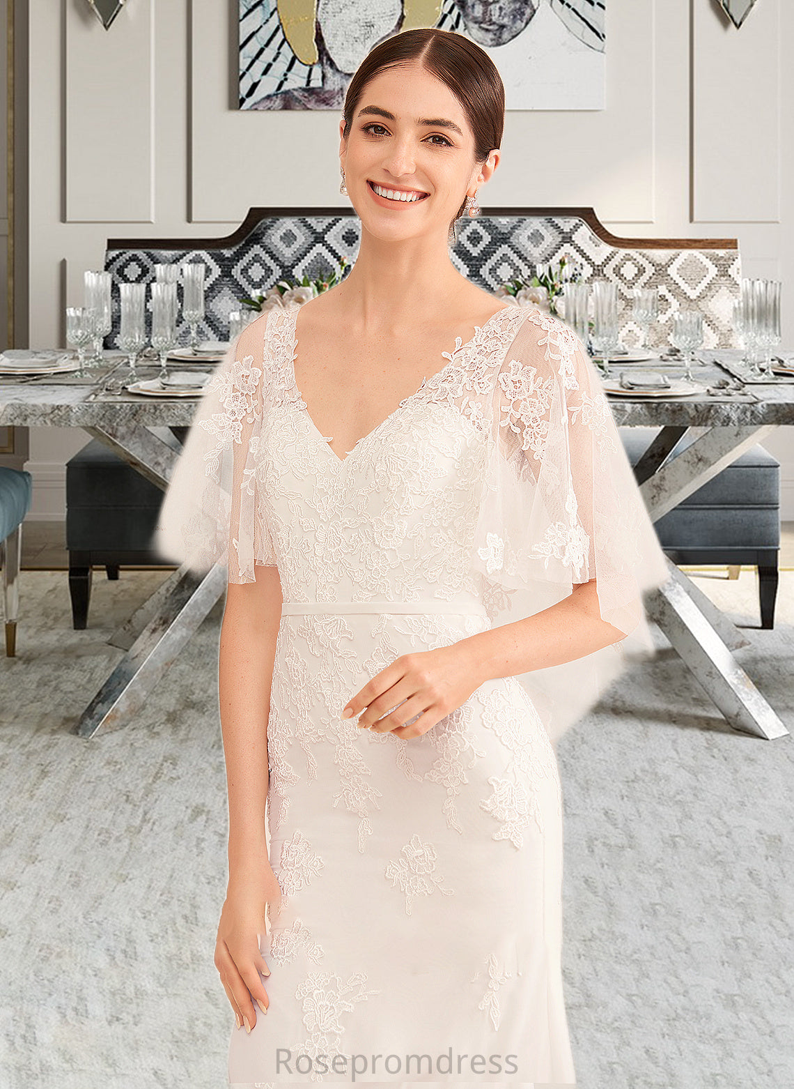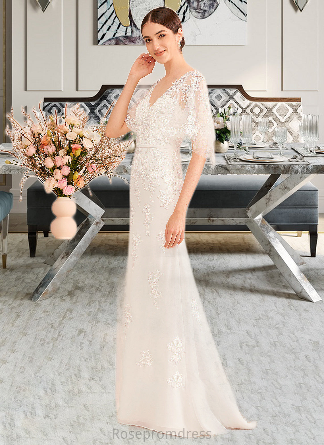 Keira Trumpet/Mermaid V-neck Court Train Wedding Dress With Sash SRSP0013744