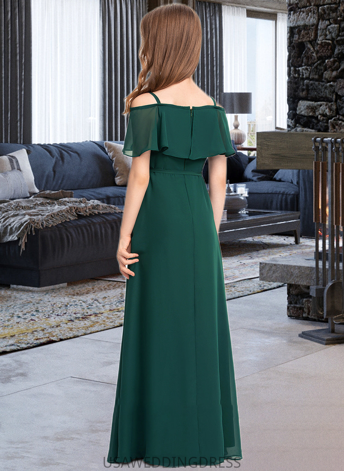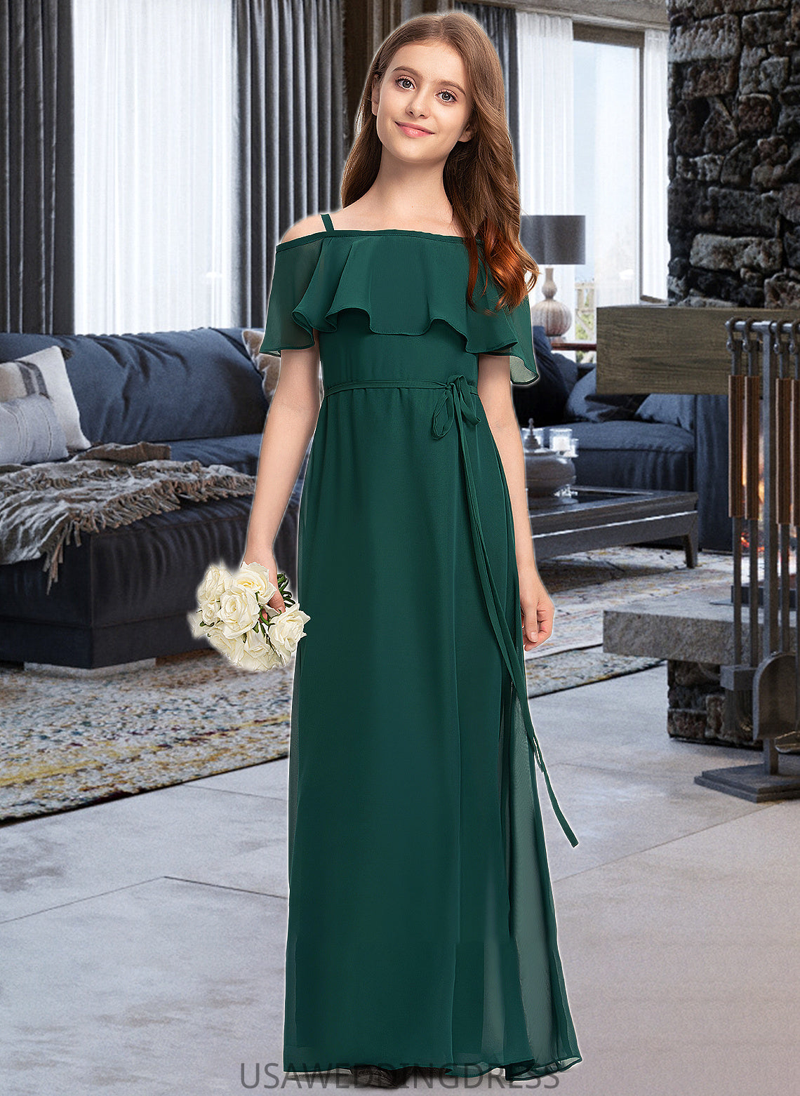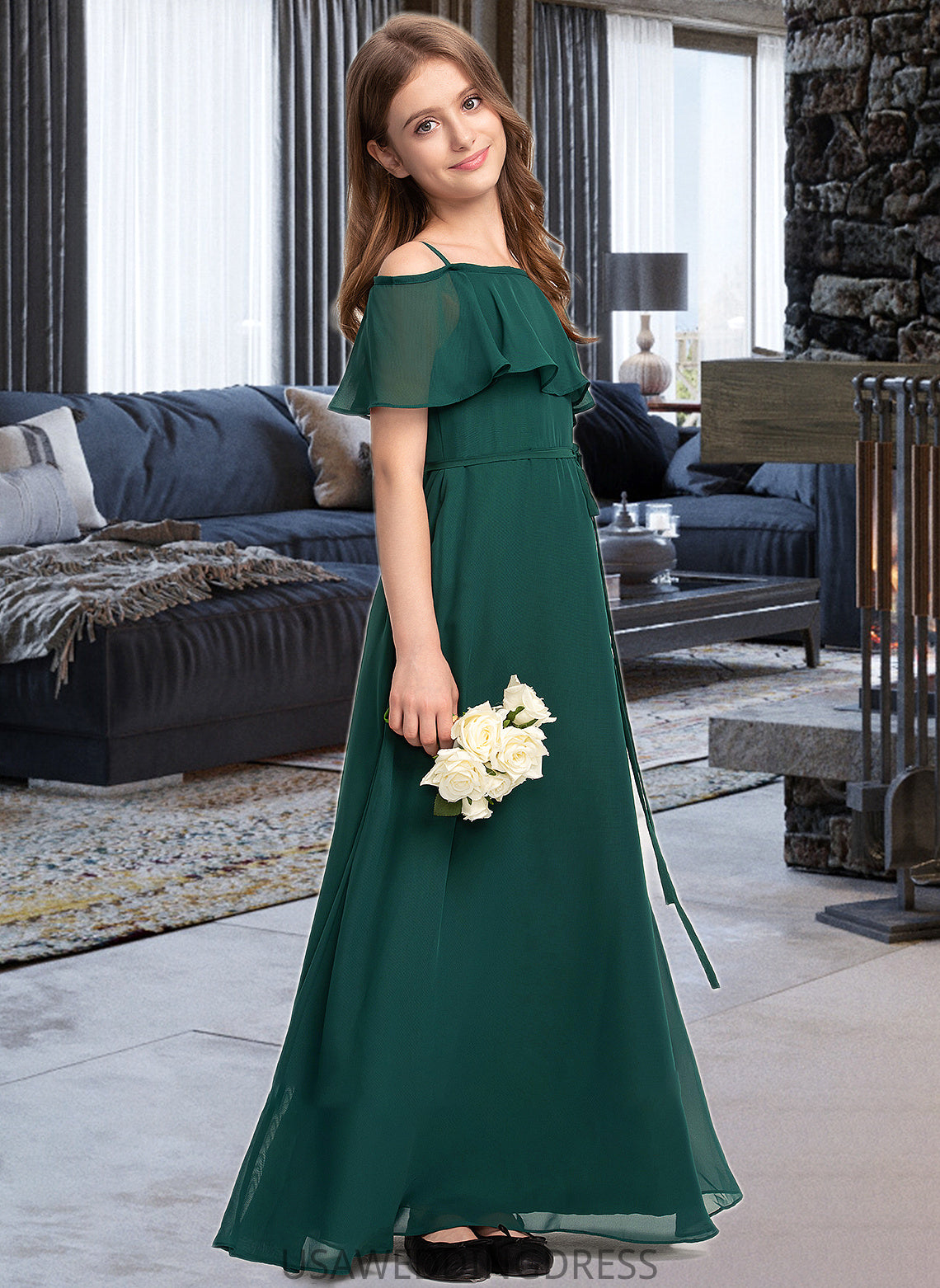 Kelsey A-Line Off-the-Shoulder Floor-Length Chiffon Junior Bridesmaid Dress With Bow(s) DSP0013359
