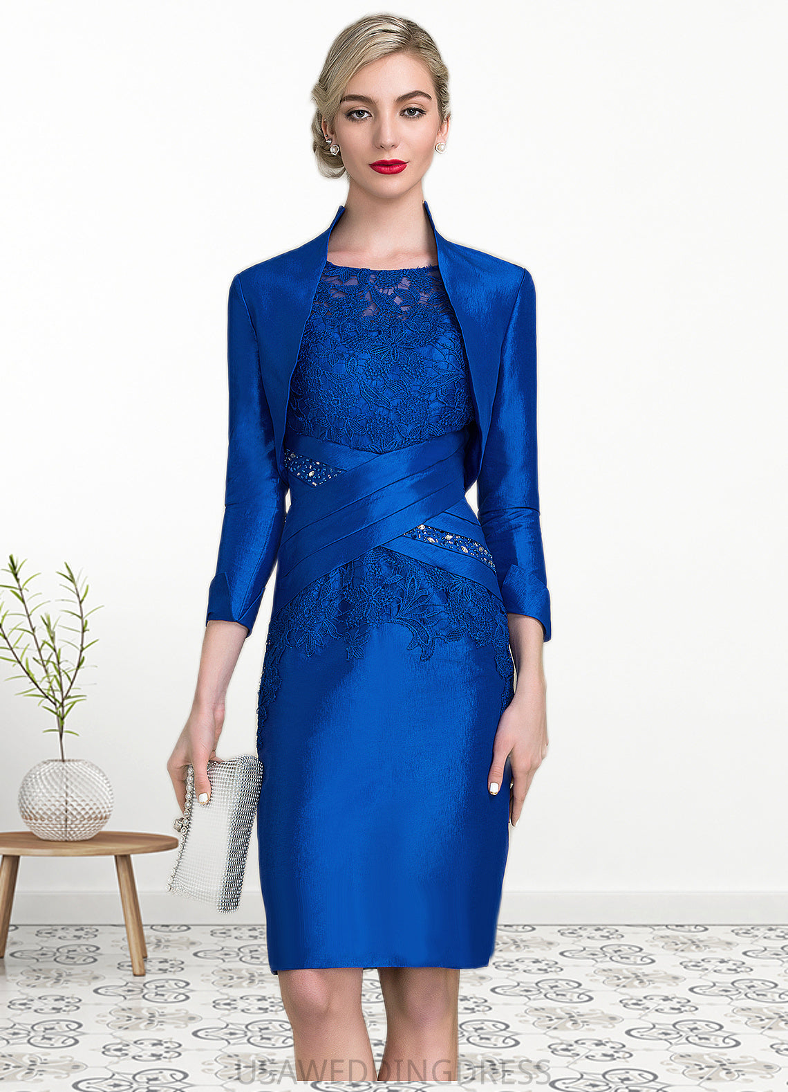 Kenley Sheath/Column Scoop Neck Knee-Length Taffeta Lace Mother of the Bride Dress With Ruffle Beading Sequins DS126P0014741