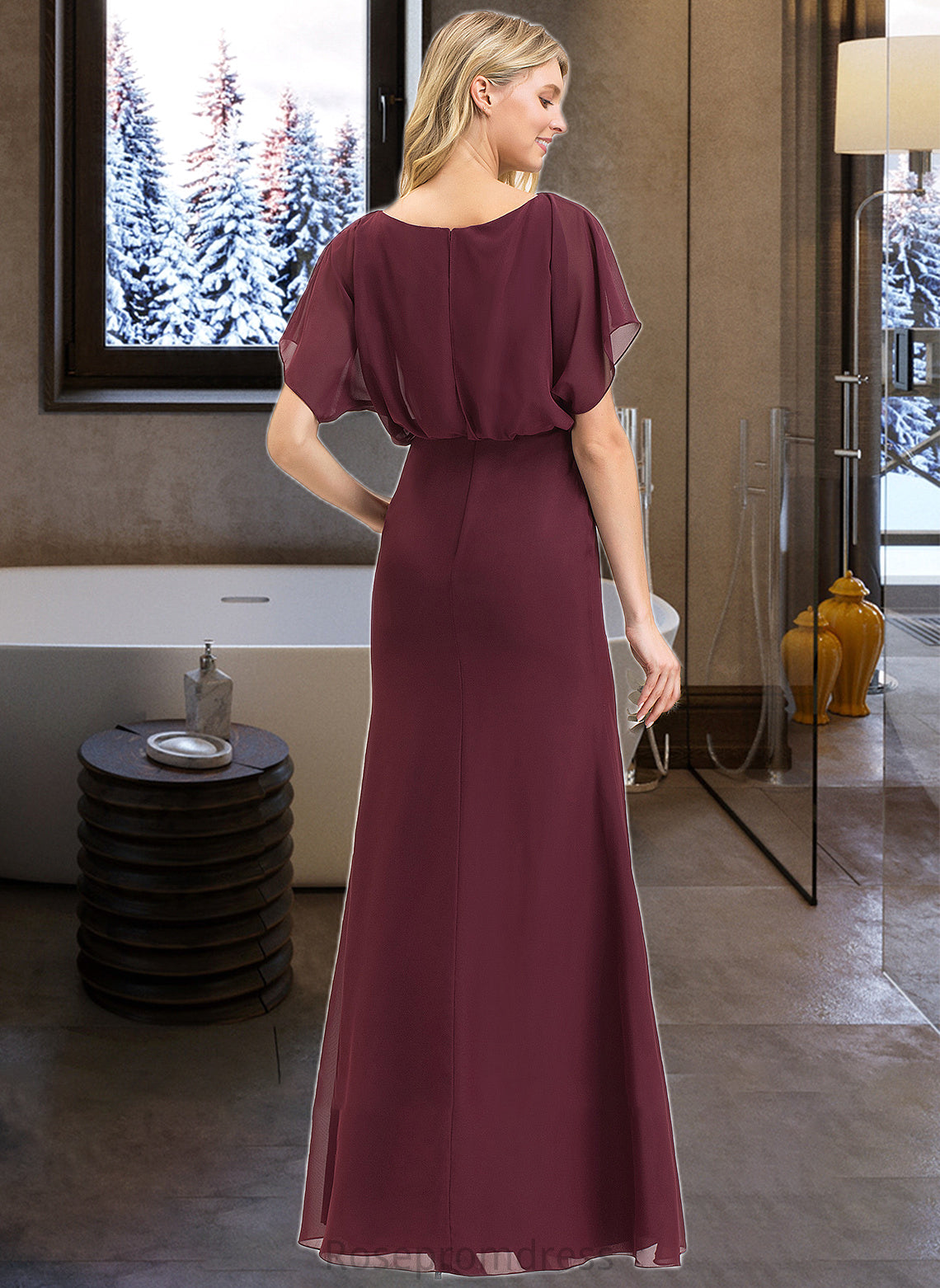Kennedi Sheath/Column Scoop Neck Floor-Length Chiffon Bridesmaid Dress With Ruffle Split Front SRSP0012972