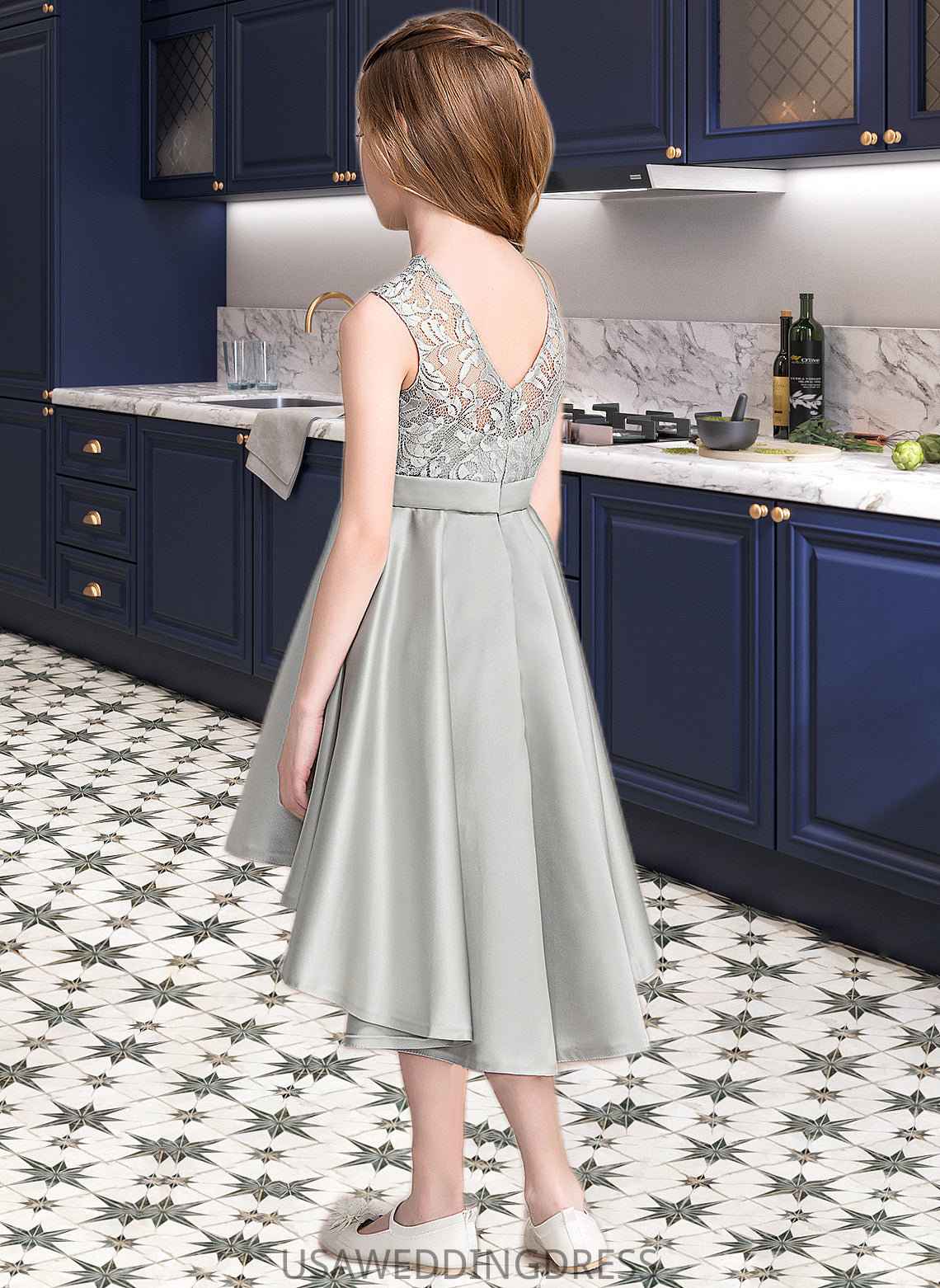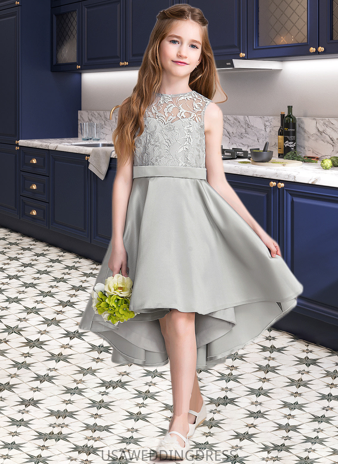 Kiley A-Line Scoop Neck Asymmetrical Satin Junior Bridesmaid Dress DSP0013618