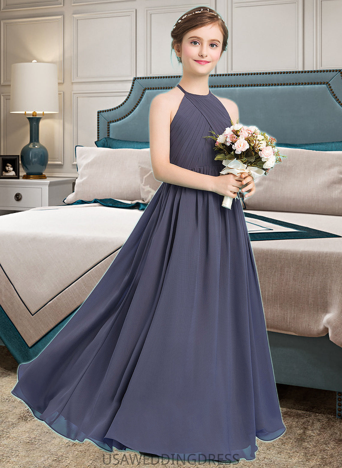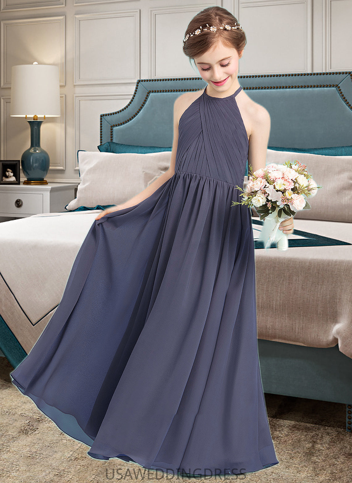 Kimora A-Line Scoop Neck Floor-Length Chiffon Junior Bridesmaid Dress With Ruffle DSP0013516