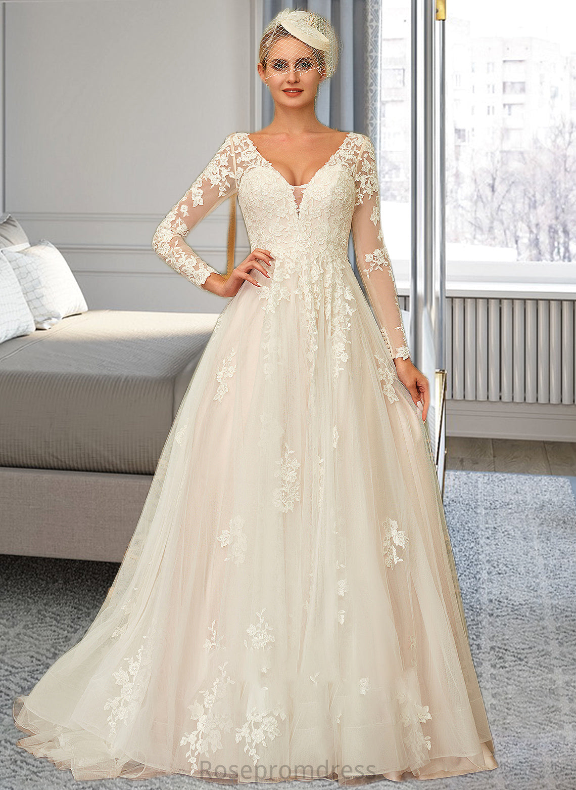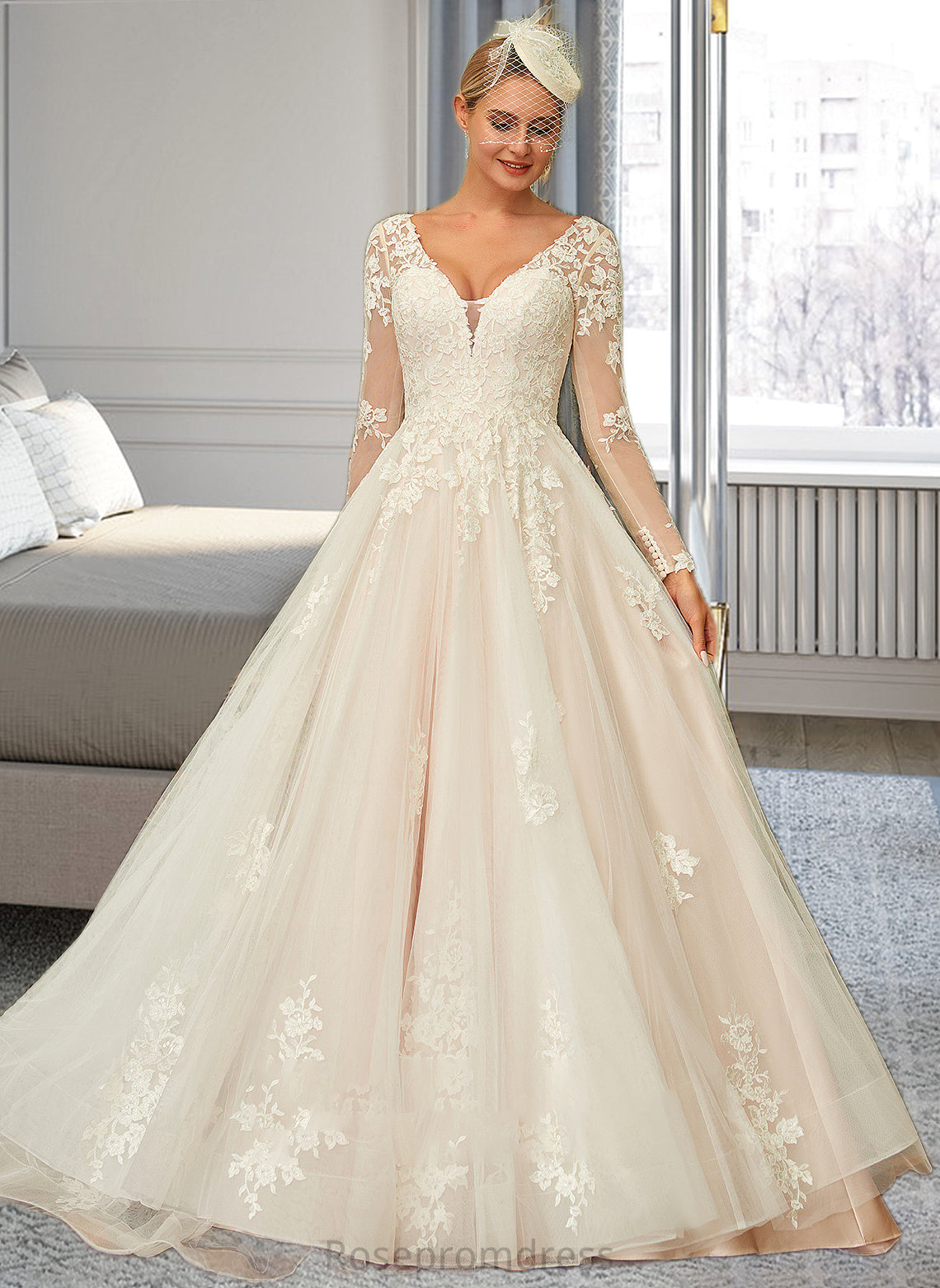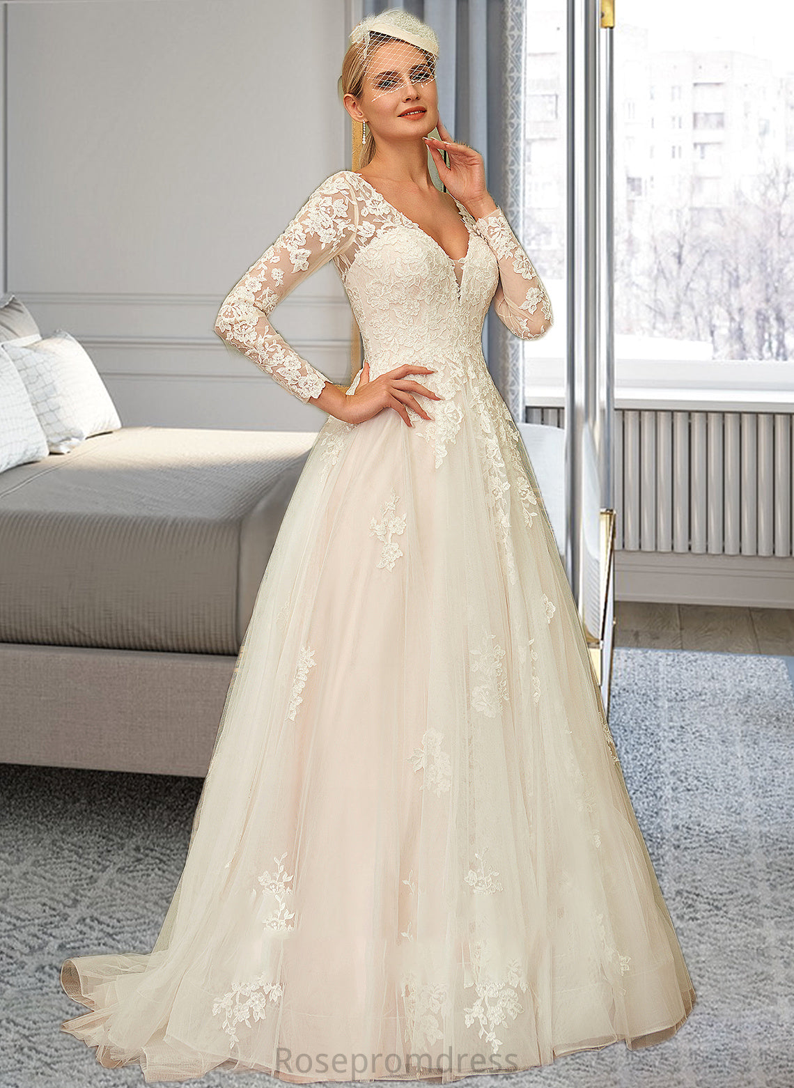 Kimora Ball-Gown/Princess V-neck Sweep Train Tulle Lace Wedding Dress SRSP0013698