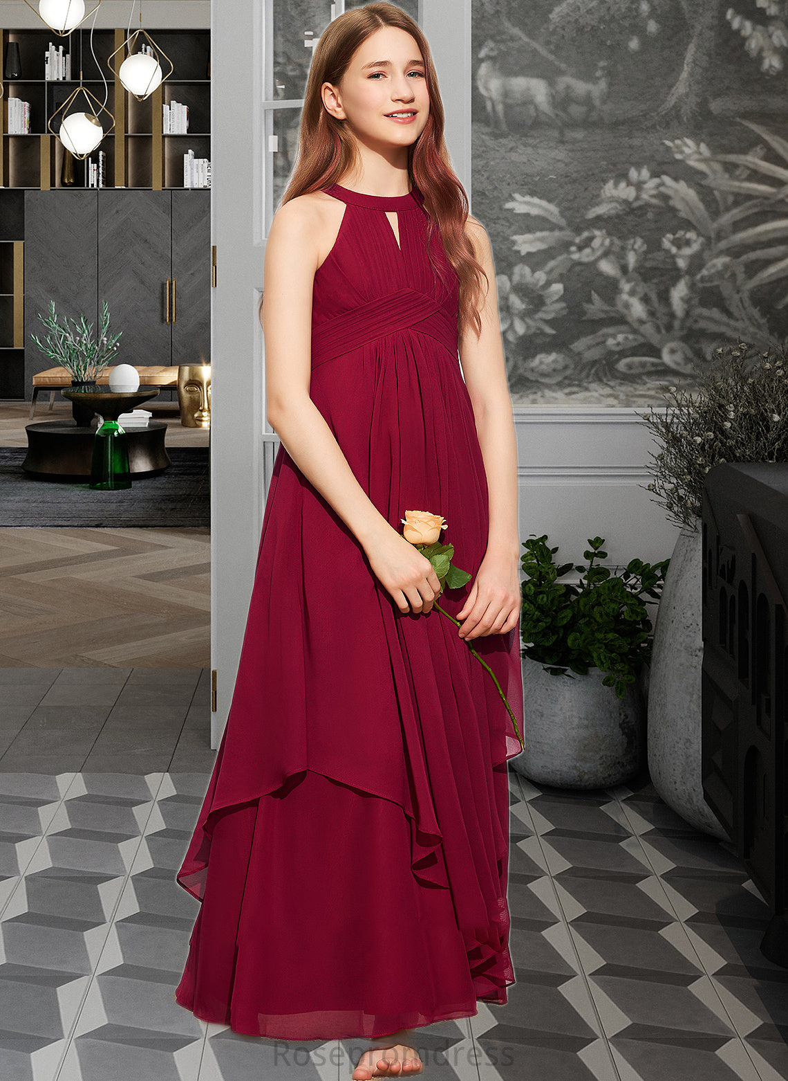 Kinley A-Line Scoop Neck Floor-Length Chiffon Junior Bridesmaid Dress With Ruffle SRSP0013654