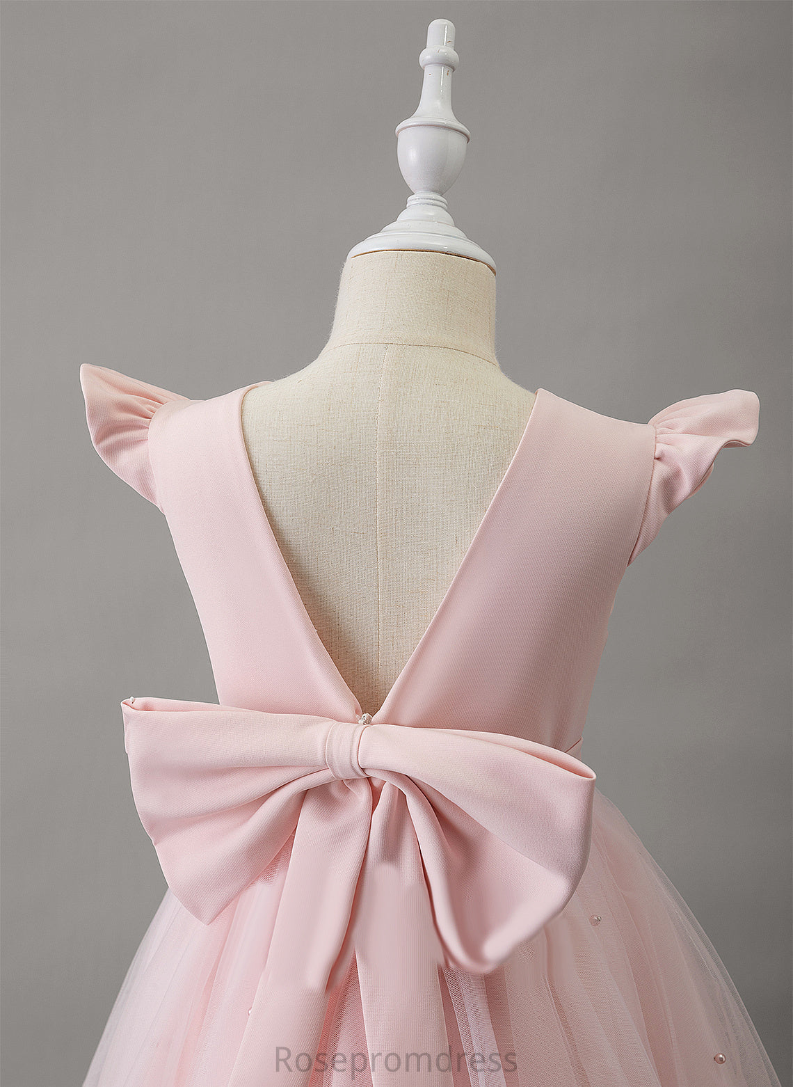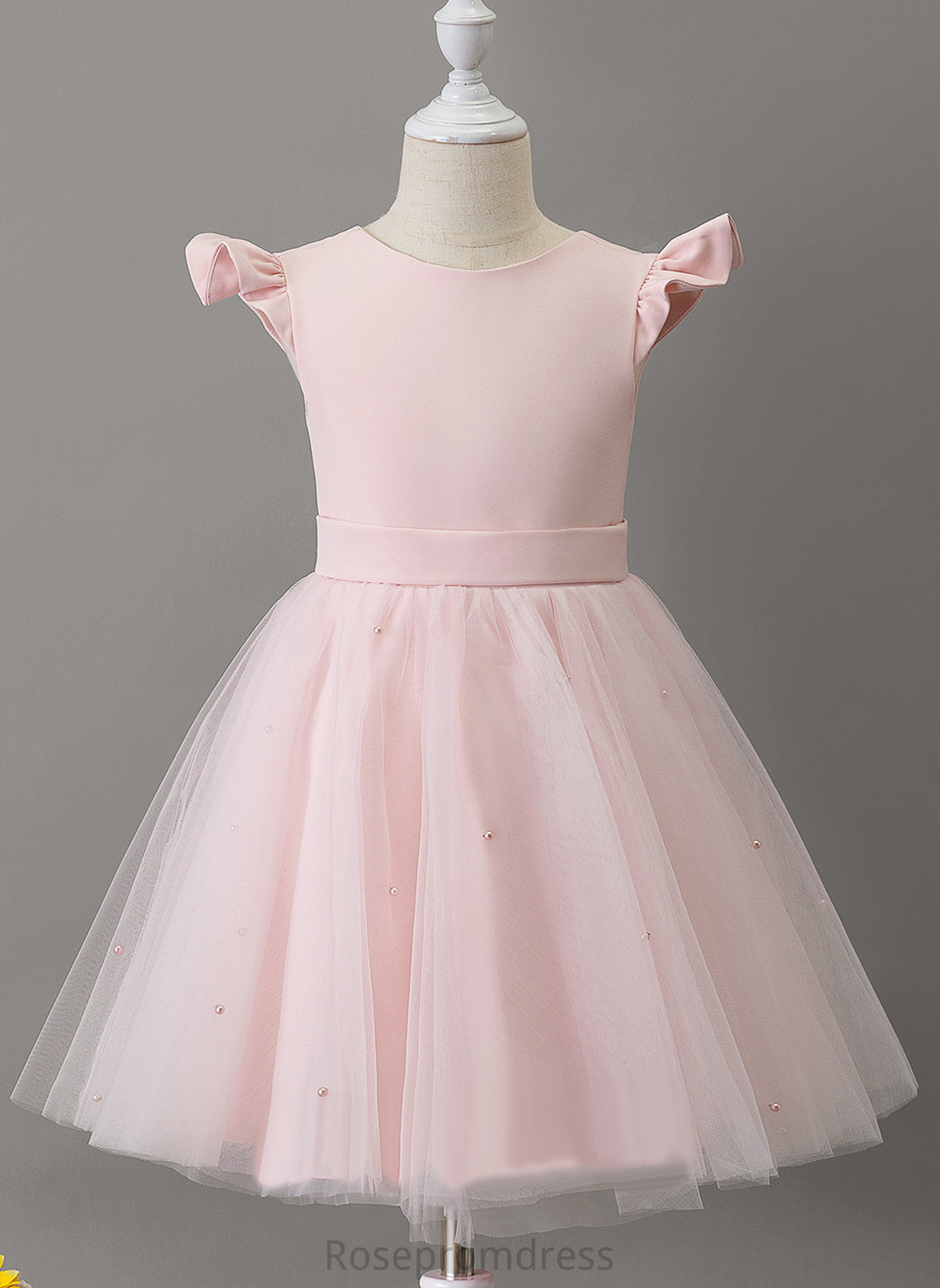 - Knee-length A-Line Ruffles/Beading/Bow(s) Neck Scoop Flower Dress Girl Flower Girl Dresses Tulle Sleeveless Juliet With