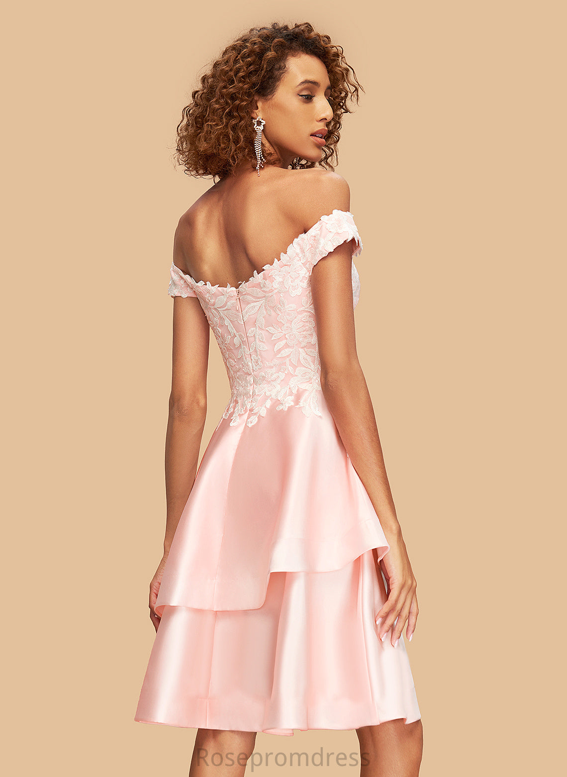 Knee-Length Janiah Homecoming Off-the-Shoulder Homecoming Dresses Sequins Dress With Lace Satin A-Line