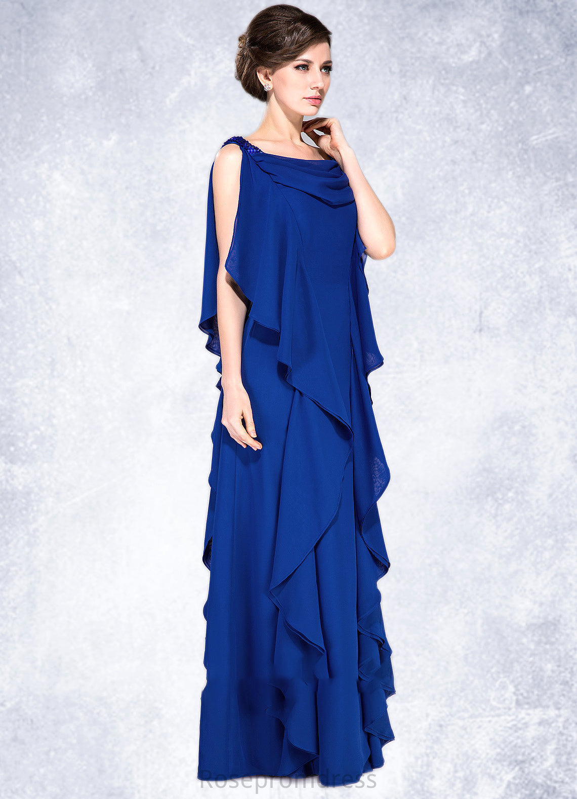 Kristina A-Line Cowl Neck Floor-Length Chiffon Mother of the Bride Dress With Beading Sequins Cascading Ruffles SRS126P0014907