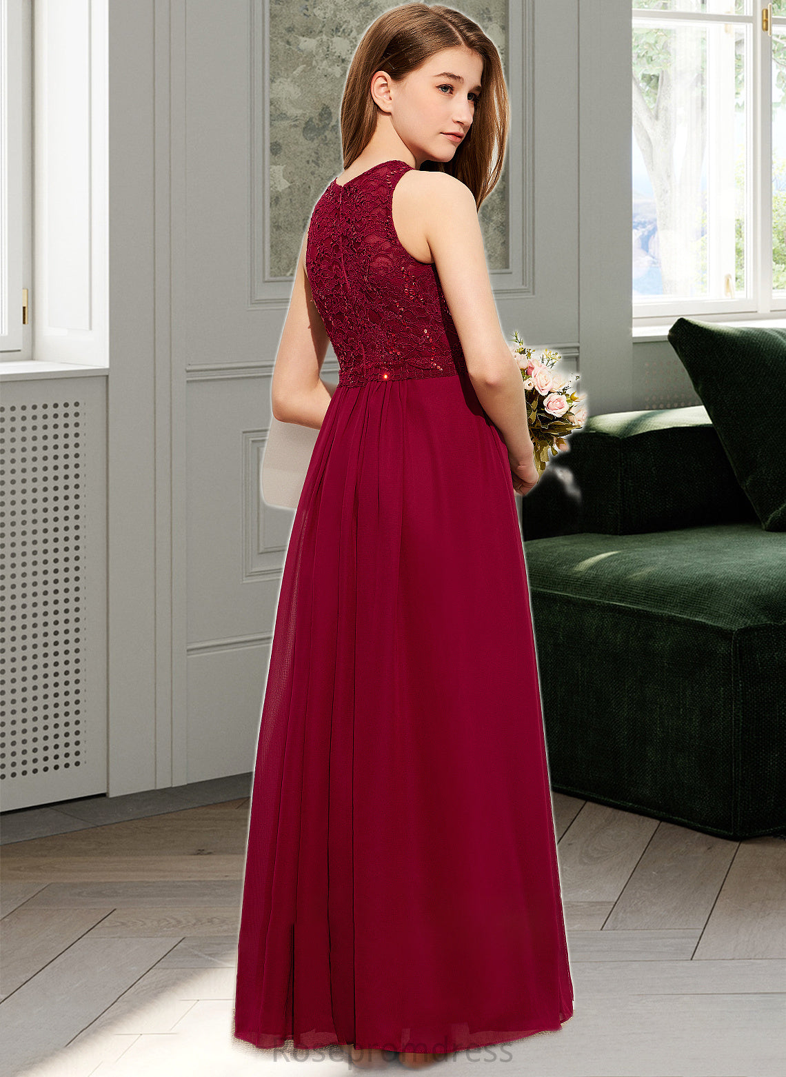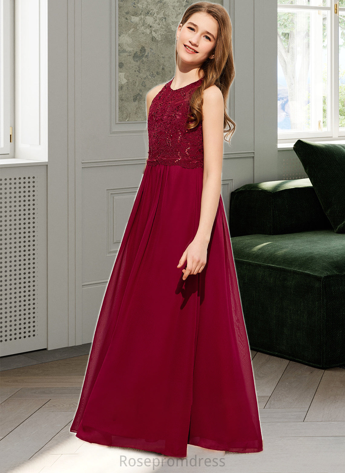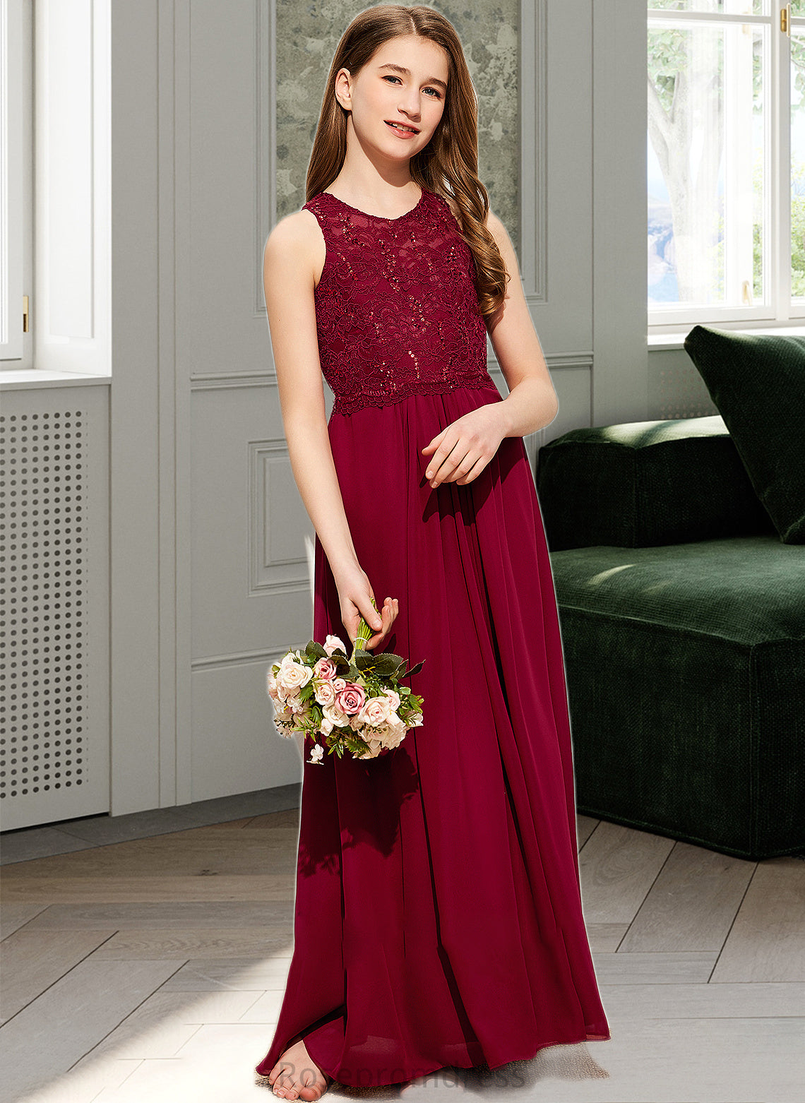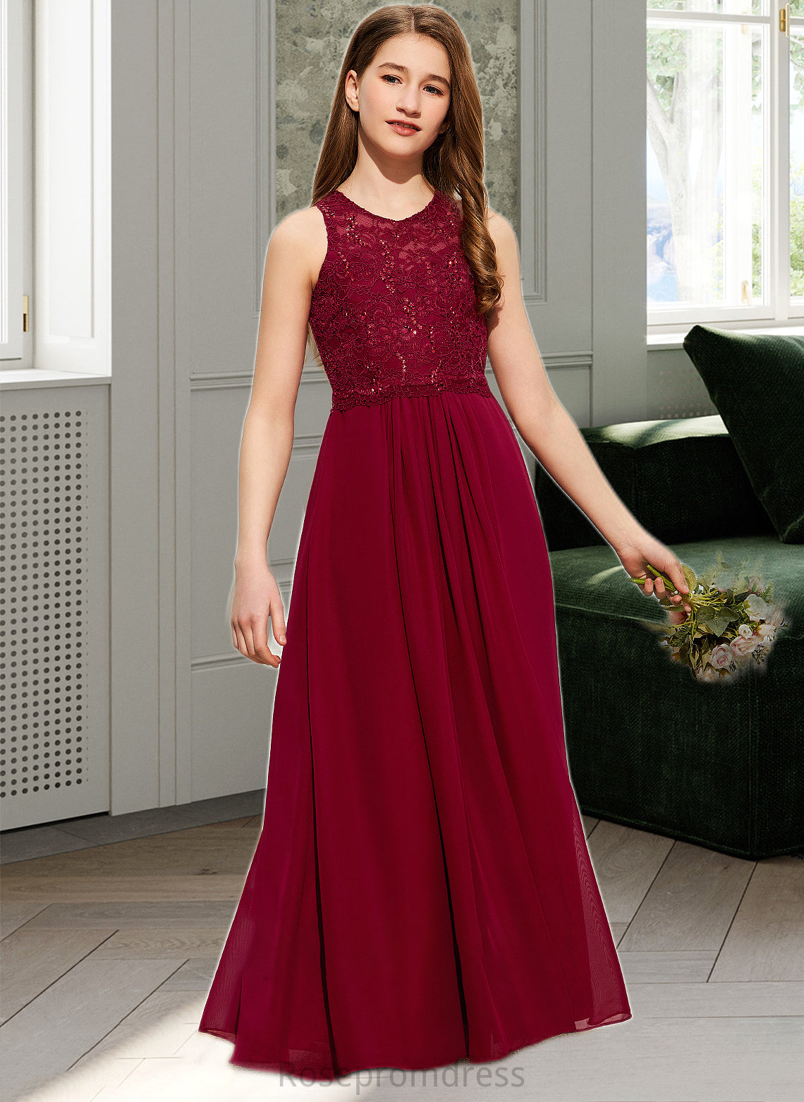 Kristina A-Line Scoop Neck Floor-Length Chiffon Lace Junior Bridesmaid Dress With Sequins SRSP0013525