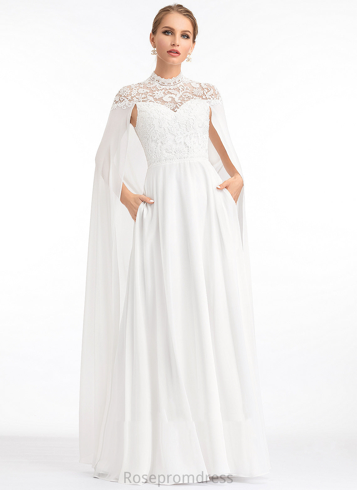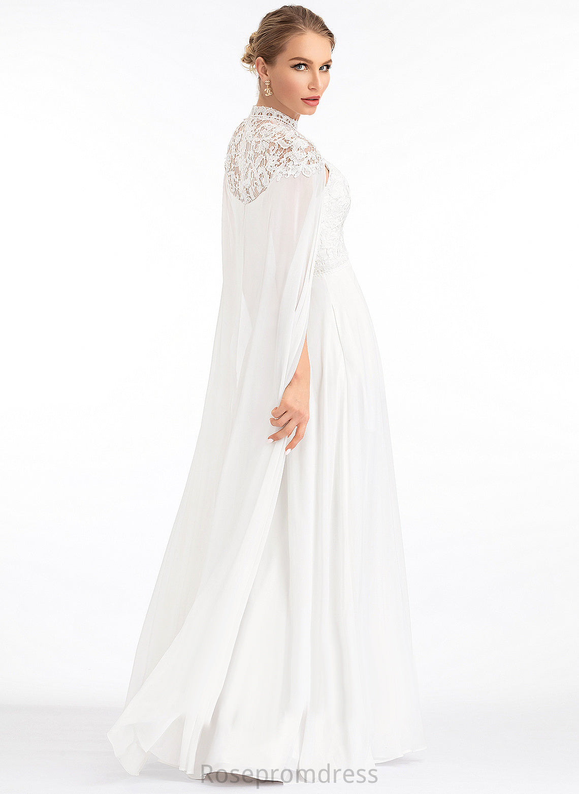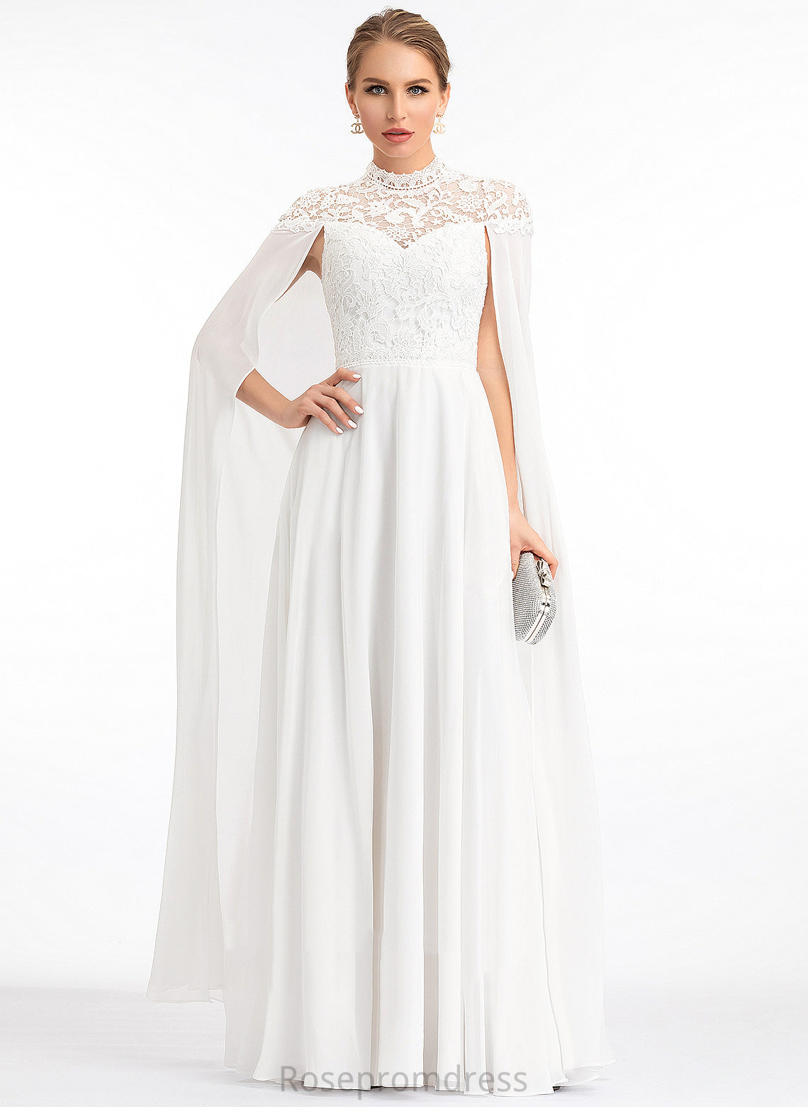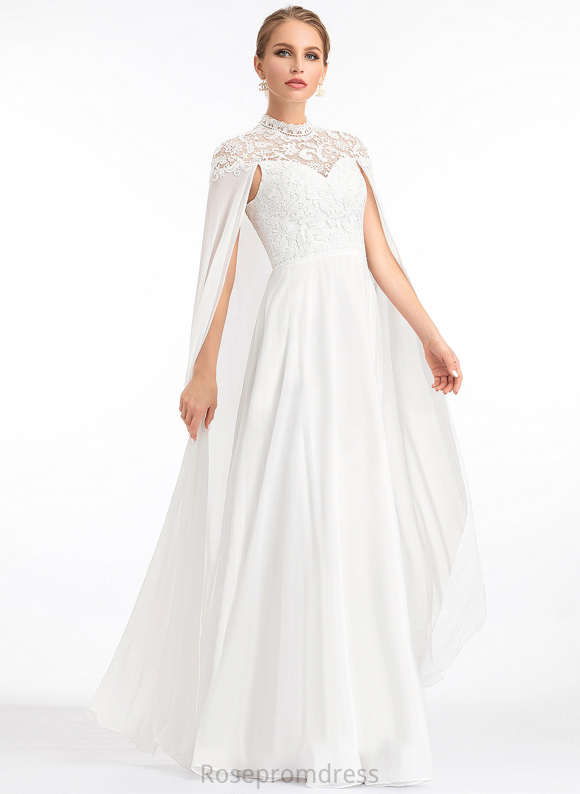 Lace Chiffon Floor-Length Neck Kaiya High Wedding Dresses A-Line Wedding Dress
