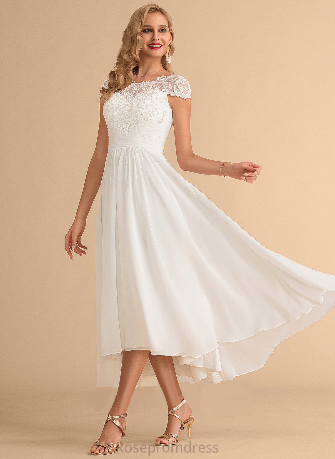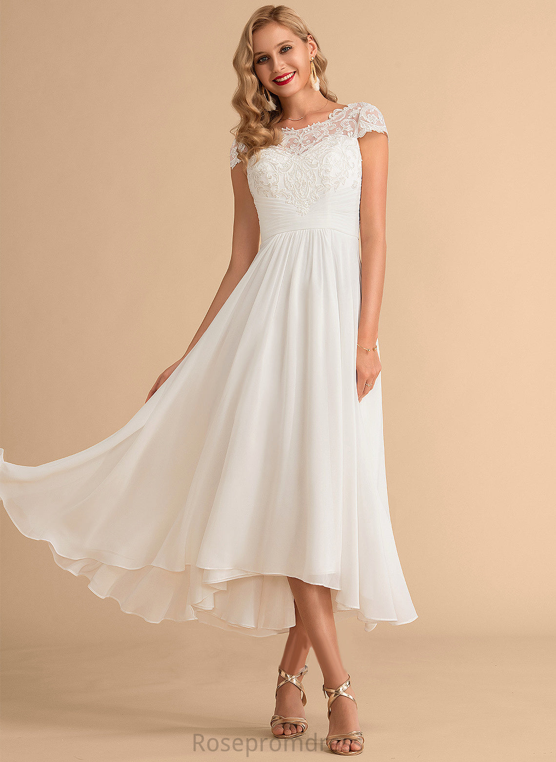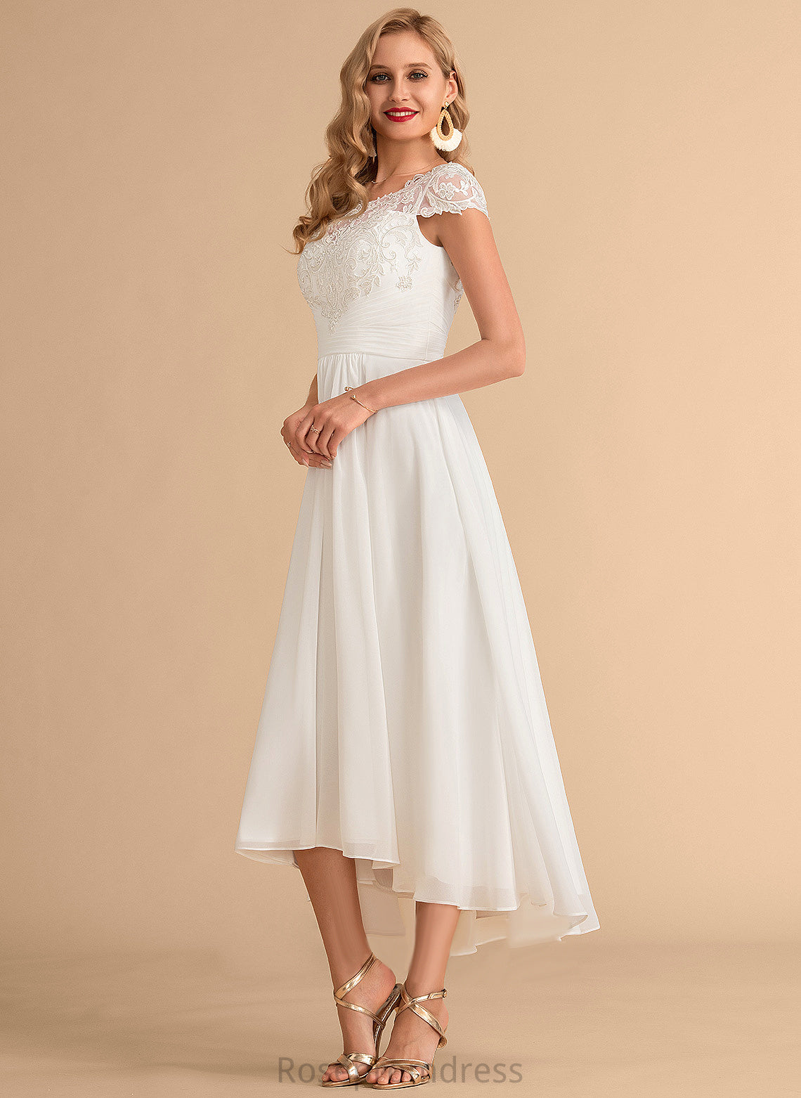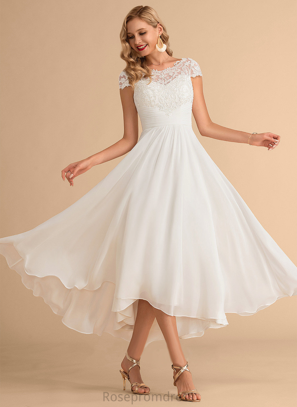 Lace Chiffon Wedding Neck Dress Wedding Dresses Scoop Asymmetrical Miya A-Line
