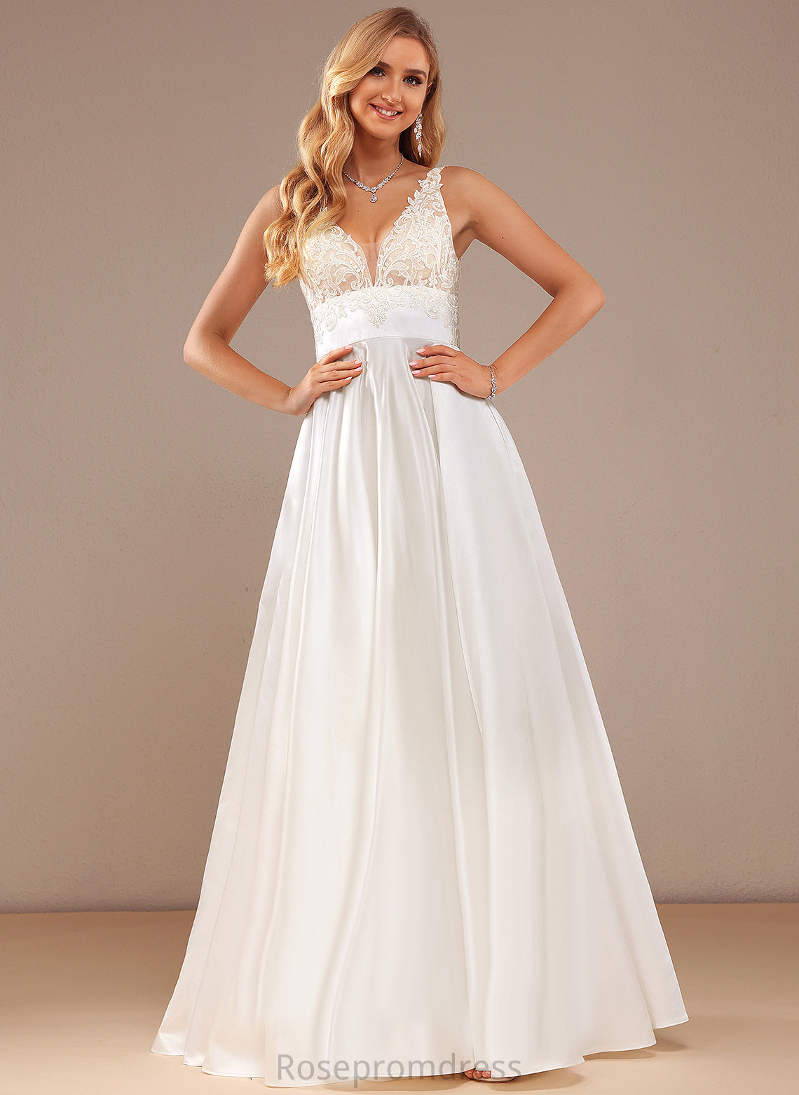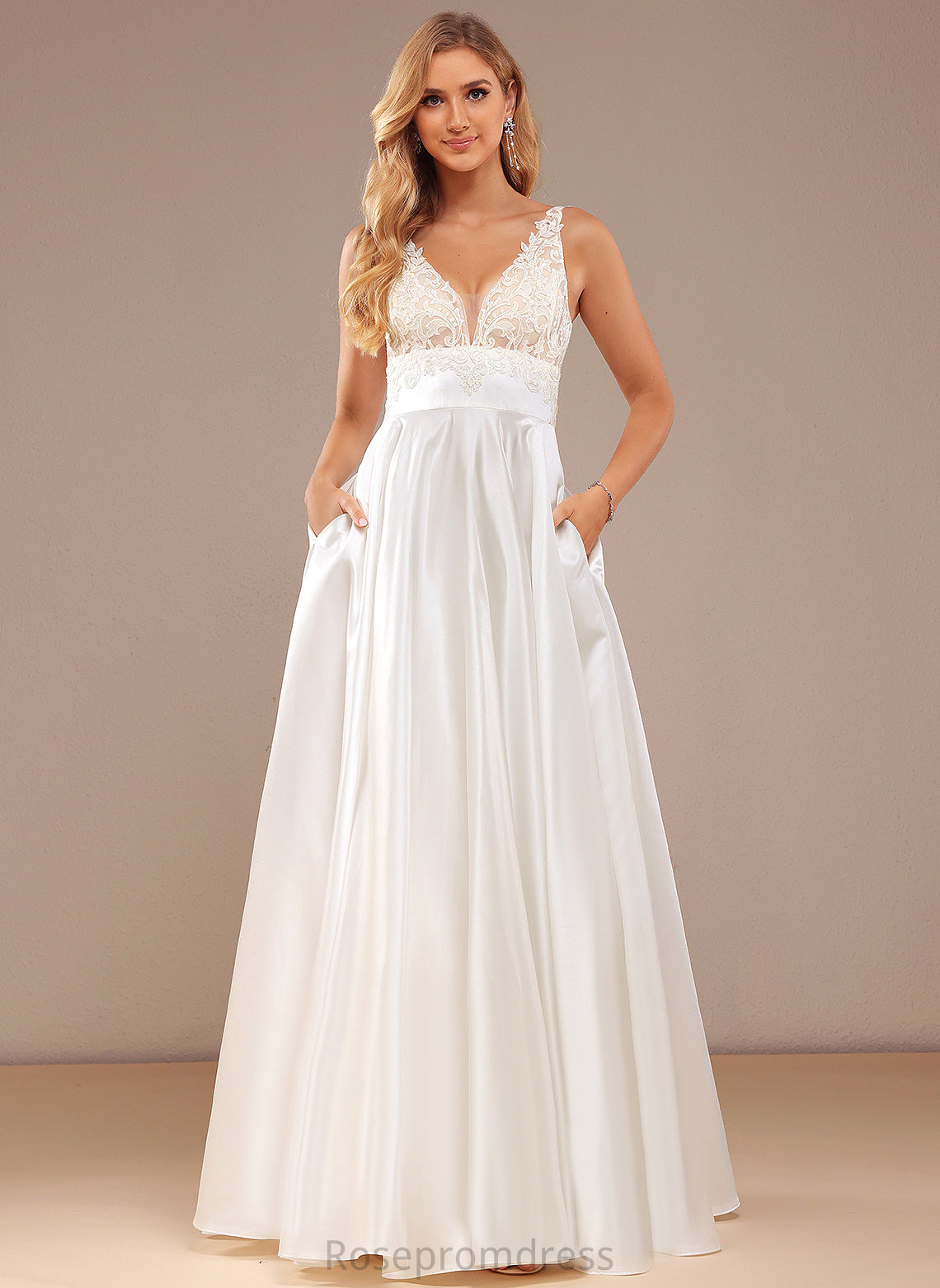 Lace Guadalupe With Wedding Pockets Lace Dress Wedding Dresses Satin Ball-Gown/Princess Floor-Length V-neck