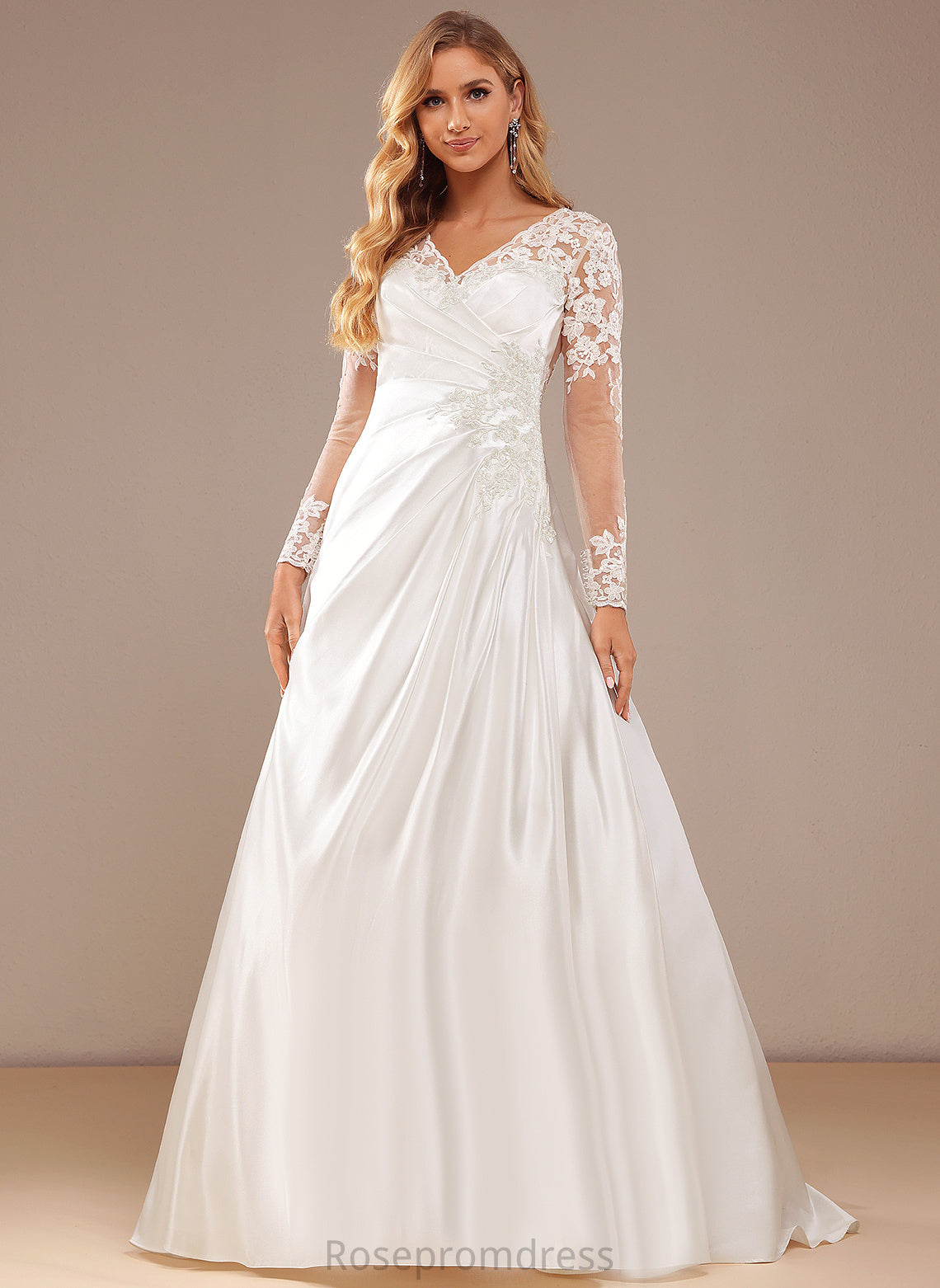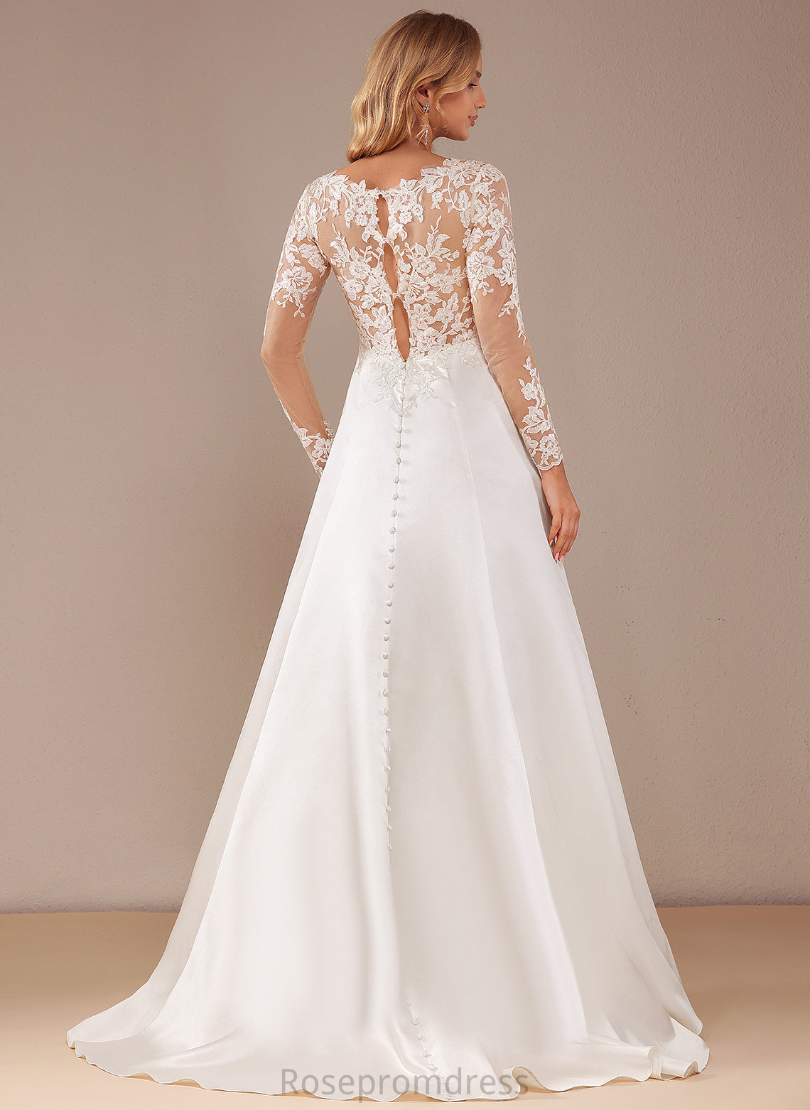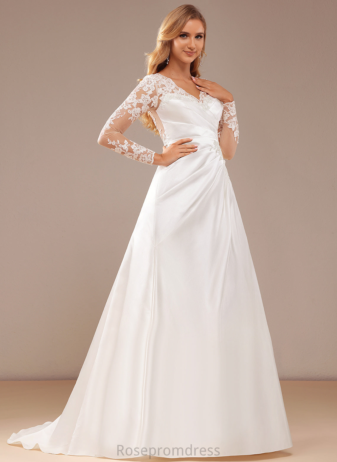 Lace Renata Satin Train A-Line Wedding Dresses Sequins Wedding Lace Court Dress V-neck With