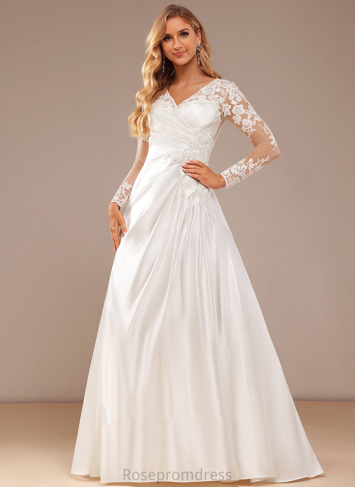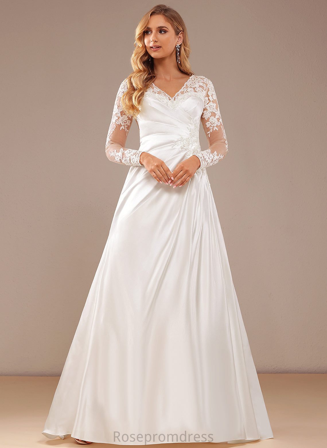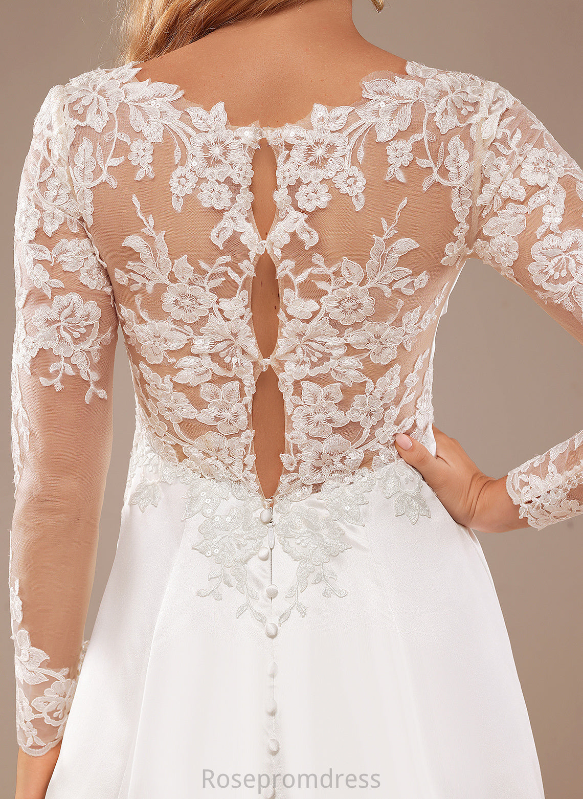 Lace Renata Satin Train A-Line Wedding Dresses Sequins Wedding Lace Court Dress V-neck With