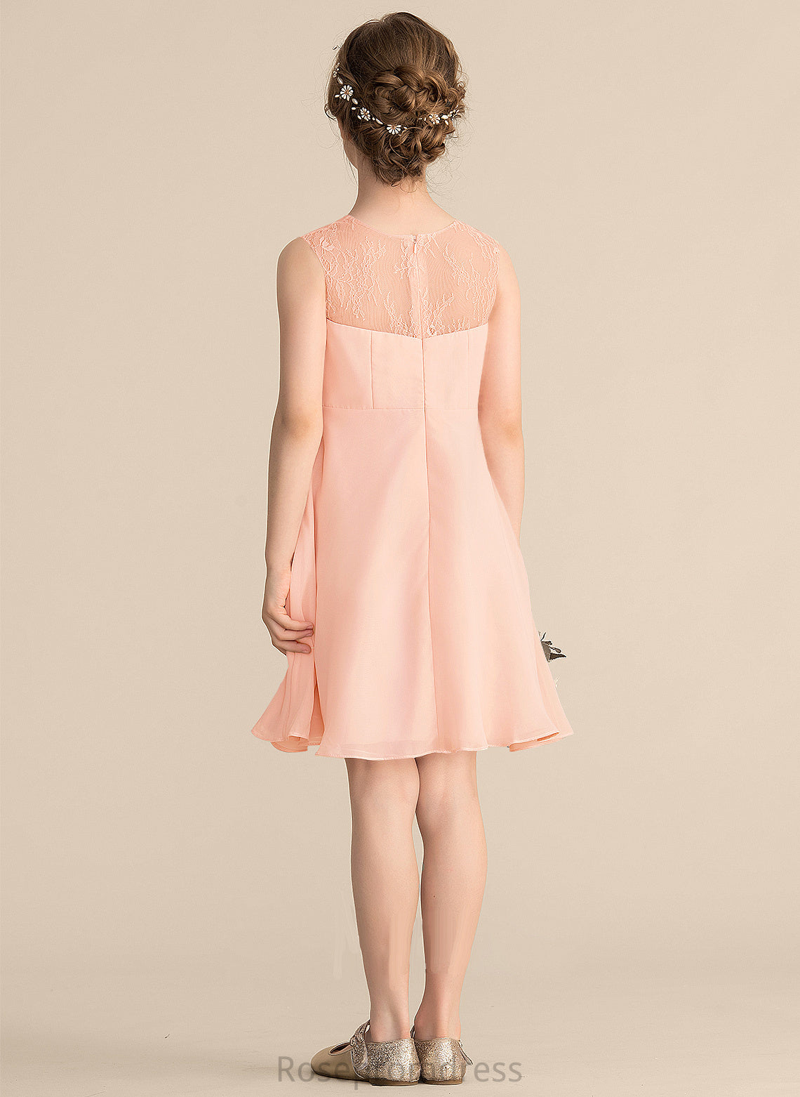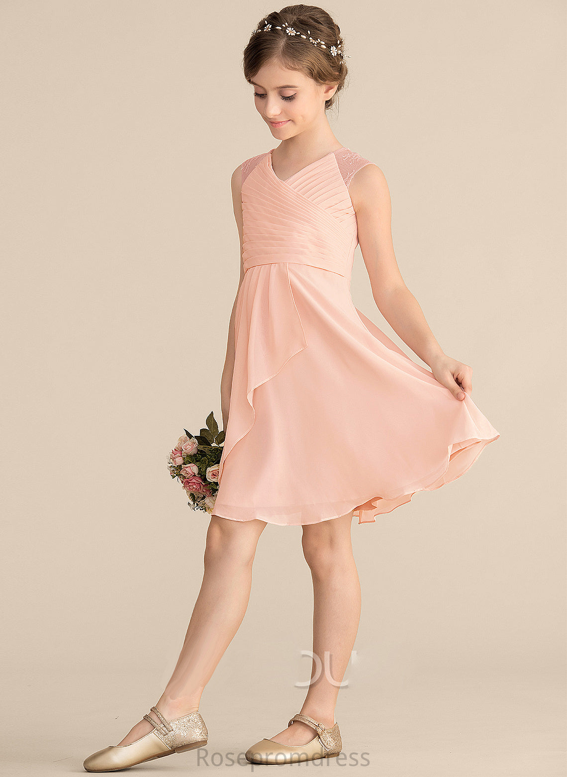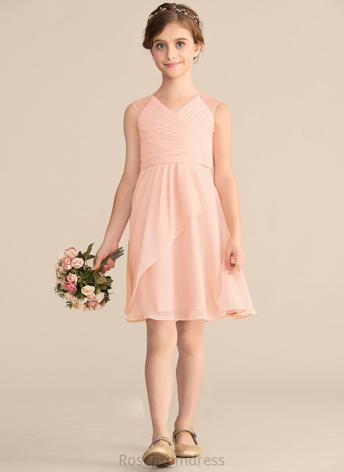 Lace Ruffles A-Line With Knee-Length V-neck Claudia Junior Bridesmaid Dresses Chiffon Cascading
