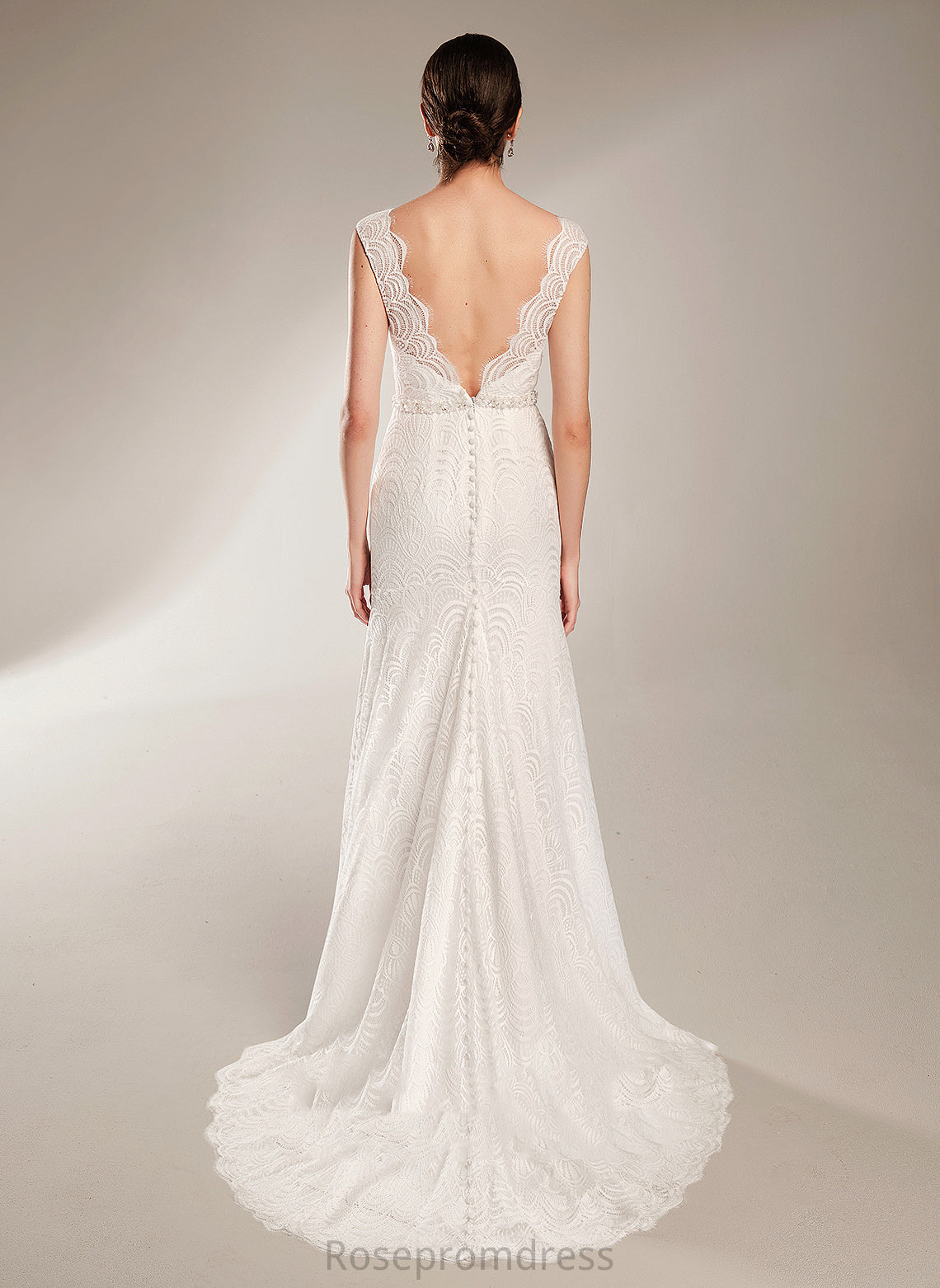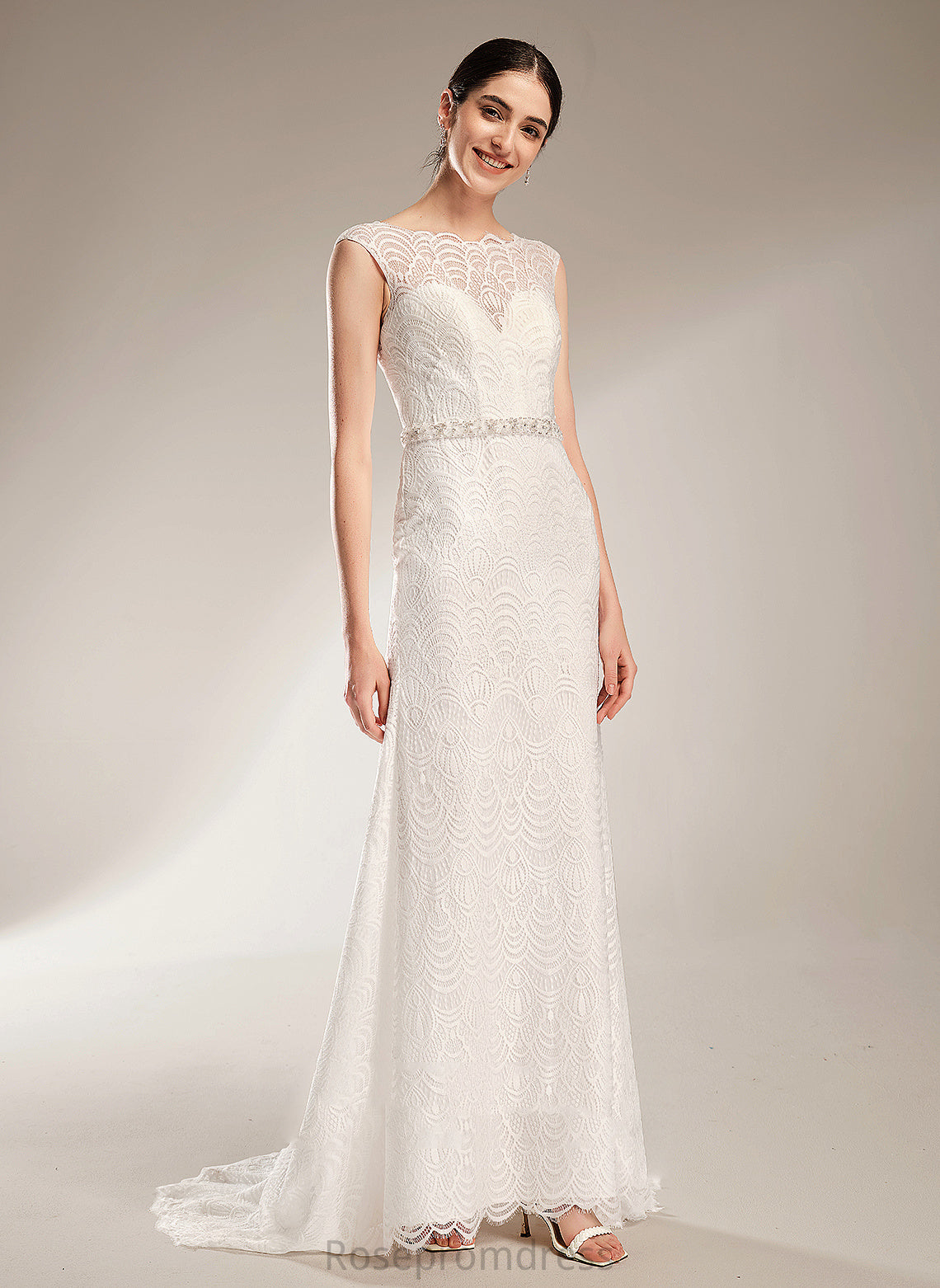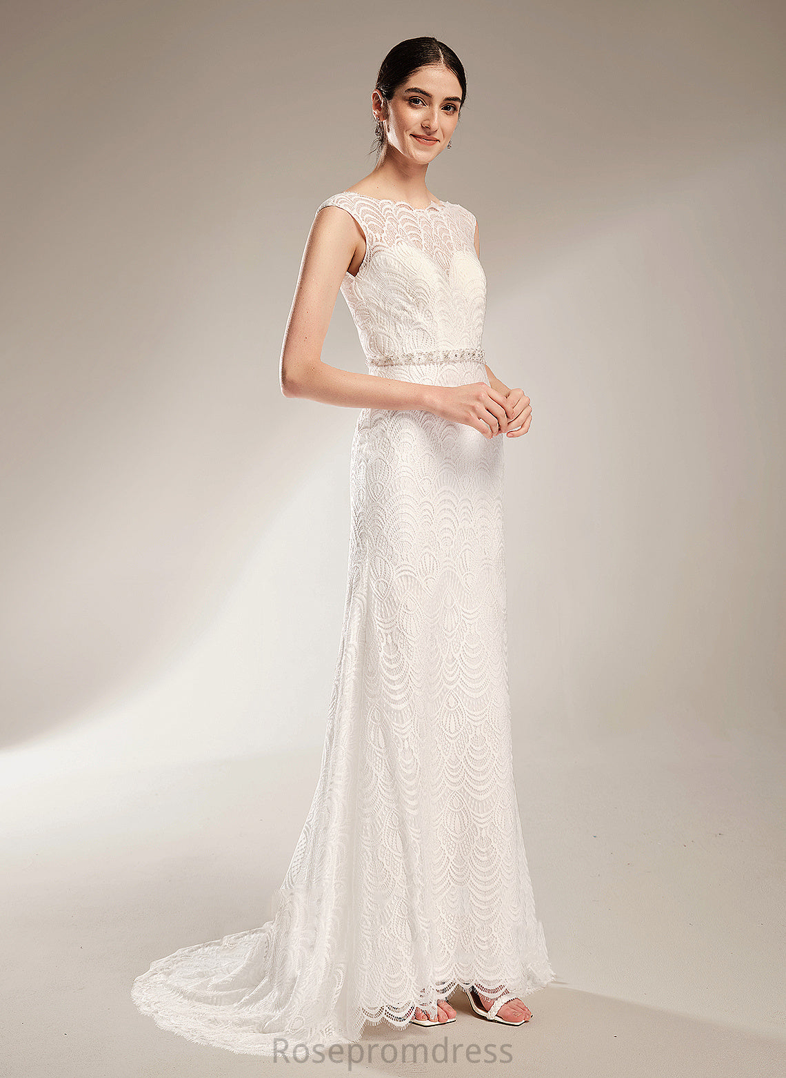 Lace Sequins With Giselle Wedding Train Beading Wedding Dresses Neck Court Scoop Sheath/Column Dress