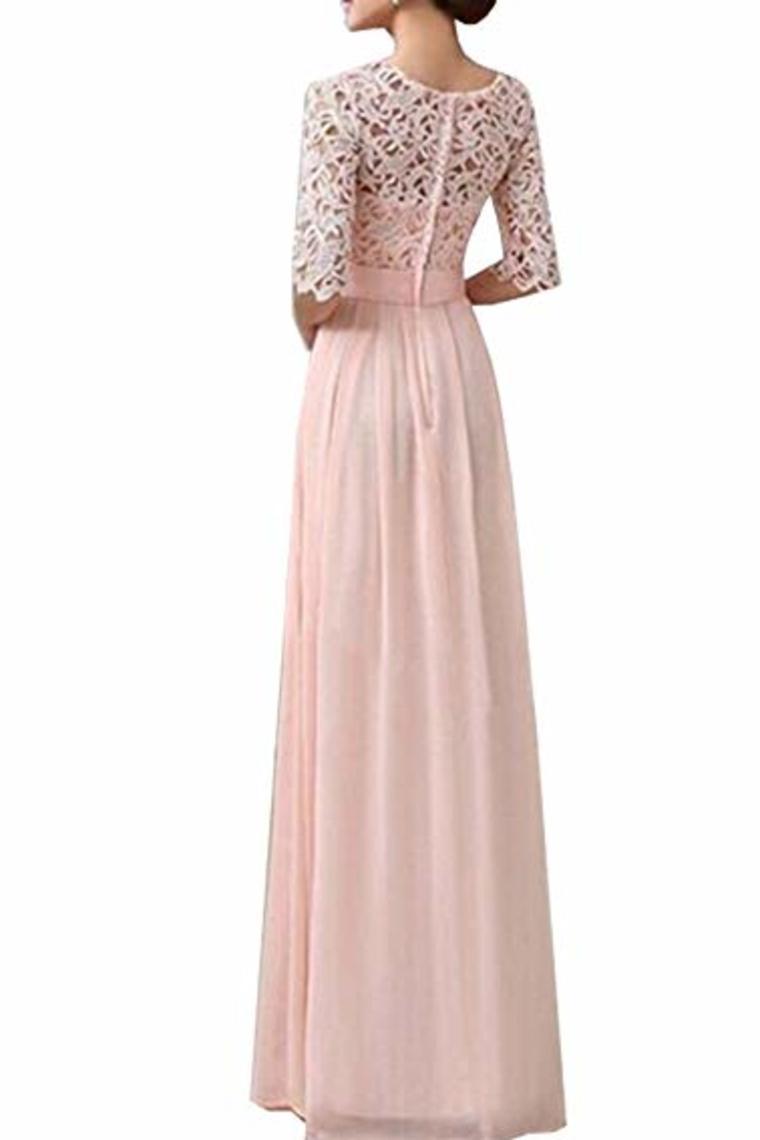 Lace Splice Chiffon Half Sleeve Floor Length Formal Bridesmaid Dresses