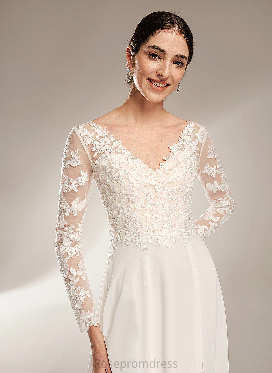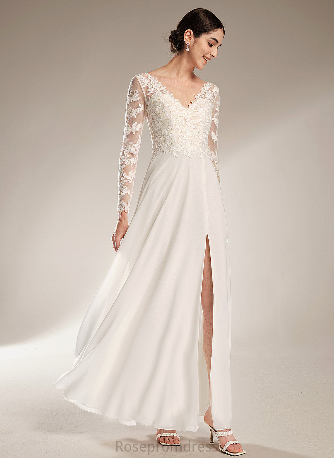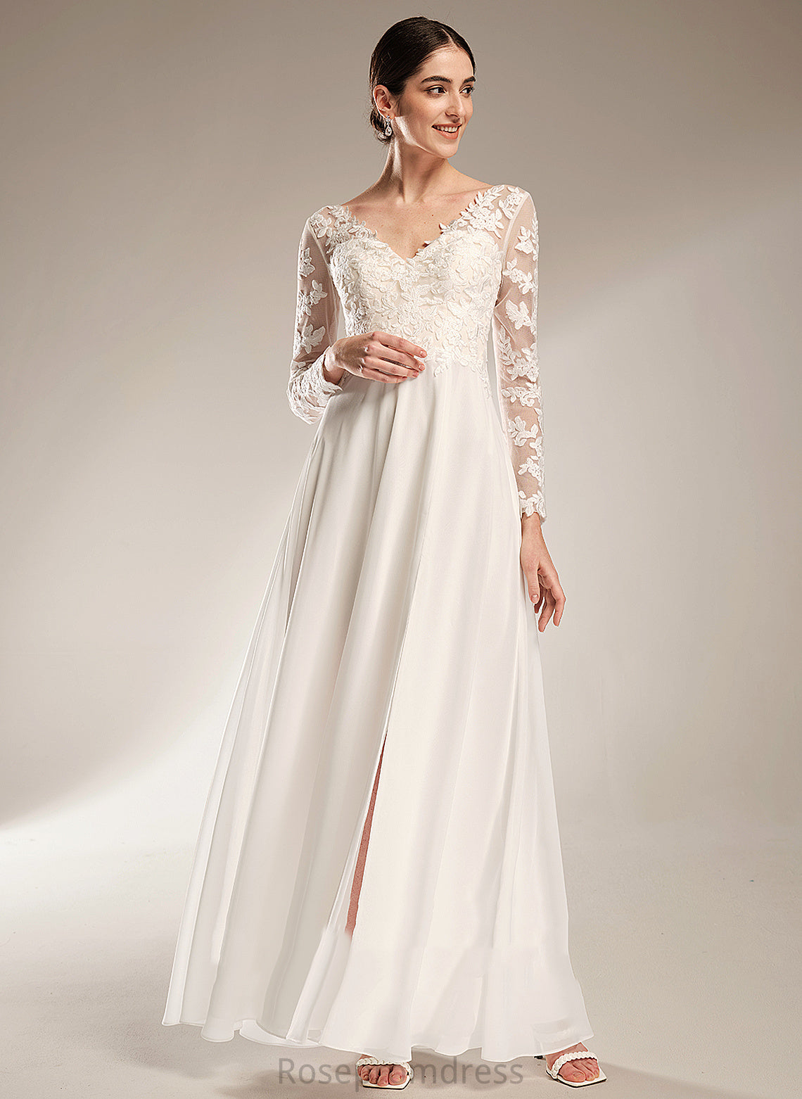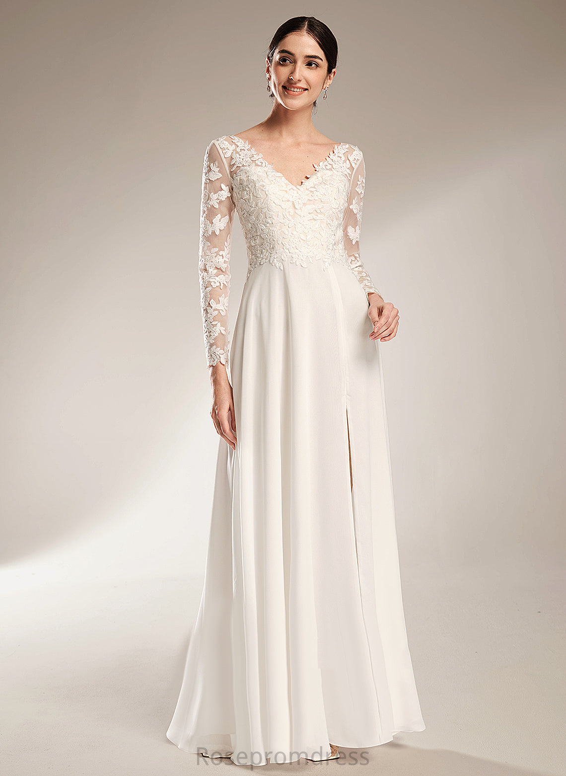 Lace Split With V-neck Bailee A-Line Chiffon Floor-Length Wedding Wedding Dresses Front Dress