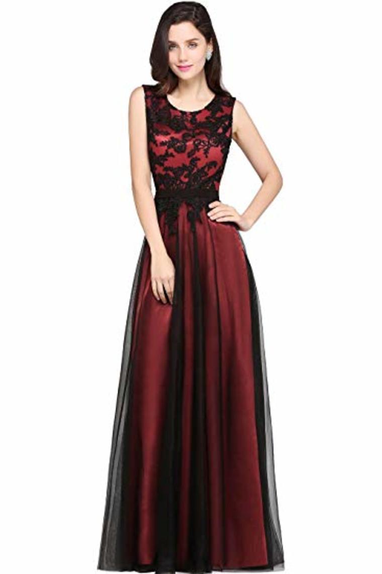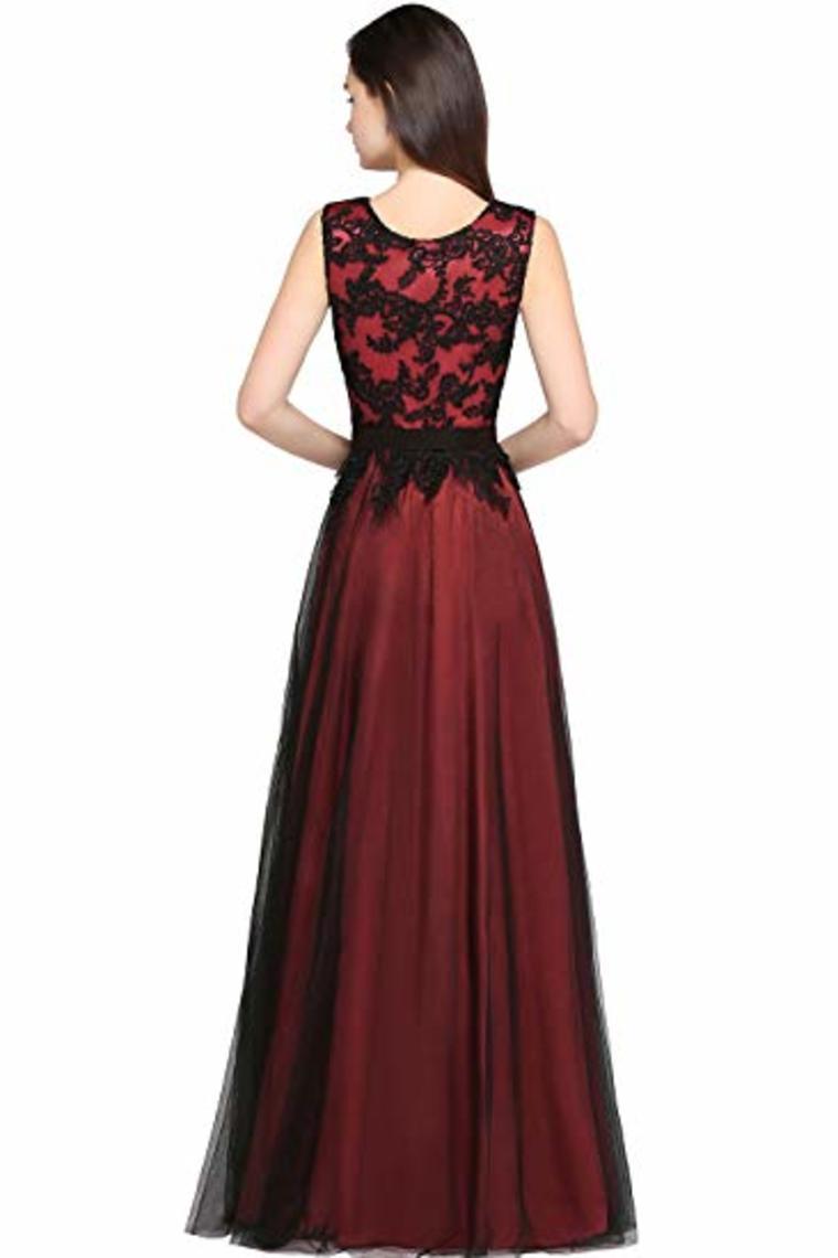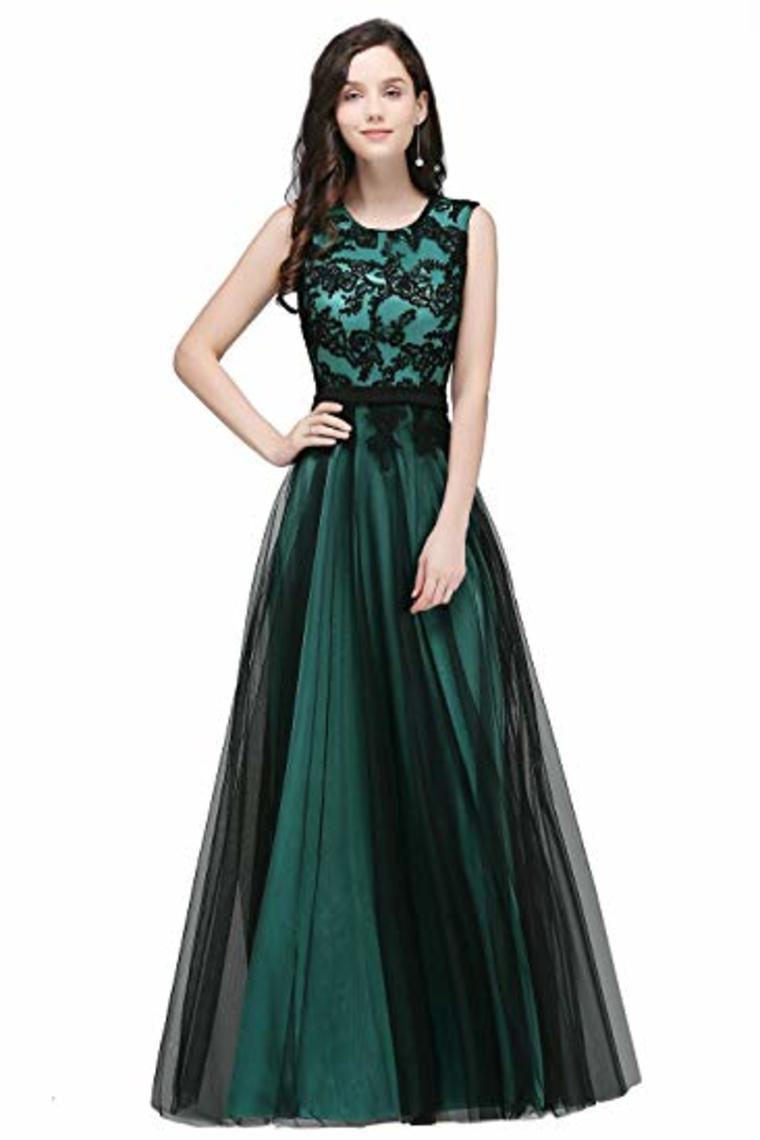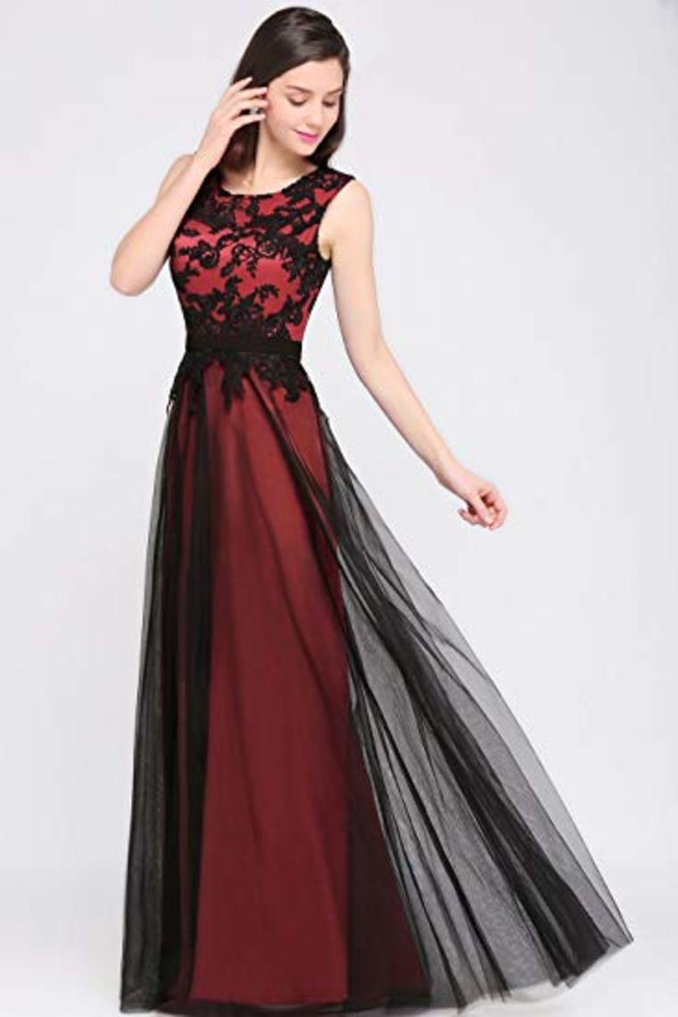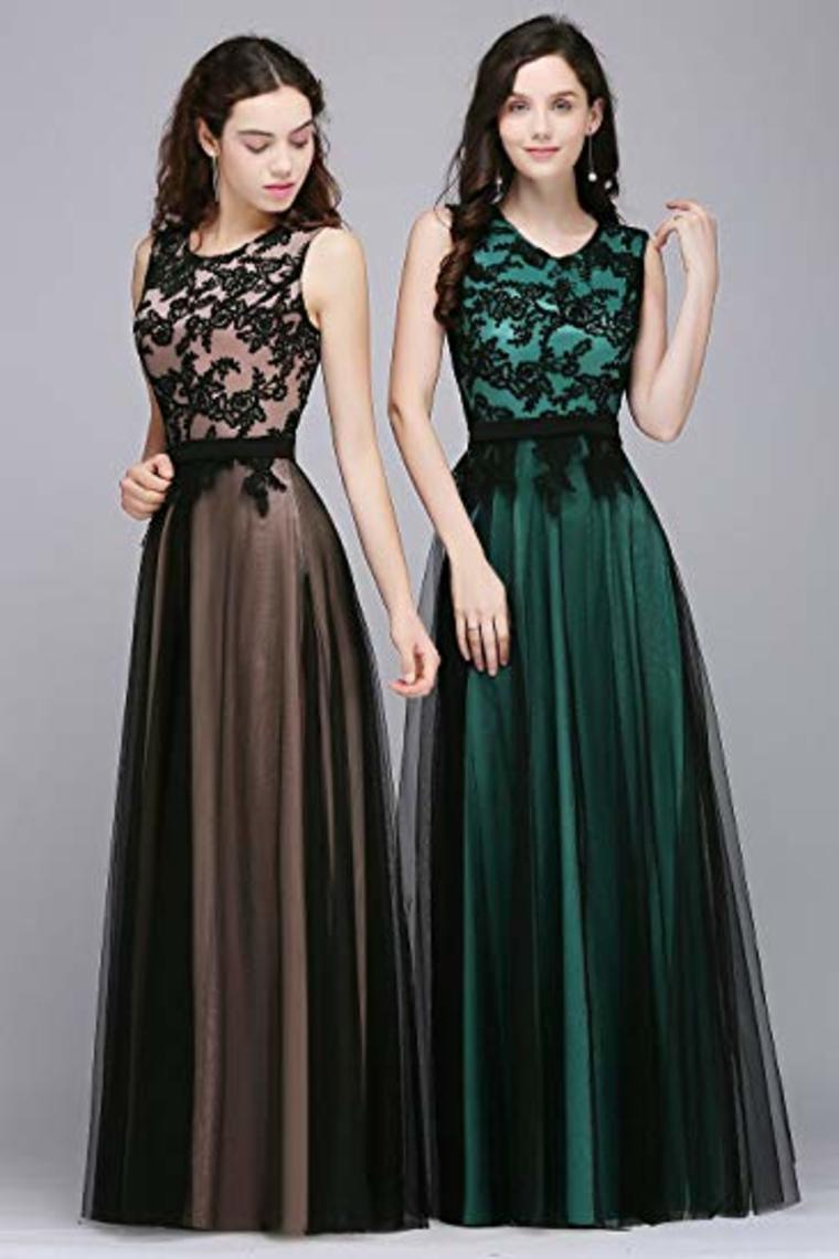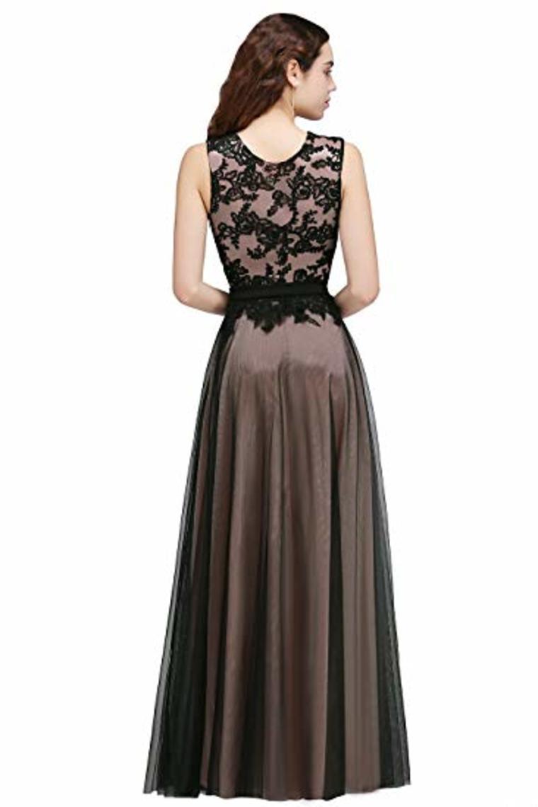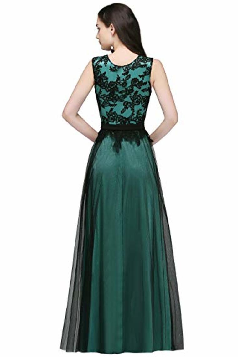 Lace Tulle Round Neck A Line Sleeveless Wedding Bridesmaid Long Evening Festive Party Dress