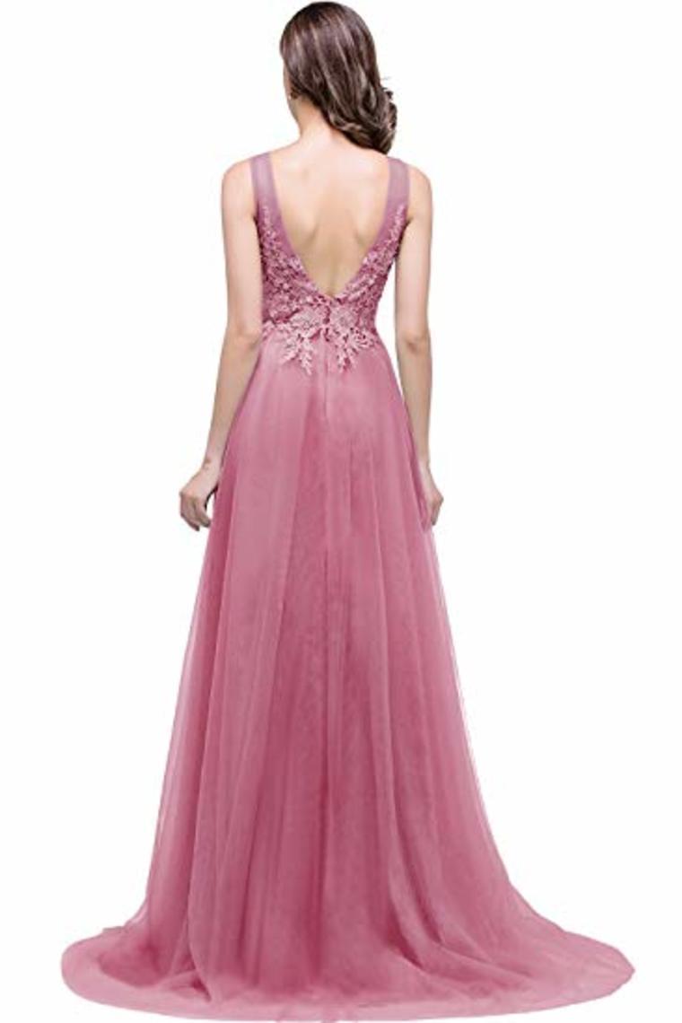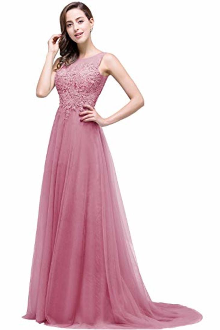 Lace Tulle Sleeveless Evening Dress Ball Gown Wedding Bridesmaid Backless Long Dress
