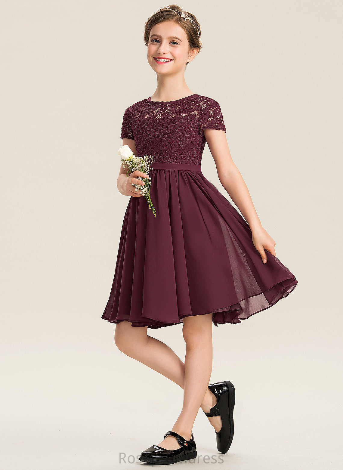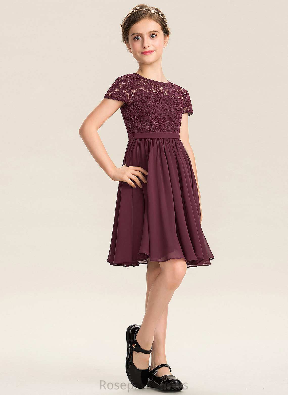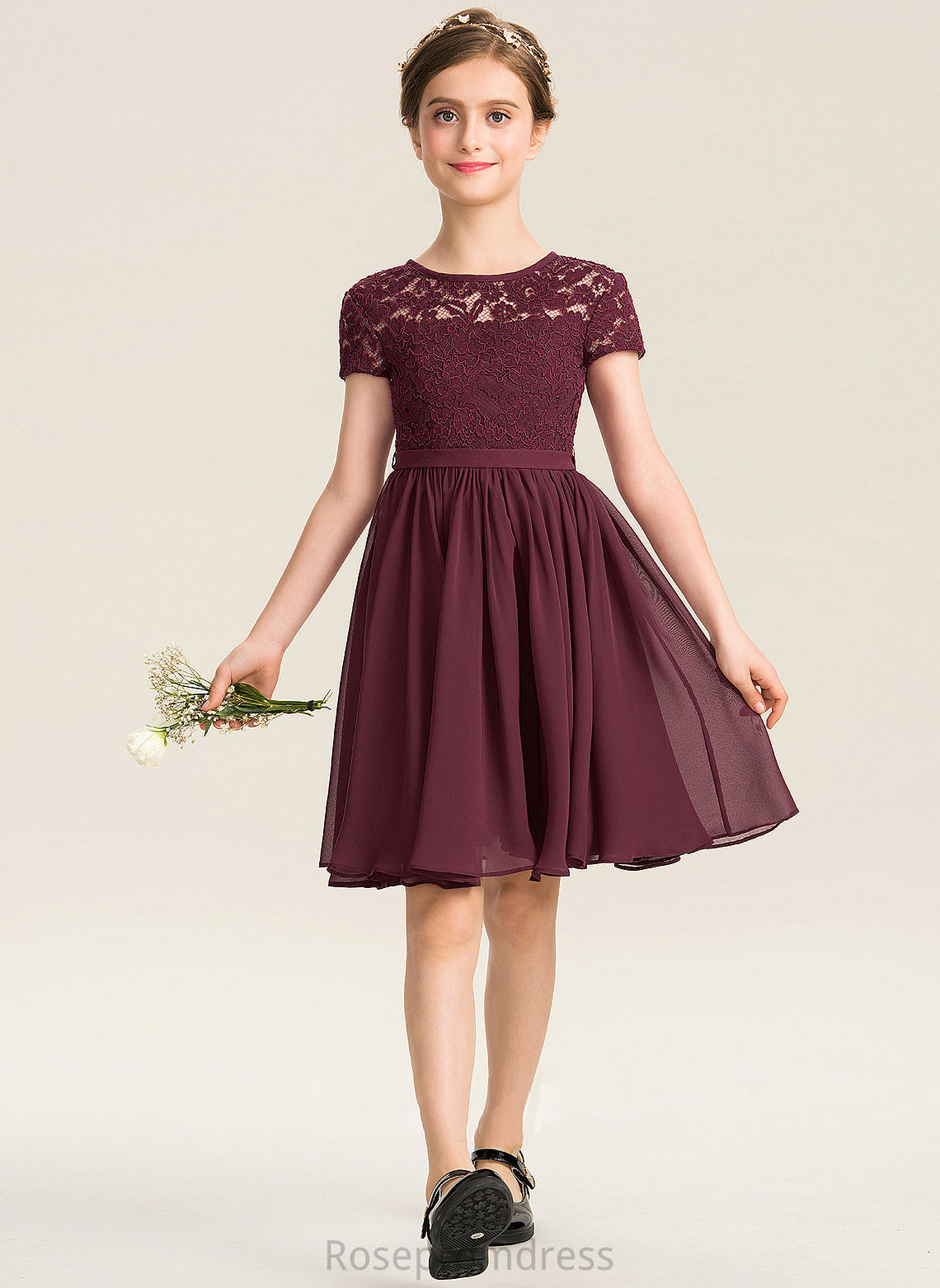 Lace With A-Line Payton Chiffon Bow(s) Neck Scoop Junior Bridesmaid Dresses Knee-Length